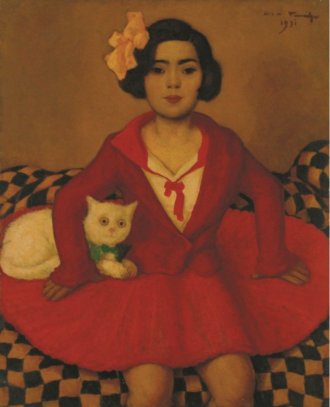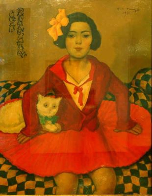 Opera de față reprezintă, cel mai probabil, un studiu premergător realizat pentru impunătoarea creație ”Muza pamfletarului”, pe care o regăsim într-o dublă variantă în colecțiile a două muzee reputate: Muzeul de Artă din Târgu Mureș și Muzeul Țării Crișurilor din Oradea. Printre diferențele remarcabile dintre cele două opere identificăm scrisul japonizat, inserat în colțul din stânga sus - semnificând titlul operei - în cazul variantei prezente în colecția muzeului orădean. Cele două muze își află geneza actului creator în același an, 1931, urmând ca de-a lungul timpului să vadă lumina simezelor din expoziții împreună ori separat. Protagonista operei este chiar Viorela Șeicaru (1923-1981), fiica lui Pamfil Șeicaru, unul dintre marii gazetari ai perioadei interbelice. Licențiat în drept, acesta avea să se afle la conducerea trustului ”Curentul”, din care făceau parte și ziarele ”Evenimentul” sau ”Rapid” și suplimentele săptămânale ”Curentul familiei”, ”Curentul magazin” și ”Curentul pentru copii și tineret”, acesta din urmă condus până în 1941, atunci când va pleca la studii, de Ana-Viorela, fiica gazetarului. Însă colaborările și directoratele lui Pamfil Șeicaru s-au extins și către alte publicații, una dintre acestea fiind ”Revista de polemică politico-literară”, revistă în cadrul căreia Nicolae Tonitza era prezent cu desene și articole. Un adevărat iubitor și împătimit al artei românești, Pamfil Șeicaru deținea în apartamentul de la Madrid, pe care îl preluase Govora, numeroase lucrări realizate de Nicolae Tonitza, Francisc Șirato, Ștefan Dimitrescu sau Nicolae Dărăscu. În galeria de portrete realizate de Tonitza regăsim, de asemenea, și o lucrare intitulată ”Pamfletarul”, semn că relația celor două personalități a atins culmile extatice ale transpunerii picturale. Căsătorită Cișmigiu și recăsătorită Vergne, Ana-Viorela avea să urmeze așadar parcursul profesional al tatălui său, însă se stabilea, odată cu plecarea la studii, dincolo de hotare. Perioada anilor ’30 este, poate, una dintre cele mai bogate perioade din opera lui Tonitza. Se evidențiază acum o etapă ce are influențe clare din arta orientală, reliefate îndeosebi prin decorativism. Exponențială pentru acest ciclu tematic este și ”Japoneză”, aflată astăzi în colecția Muzeului Județean de Artă Prahova ”Ion Ionescu-Quintus” din Ploiești. Se disting în special arabescurile și ondulările liniilor, abordarea mai plată a cromaticii sau ochii migdalați ai personajelor. Tot în anul 1931, pictorul obține lucrarea bisericii Sfântul Gheorghe din Constanța, proiect pe care îl va realiza alături de C. Bacalu și Jean C. Buluk. Participă tot acum și la expozițiile: ”Salonul de desen și gravură”, ”Expoziția de artă română modernă” sau ”Expoziția Internațională a copilului”. În portretul de față, redat în prim-plan - spre deosebire de perspectiva mult mai largă a celor două variante aflate în repertoriile muzeelor din țară, protagonista apare redată în aceeași manieră, cu figura sobră, cu părul tuns scurt din care se ivește fundița galbenă, purtând aceleași veșminte roșii și cămașa albă. Lucrarea este, așadar, un portret pregătitor al operei, în care copilul pozează după bunul plac al adulților. Artistul declara, la un moment dat: ”Am cunoscut copii în straie scumpe, copii hrăniți cu îmbelșugare și rafinament, copii încurajați de permanente atenții și dezmierdări, copii perfect sănătoși, dar în sufletul cărora, prematur cătrănit, dospeau dureri înăbușite și creșteau străpungătoare agonii.” Spre deosebire de alte portrete de copii, remarcăm, inevitabil, un statut social mai părtinitor al personajului, însoțit, însă, de o atitudine mai cumpătată. ”Copilării? Firește: copilării! Dar în zbenguiala copilului este întotdeauna un ce serios pe care foarte rar îl pot atinge maturii – în actele lor gravisime. Mari ales în artă...”, mărturisea Tonitza.