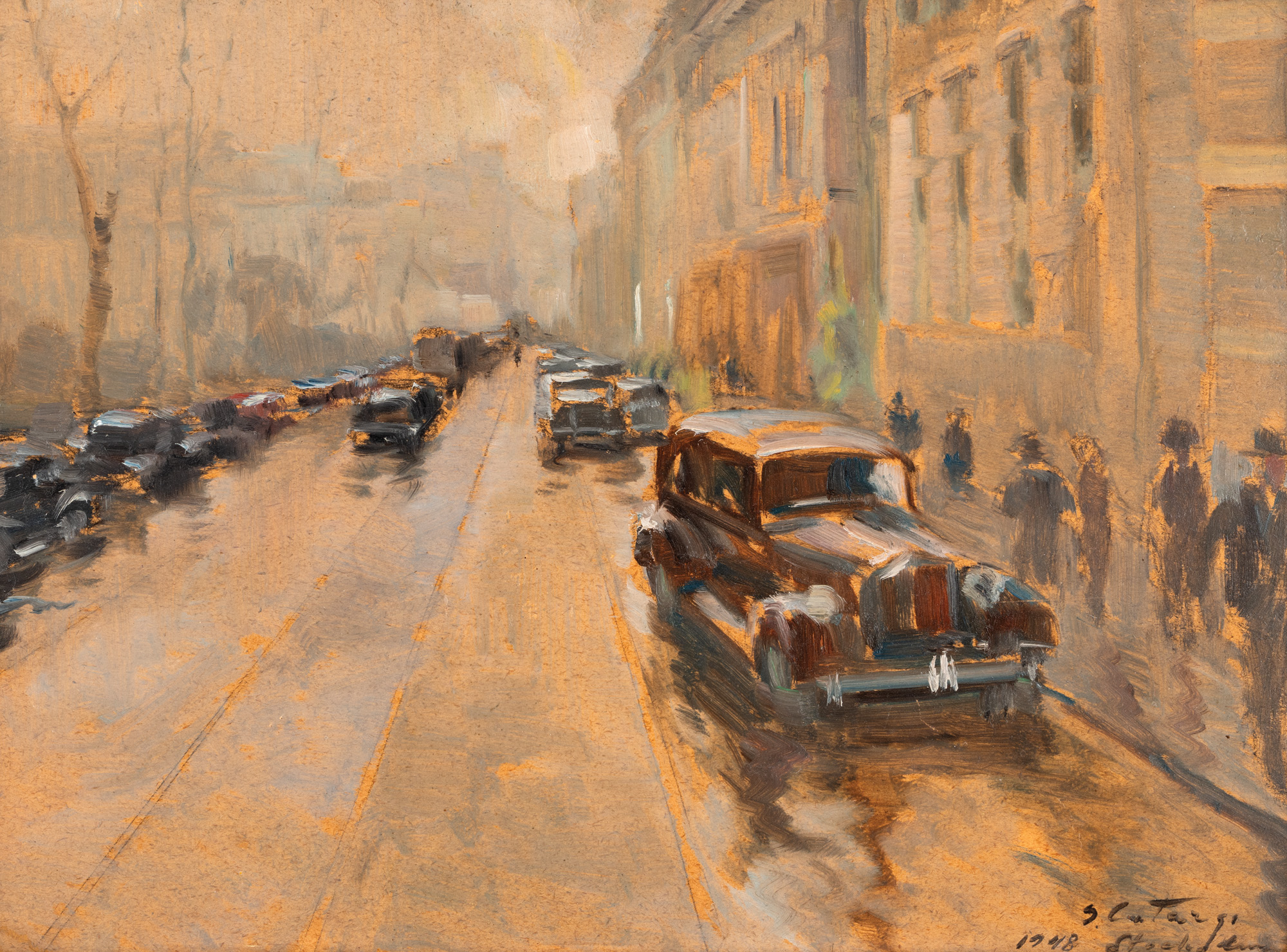 semnat, datat și localizat dreapta jos, cu negru, ”G. Catargi, Stockholm, 1948”