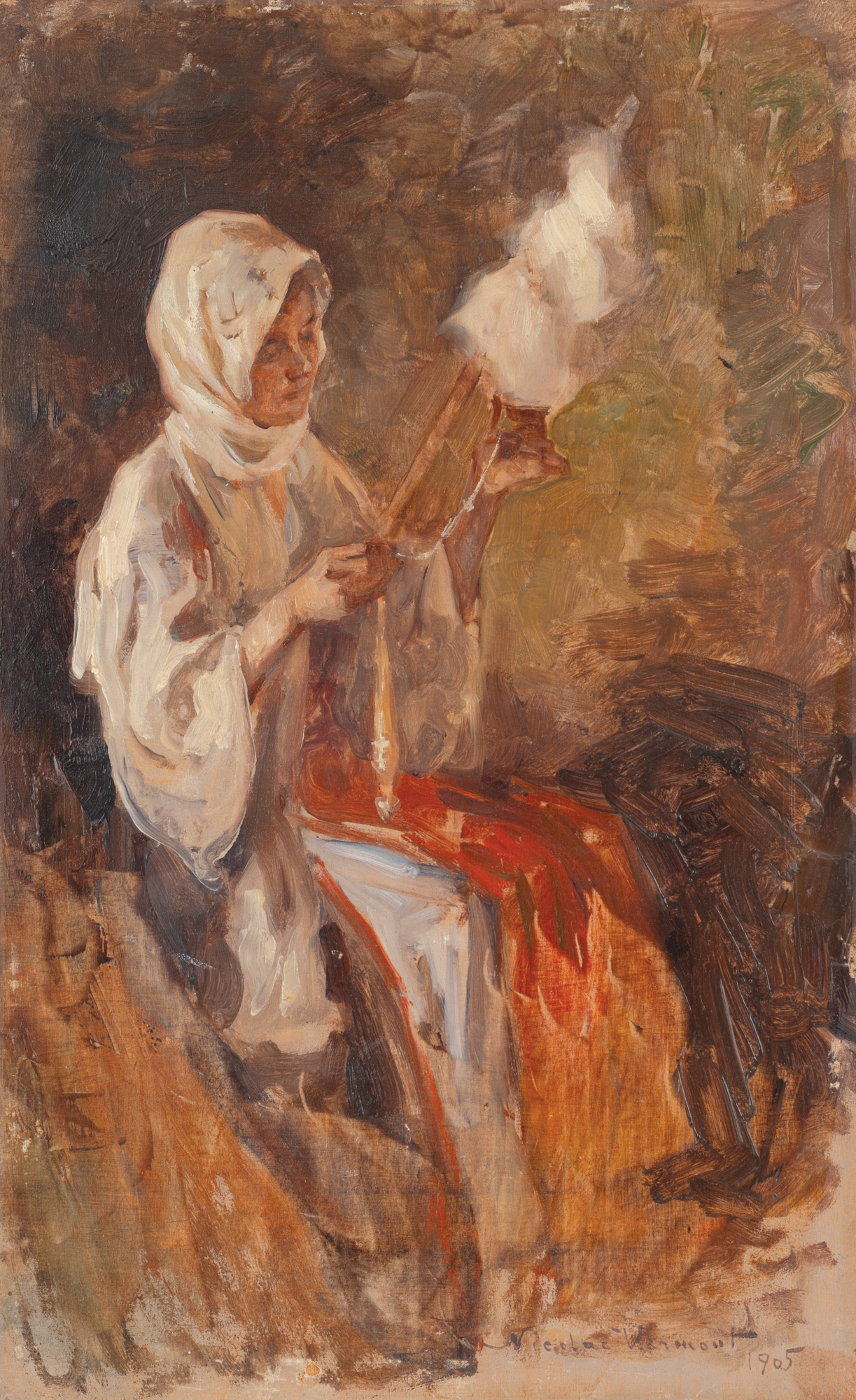 semnat și datat dreapta jos, cu brun, ”Neculai Vermont, 1905”