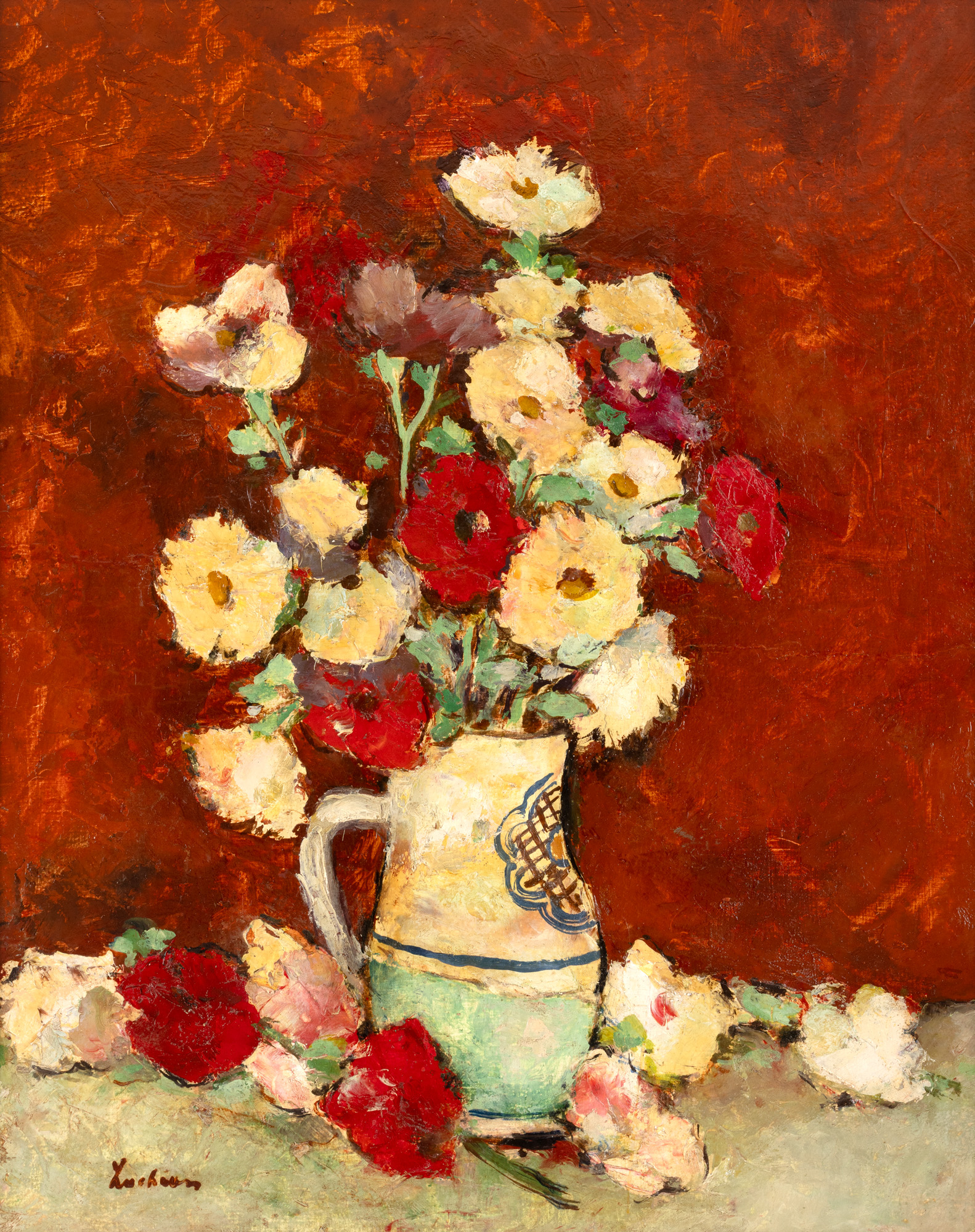 În anii studiilor la Școala de Arte din Bucureşti, între 1885 şi 1889, Luchian a învăţat mai mult din arta lui Nicolae Grigorescu, care se afla în apogeul activităţii, decât din modelele oferite de profesorii săi: Aman, Tăttărescu sau Stăncescu. Firea lui Luchian se asemăna temperamentului lui Grigorescu, învăţăturile adevăratului său maestru croindu-şi calea firesc în conştiinţa sa. De la el a învăţat să-şi bazeze observaţia direct pe aspectele realităţii, să cunoască natura în dimensiunile ei fundamentale şi să caute să se confunde cu ea, pentru a o putea evoca cu sinceritate.Ștefan Luchian aducea tablourilor cu flori, pe lângă maniera-i inimitabilă și paleta de culori, și introducerea și contactul cu arta populară. Având în vedere întâietatea creației lui Nicolae Grigorescu ce acaparase într-un fel subiectul rural, tradițional, dar dintr-o latură idilică, stilul lui Luchian se apropia mult mai profund de spiritul artei populare – ceramica era folosită drept element principal. Această caracteristică avea să devină cu adevărat importantă în deceniul imediat următor Marii Uniri, când întreaga mișcare culturală și artistică propovăduia acel “specific național”. La Nicolae Tonitza (care de altfel a fost unul dintre cei mai mari admiratori ai lui Luchian), Theodorescu-Sion, Ștefan Dimitrescu sau Dumitru Ghiață descoperim, într-un limbaj modern, transfigurări ale acelui stil “tradițional” iscusit de Ștefan Luchian în primul deceniu al secolului XX. Vasul de lut devenea astfel semnătura de autor a lui Luchian, reușind în doar câțiva ani să "confiște" natura statică cu flori, lăsându-și amprenta pe toată creația artistică a secolului XX. La Luchian florile pregăteau și educau în această abordare gustul artistic, în vederea înțelegerii acelor lucrări care redau prin incandescența culorilor, prin strălucirea acordurilor și prin frumusețea raporturilor, un climat emoțional. Întins pe harta tuturor anotimpurilor, de la florile primaverale – toporași, viorele, liliac, maci, albăstrele, lalele, la cele vernale - trandafiri, nalbe, garofițe, garoafe, crăițe, gura-leului, părăluțe, dalii, până la cele tomnatice - crizanteme, dumitrițe sau tufănele, repertoriul florilor însuflețesc prin culoare universul artistului. Evocate adesea, fie în vaze ori în ulcele de pământ, florile lui Luchian aduc adesea în vizual și semne ale tradiționalului, valorat de către artist prin decoruri și luciri de smalț. Astfel, tradiția picturii românești va fi acum îmbogățită prin noi valori și perspective. Simplitatea și sinteza tipică ultimilor ani de creație aduceau cu ele și ultimele capodopere ale lui Luchian, devenind, paradoxal și cele mai apreciate și cumpărate. Picturile cu flori sunt cele în care desfăşoară cel mai desăvârşit o adevărată simfonie pe gama orchestraţiei cromatice. După 1910, opera lui Luchian tinde către simplitate şi sinteză, carcateristicile picturilor sale fiind conturul atent subliniat în lac negru şi culoarea aplicată în strat subţire şi egal în interiorul acestuia, peste care revine cu accente nervoase menite a da contur. Specifică ultimei perioade de creație, lucrarea ”Vas cu tufănele”, este realizată în tonuri sumbre și brunuri nuanțate. Fundalul întunecat, de roșu cărămiziu cu accente bordeaux, scoate în evidență piesa centrală, tipică lui Luchian, ulciorul tradițional. Vasul este tip kuty, zona Bucovinei sau nordul Moldovei și cuprinde un buchet colorat de tufănele, la bază este înconjurat de aceleași flori, accentuate cromatic prin tușele de roșu. Deși cromatica este simplă, fără tonuri violente sau pastelate, întreaga compoziție îndeplinește toate caracteristicile stilistice operei de maturitate a lui Ștefan Luchian.