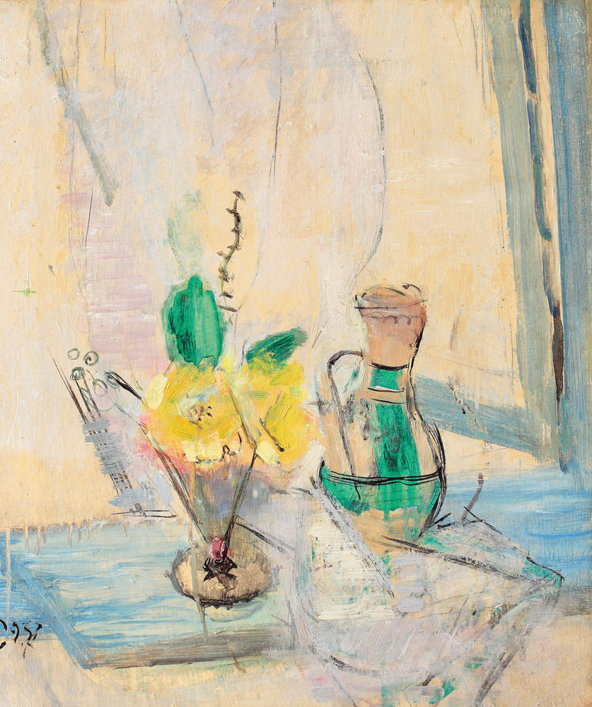 Din 1932, când i se reduce bursa la Paris, Cicuurencu se stabileşte în ţară, marea prezentare în faţa publicului bucureştean având-o în 1934, cu ocazia expoziţiei personale organizate la sala Mozart. Încă de la primele lucrări, Ciucurencu se consideră un continuator spiritual al lui Ressu, Lhote şi Pallady, însă îşi construieşte un stil stil original, cu propria expresie plastică. În plan pictural, pentru această perioadă, tematicile abordate de artist gravitează în jurul unor subiecte recognoscibile, precum naturile statice sau interioarele cu personaje. În lucrarea “Narcise şi canceu la fereastră”, regăsim vibraţiile compoziţiilor lui Dufy, atracţia lui Ciucurencu faţă de spontan şi arabescuri, dar și respectul pentru constructivismul lui Matisse. Culorile folosite în acest caz sunt cele la care recurge în mod constant în naturile sale moarte, într-o intensitate moderată, izvorâtă din trăirea sa lirică în faţa motivului. Albul puternic valorat este încadrat de galbenul florii, și punctat de verdele crud al ulcelei. Elementele tind către un acord decorativ, fără a se îndepărta însă de la concordanţa cu realitatea. Rafinamentul, subtilitatea cromatică, stăpânirea luminii, liniile trasate cu spontaneitate , dar şi cu siguranţă, inspiră un aer de poezie. Lucrările primei perioade a lui Ciucurencu se caracterizează prin interesul pentru obţinerea unui efect pictural rafinat, prin utilizarea tonurilor în straturi subţiri şi transparente şi tendinţa de a investi culoarea cu capacitatea de a obţie forma. (I.C.)