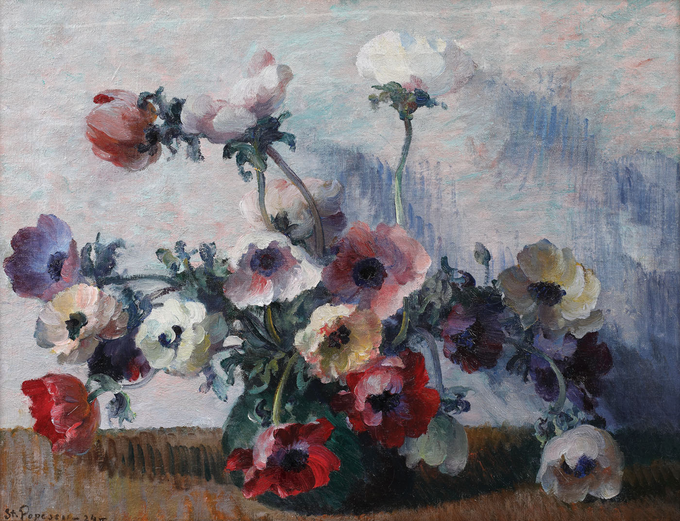semnat şi datat stânga jos, cu brun, "Şt. Popescu, (19)24"