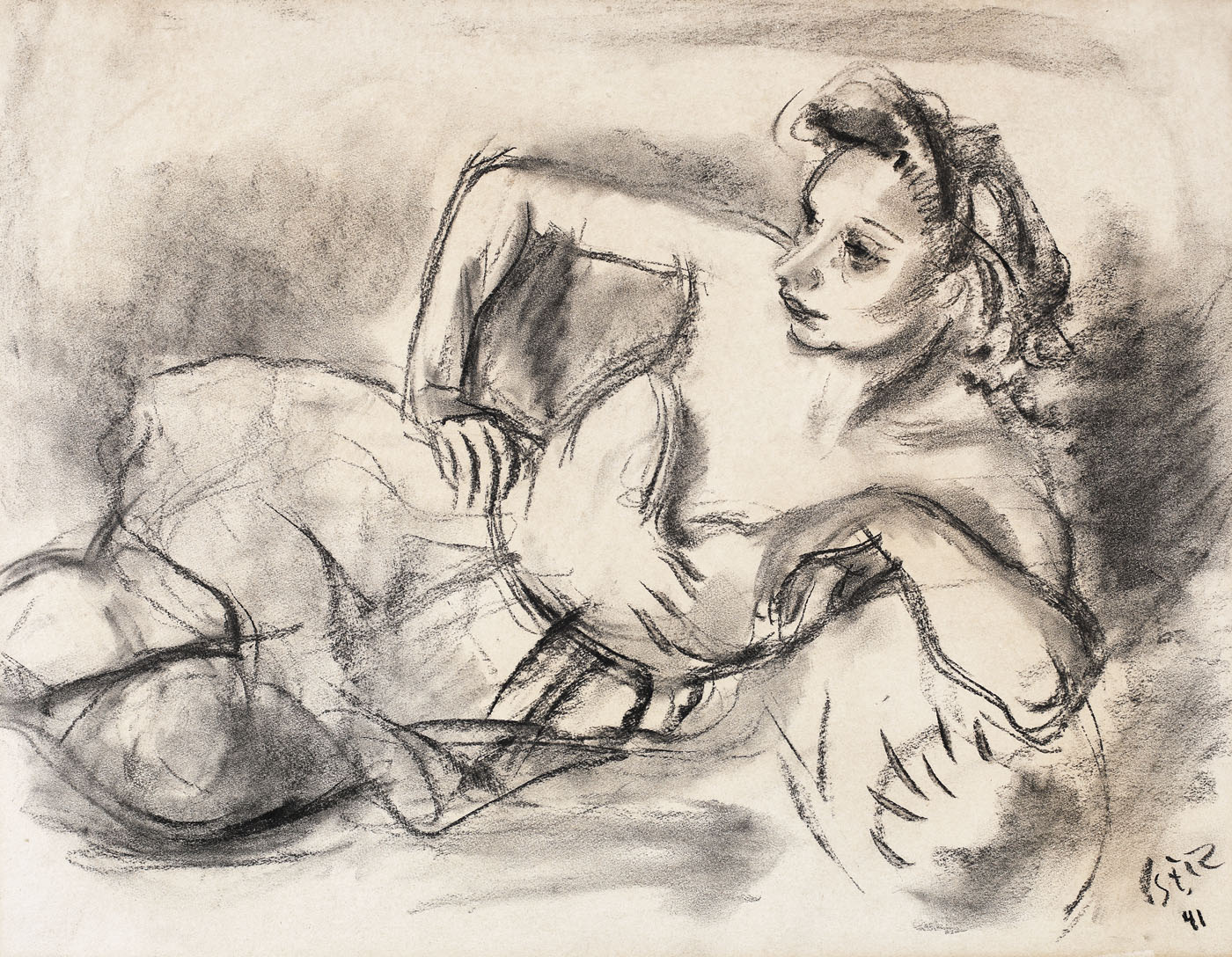 semnat şi datat dreapta jos, în cărbune, "Iser, (19)41