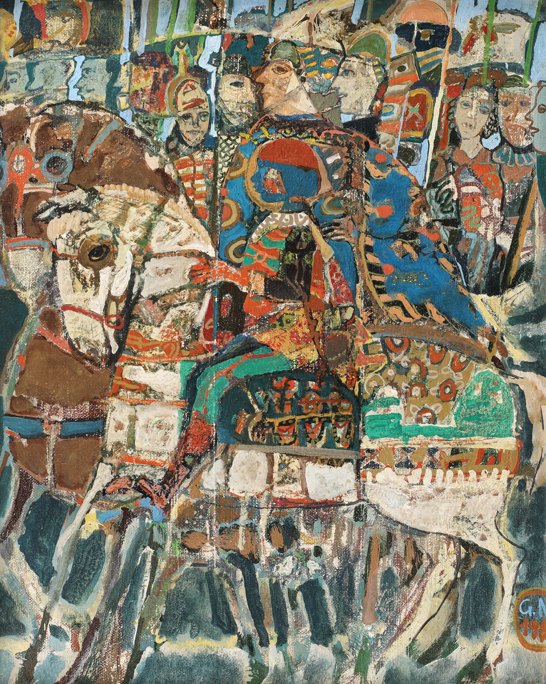 semnat și datat dreapta jos, cu albastru și brun, "G.N., 1982"