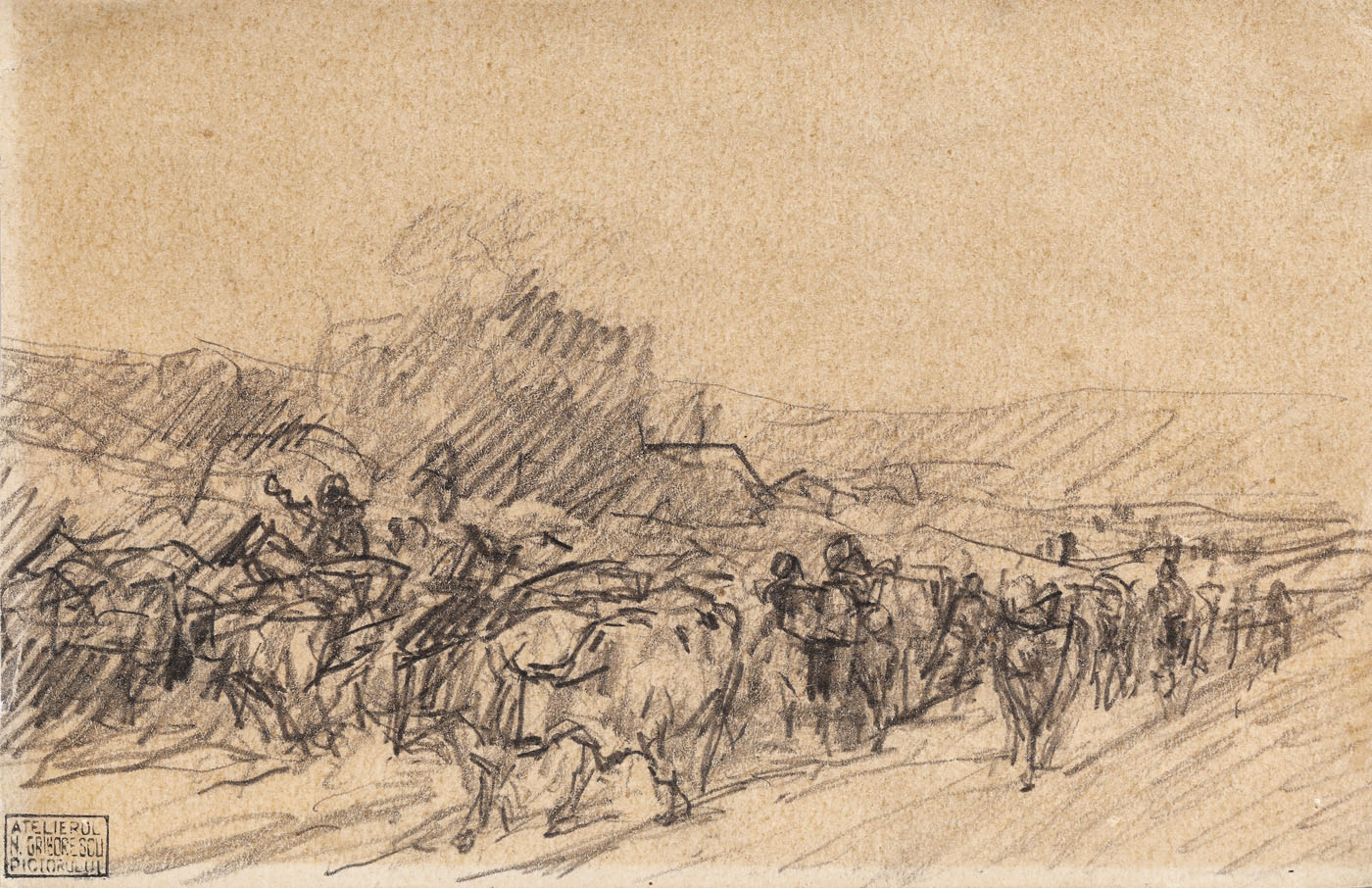 stânga jos, ştampilă de atelier, "Atelierul Pictorului N. Grigorescu"