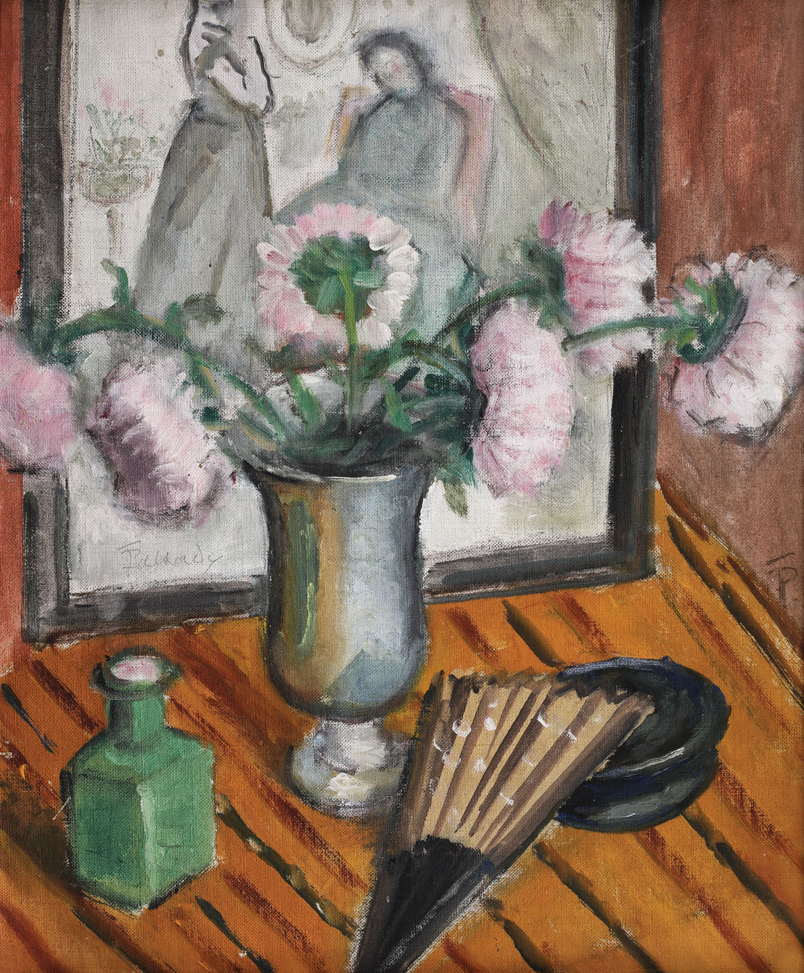 semnat lateral dreapta, cu brun, "TP"; semnat lateral stânga, în pastă, "T.Pallady"