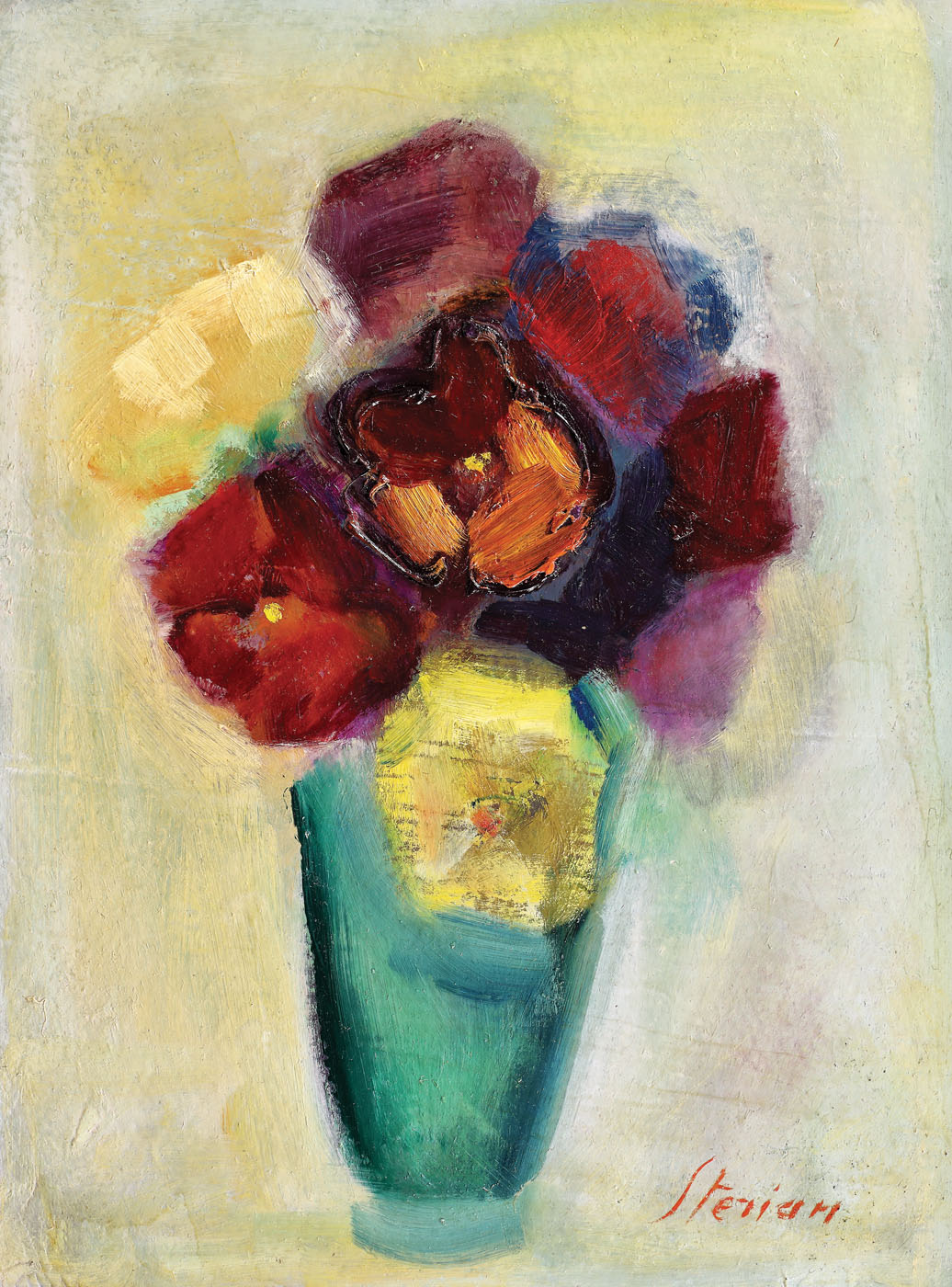 pe verso, semnat, datat și intitulat, în pix, "Margareta Sterian, Panseluțe, 1974"