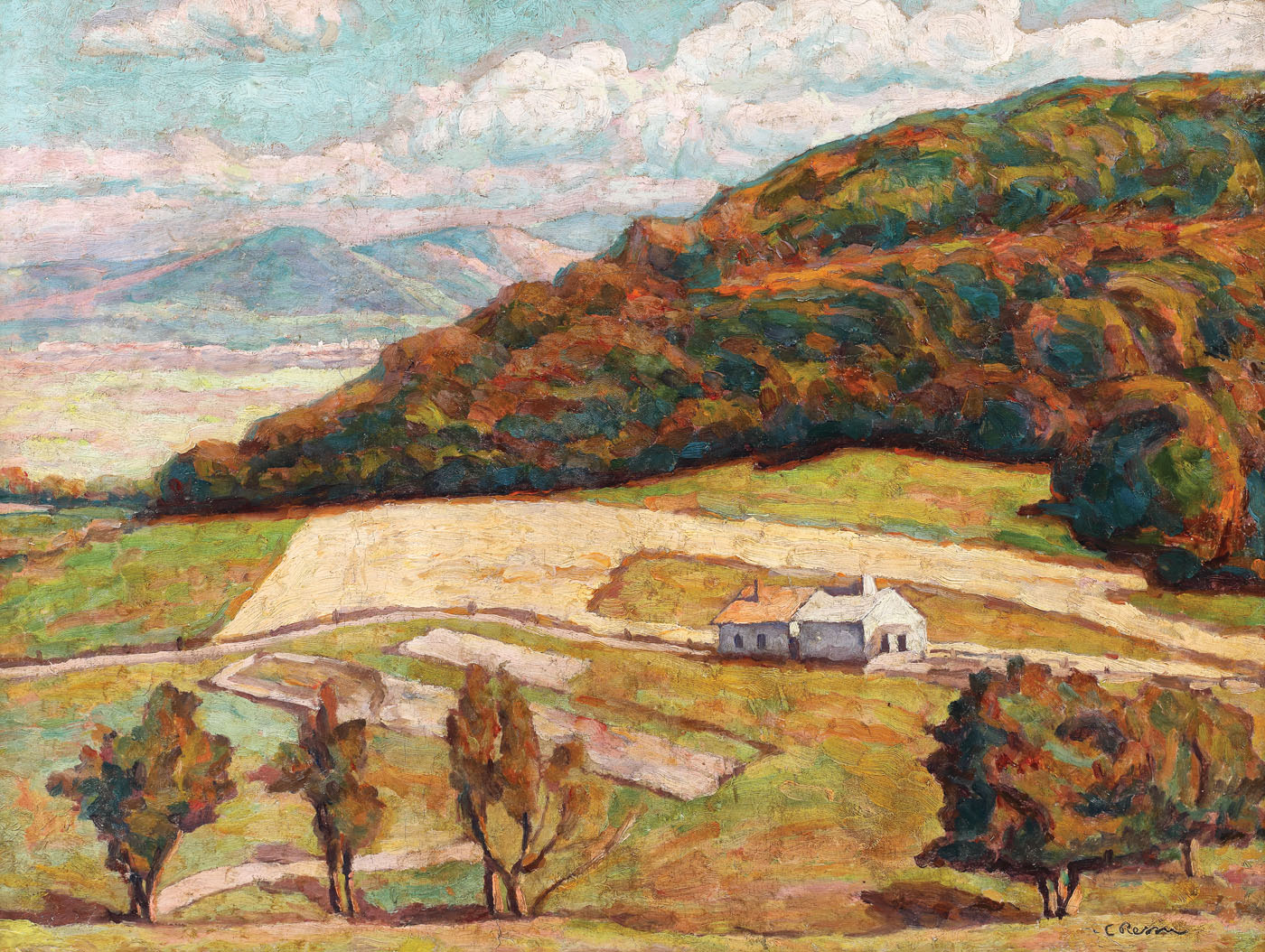 semnat drepta jos, în pastă, "C. Ressu"