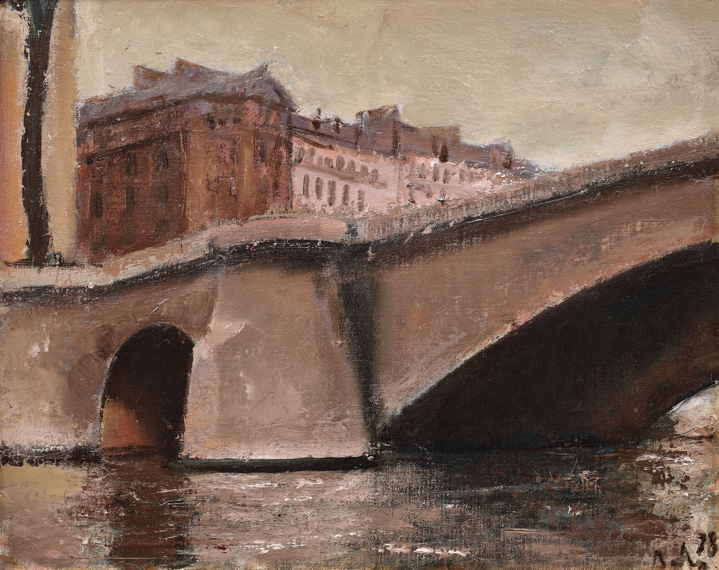 pe verso, semnat, intitulat și localizat, cu albastru, "Corneliu Baba, Pont Neuf, Paris, iulie (19)78"