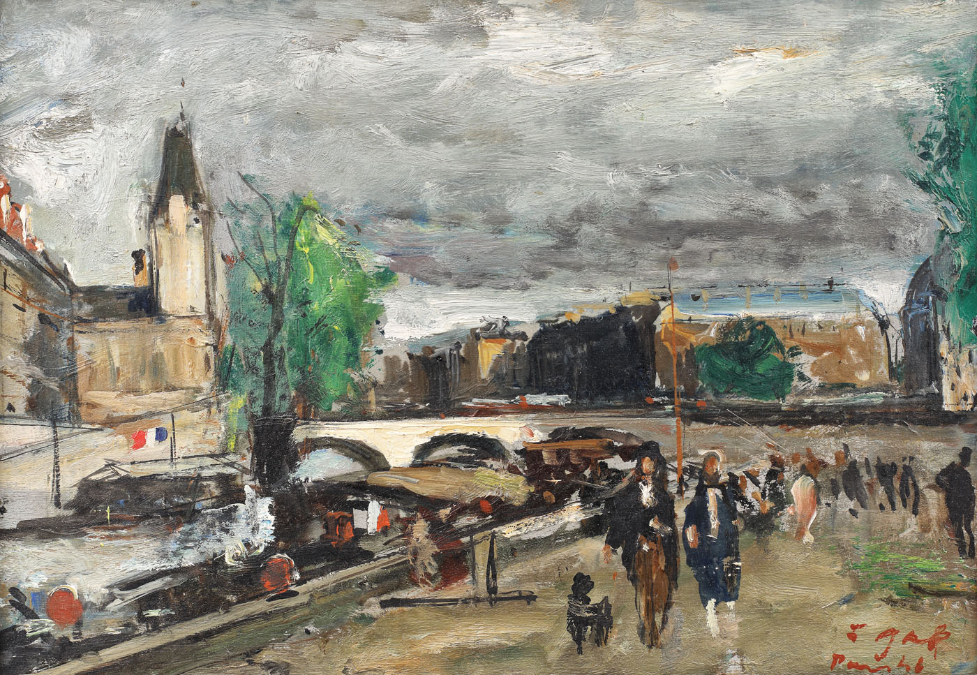 semnat, localizat și datat dreapta jos, cu roșu, "F. Gall, Paris, (19)46"