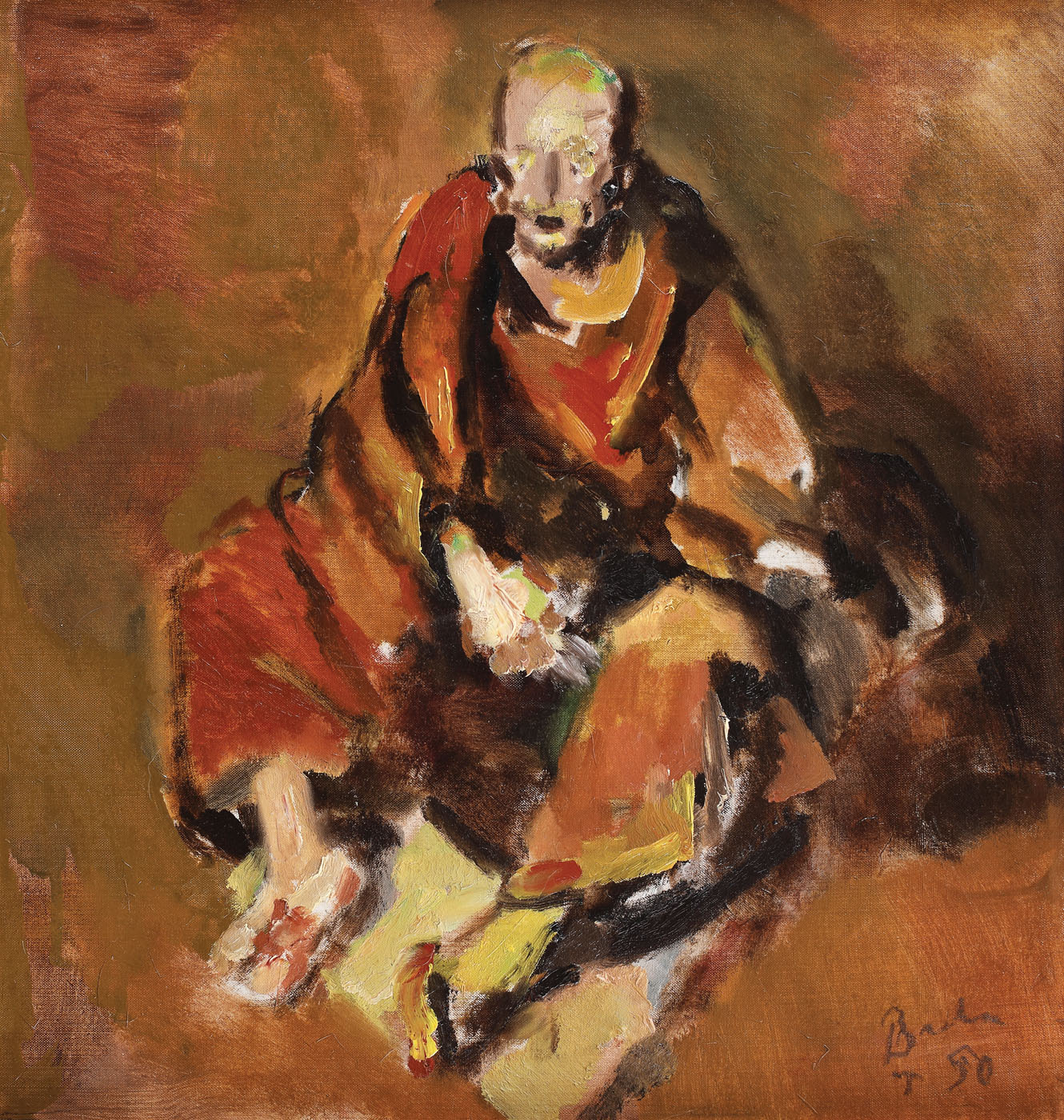 semnat, datat și notat dreapta jos, cu brun, "Baba, (19)90"