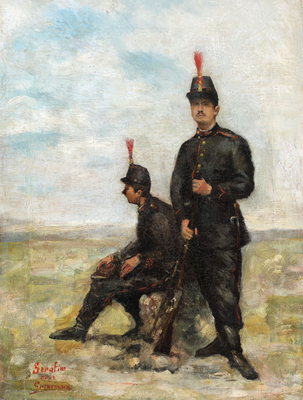semnat și notat stânga jos, cu roșu, "Serafim, după Grigorescu"
