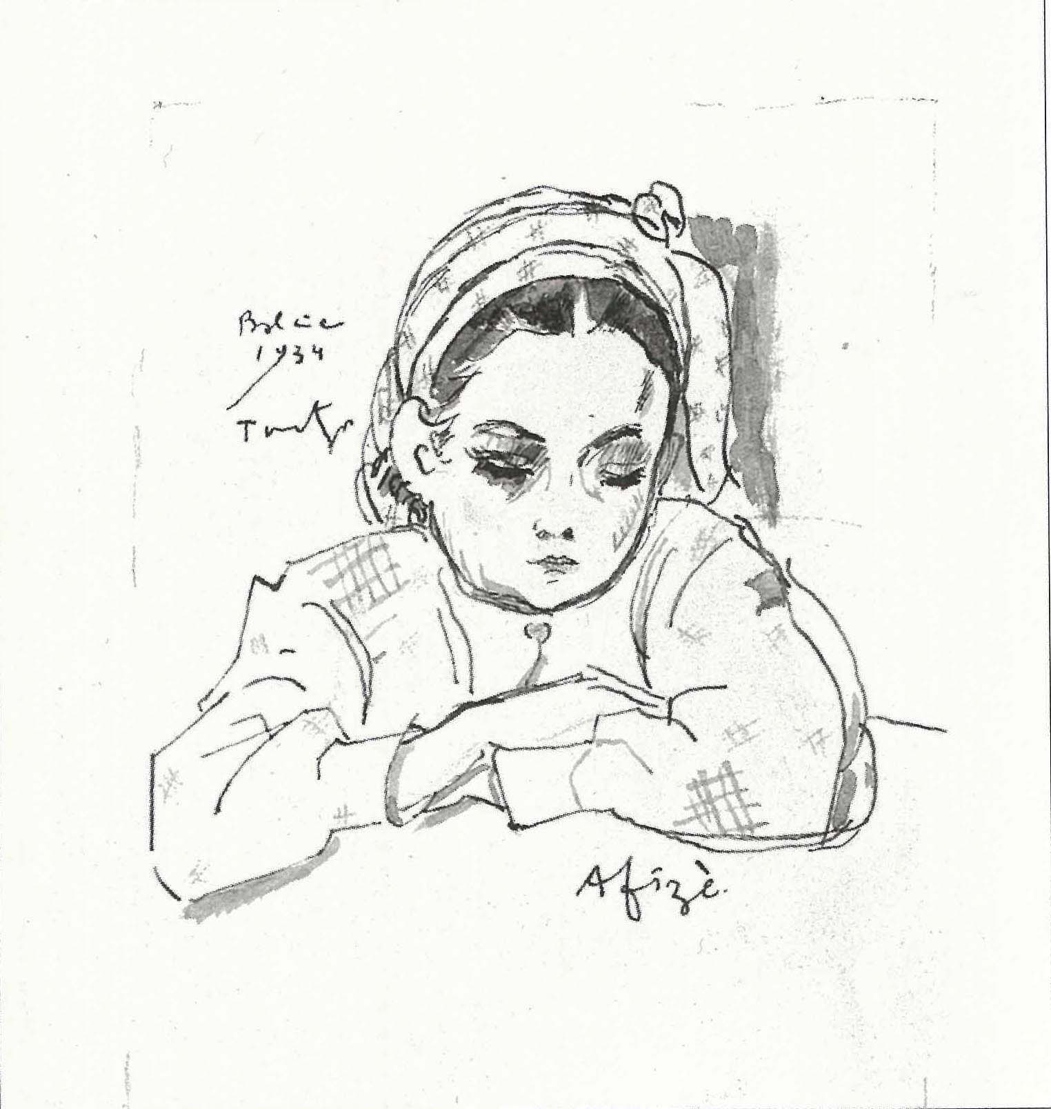 Balcicul anilor '30 avea să îi ofere artistului Tonitza subiecte nesfârșite de inspirație, frumusețea intimă și pitorească având să îi servească drept piloni la armonizarea desăvârșită a coloritului și a formei, făurind compoziții și peisaje în acorduri luminoase. Colorist fără seamăn și abil mânuitor al liniei, artistul își începe lucrul la revărsatul zorilor, când lumina se află în starea ei deplină și când totul i se înfățișează limpede. Graiul viu al liniei, al formelor și al paletei creează o pictură proaspătă, realizată prin valori plastice nelimitate de expresie. Alături de echilibrul construcției, artistul va considera examenul atent asupra naturii înconjurătoare ca cea mai sigură inițiere a actului de creație, iar culoarea, oglinda acurată a sentimentului de bază al oricărei acțiuni picturale. Coloritul paletei sale, realizat doar din câteva culori fundamentale, este reînviat de artistul care lucrează în sensul naturii. Ajuns în anul 1933 în micul oraș dobrogean, pe care cu un an înainte îl perindase și bunul său prieten Ștefan Dimitrescu (Fănuță), Tonitza va rememora cu sfiiciune peregrinările acestuia, ajungând prin locurile prin care a trecut și acesta, cutreierând curțile tăinuite, cărările umbrite și falezele fierbinți, descoperind un tărâm plin de revelații. Îl vor impresiona spiritul locului, acoperișurile, curțile, străzile, zorii dimineții, după-amiezile însorite precum și micile comunități de turci și de tătari, cu care se va împrieteni nemaidecât. Locuințele sale de la Balcic vor fi Casa Hagi Skendel, Cafeneaua Ismail, casa din strada I.C. Brătianu, nr 2, casa de la Căpitănia Portului și casa lui Ismail Ebuleis Feyzula. Printre modelele rememorate de artist se vor număra Ismail Ebuleis Feyzula și fiica sa, Lufitie, Ali Mehmet, Rachiș Ali, plăcintarul Asim Selim, frumoasele Demirna, Hamide, Esba, Gurli, Cadie sau Afize, precum și mica echipă de tătăroaice - Gurli Ali Pelivan, Rakiş Ali, Nezibe, Afize. Într-o scrisoare adresată colecționarului Lehrman, expediată de la cafeneaua Ismail, unde obișnuia să își scrie corespondența, artistul își confesa bucuria de a-și fi format în vara anului 1934 o echipă de 5-6 turcalețe, care veneau să îi pozeze regulat. Le vom întâlni anii următori prezente în cadrul expoziților „Grupului celor patru” (1935), precum și în cadrul Salonului de desen și grafică (1936). (G.M.)