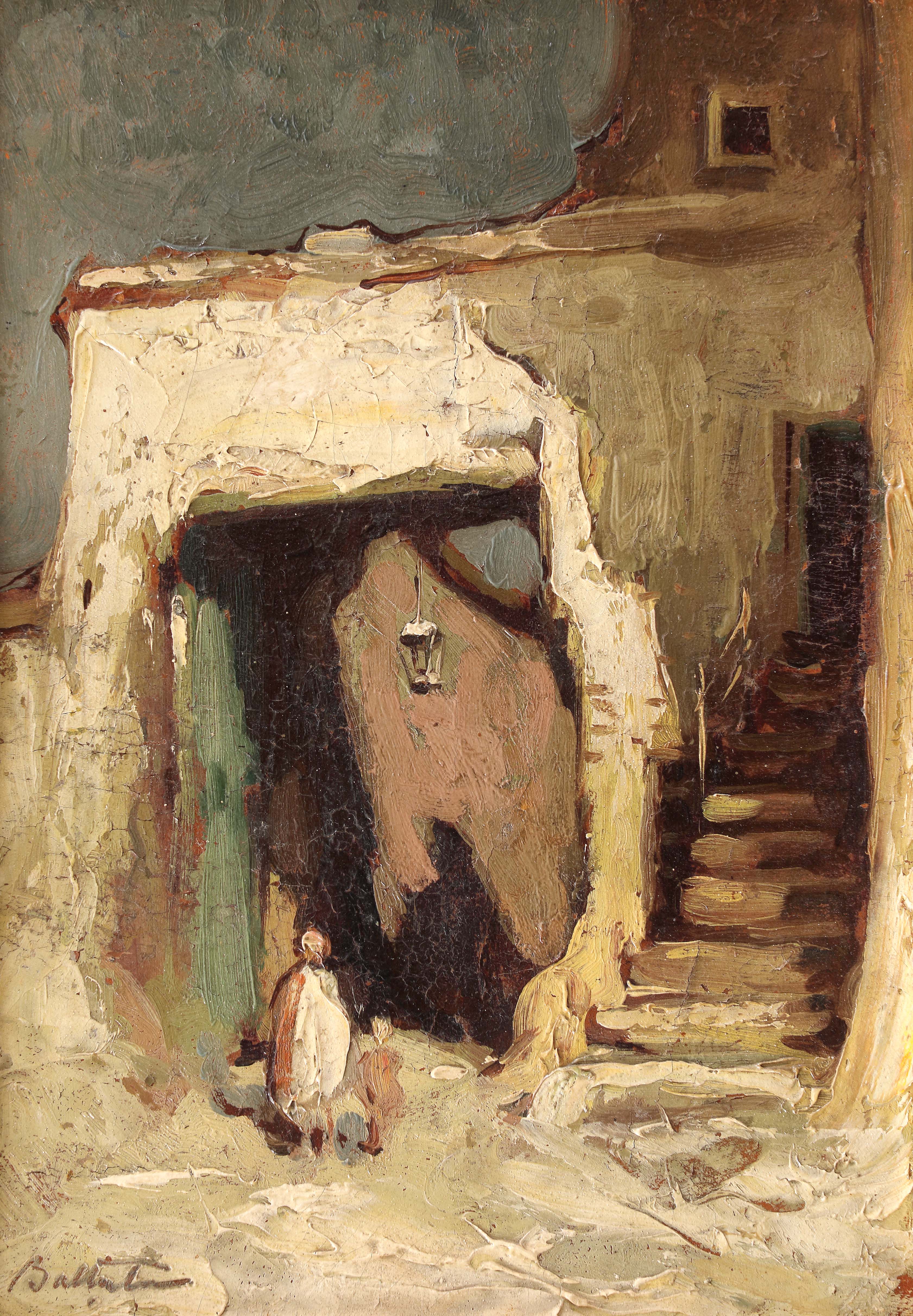 semnat stânga jos, în creion, "Bălțatu"