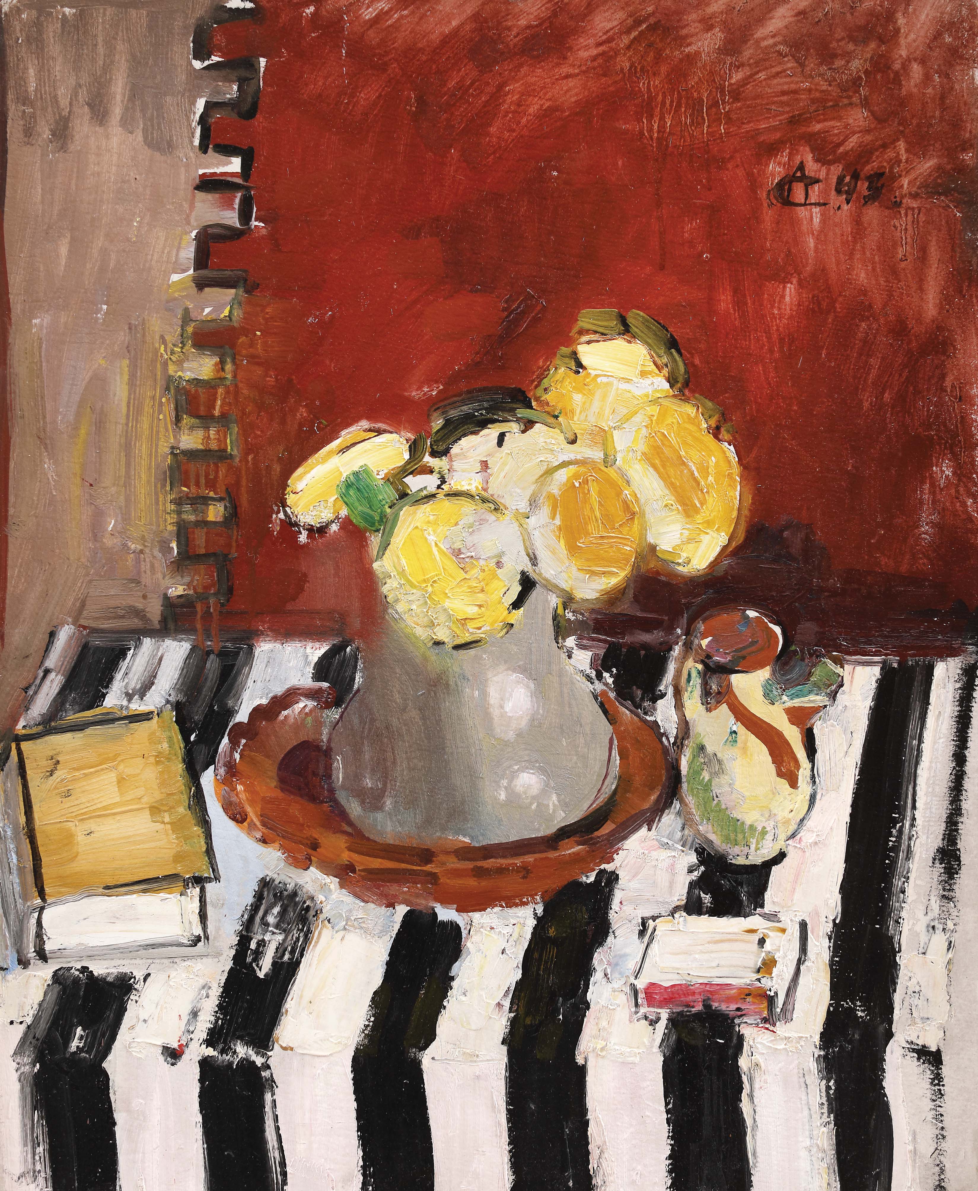 154. Natură statică cu cărți și vas cu trandafiri galbeni [1943]