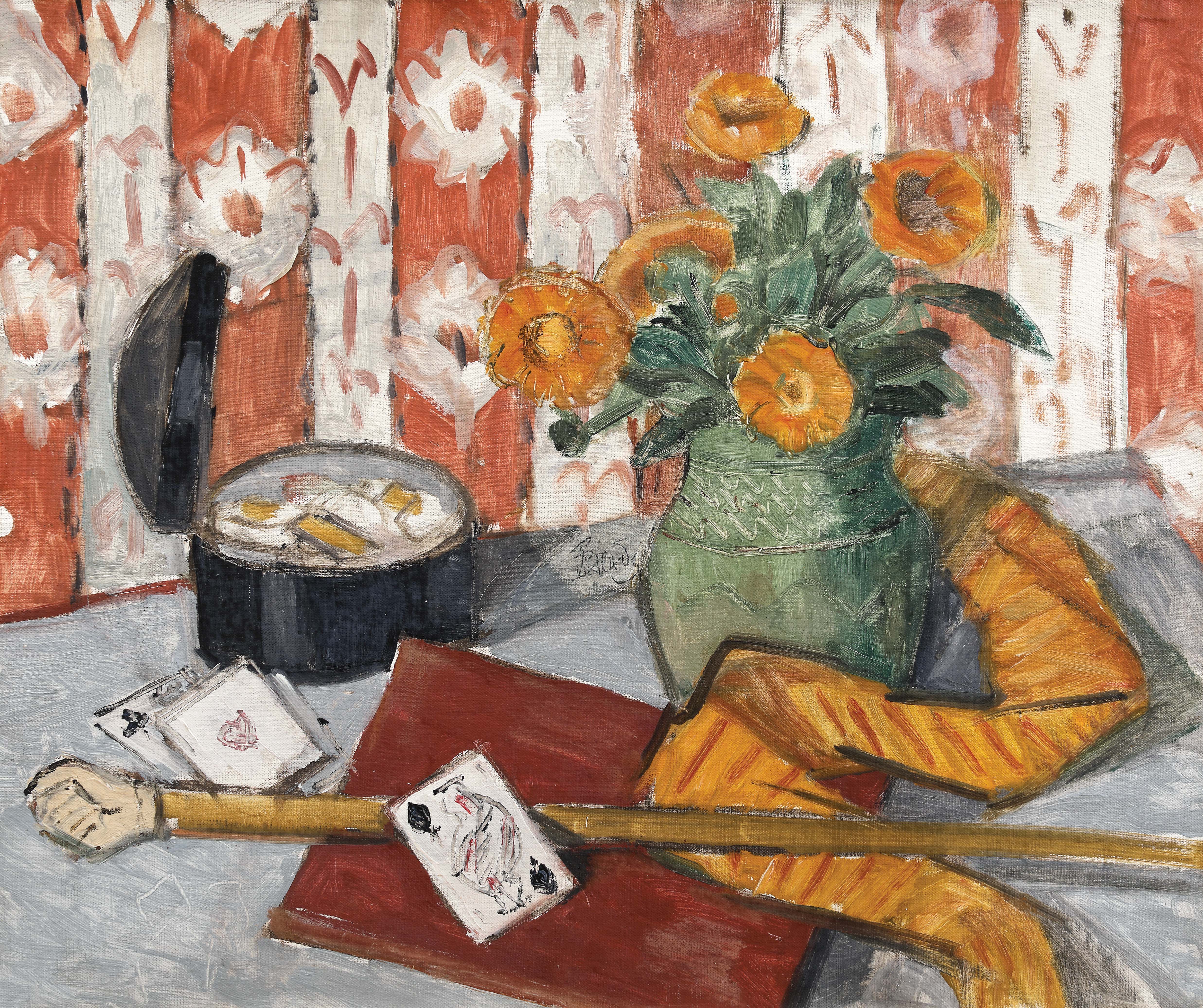 111. Oală cu gălbenele și cărți de joc [anii '30]