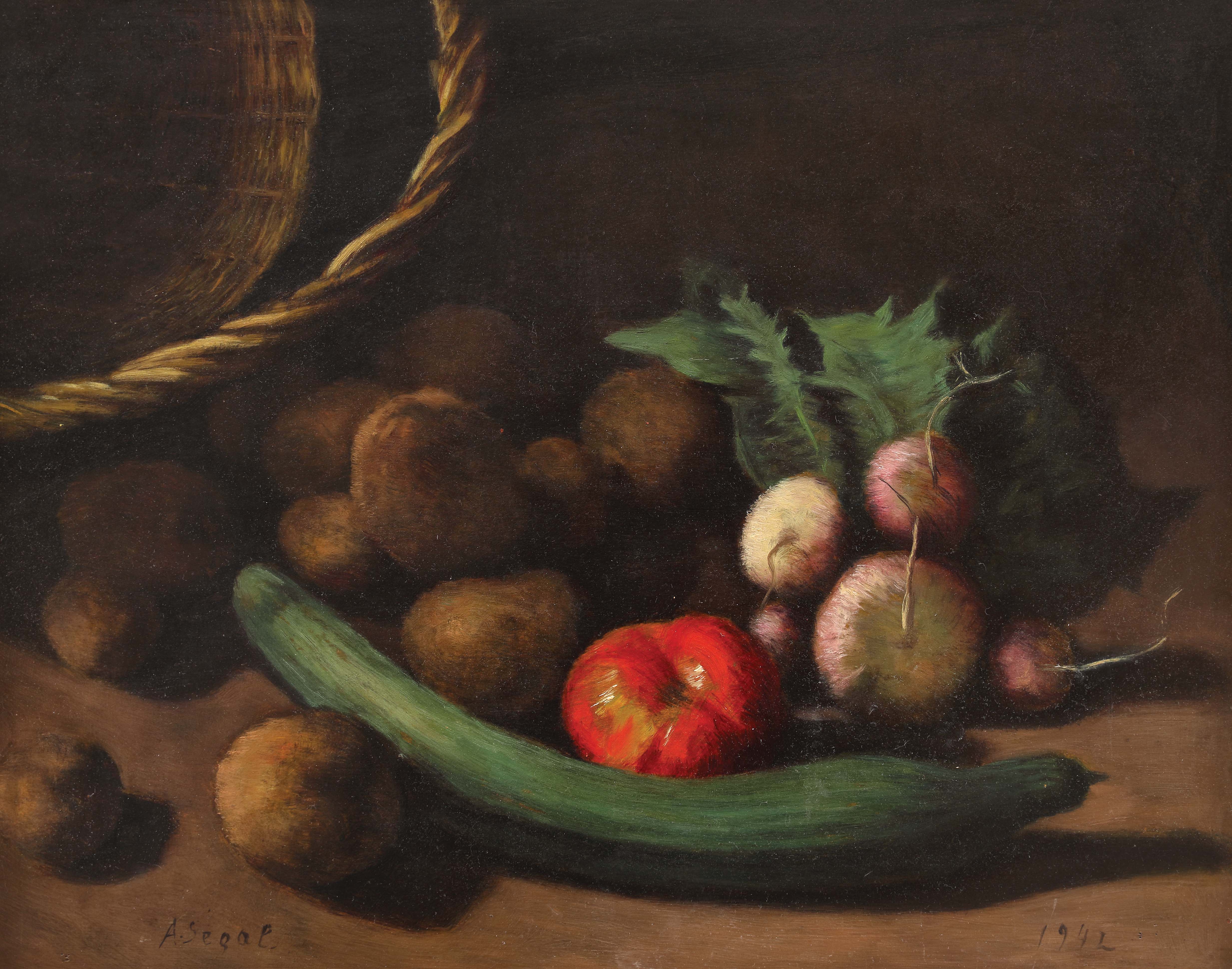 semnat stânga jos, cu brun, "A. Segal"; datat dreapta jos, cu brun, "1942"