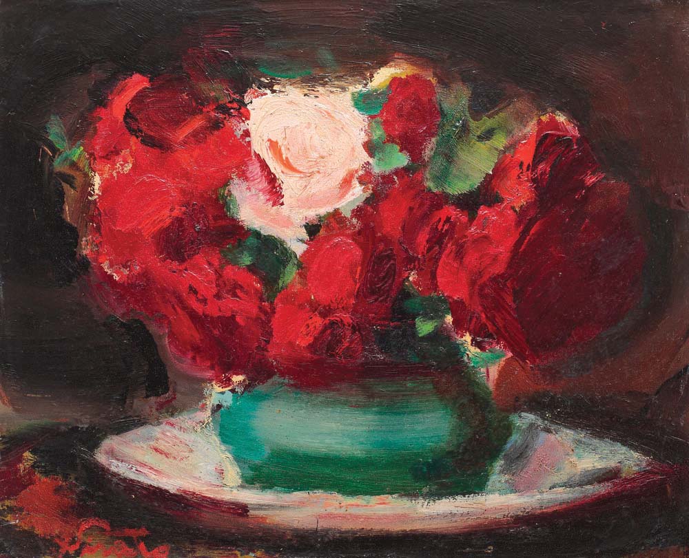 Practicant eminent al picturii de șevalet, în cadrul căreia vom regăsi genuri precum scene de gen, naturi moarte, flori, autoportrete, scene de interior sau peisaje, artistul Francisc Șirato se va dovedi un adevărat artist al realității, care îi va rămâne cel mai loial izvor de inspirație. Observăm în ultima sa perioadă de creație o prezență proeminentă a „florilor”, care vor deveni începând cu anul 1938 fi subiectul unei serii ample, consolidată de repetări și concordanțe. Le pictase și înainte, fiind ademenit de vitalitatea lor tăinută, acum însă va găsi în alcătuirea motivului un sprijin din ce în ce mai însemnat. Cârciumărese, trandafiri de lună, iriși, tufănele sau lalele, așezate lângă fructe și obiecte diverse vor reprezenta elementele unei compoziții echilibrate. Adept al culorii de ulei, artistul va aprecia această pictură ca pe o adevărată bucurie, pe care o va modela în promisiuni și în frumos, din ale cărei raporturi complementare vor lua naștere efecte armonioase. (G.M.)