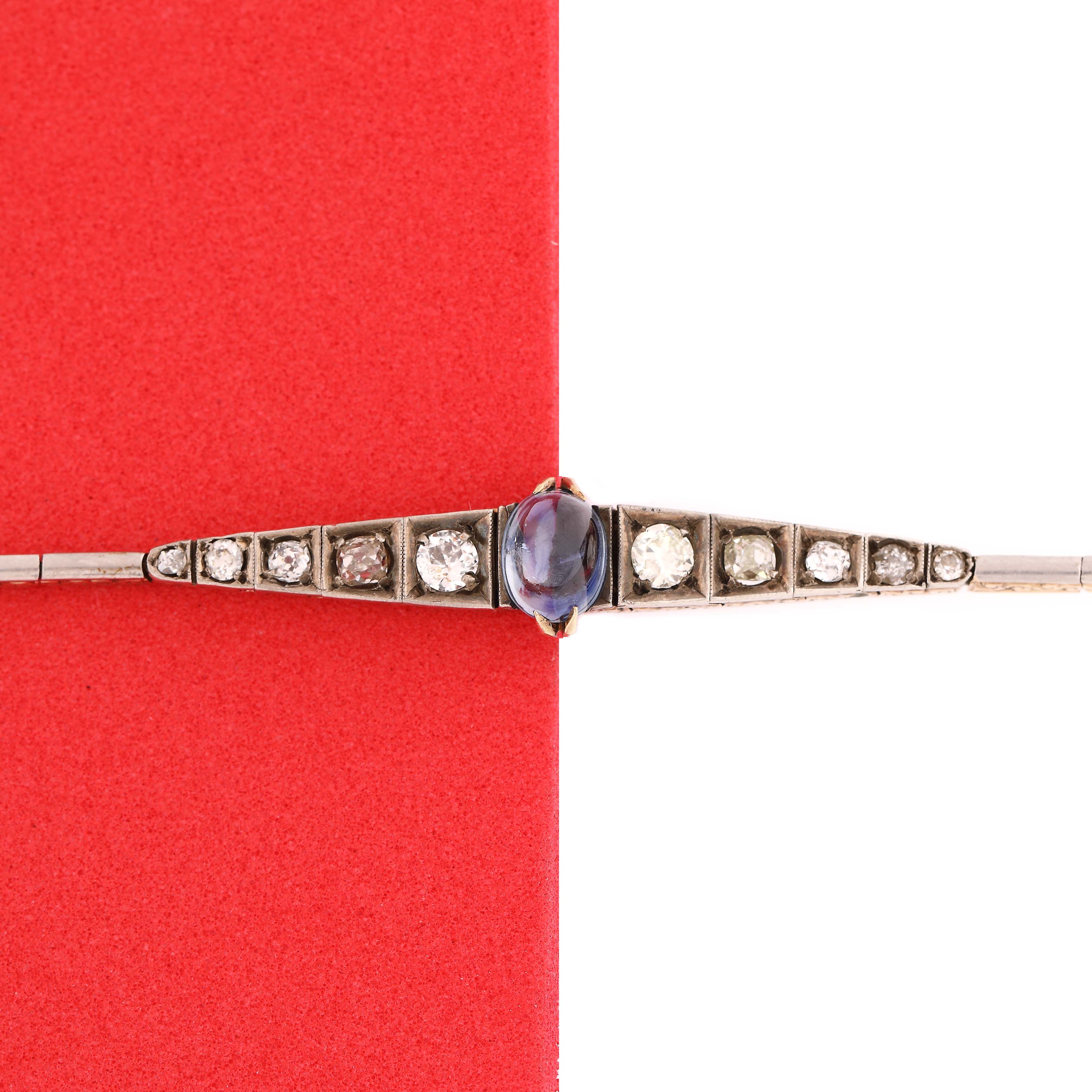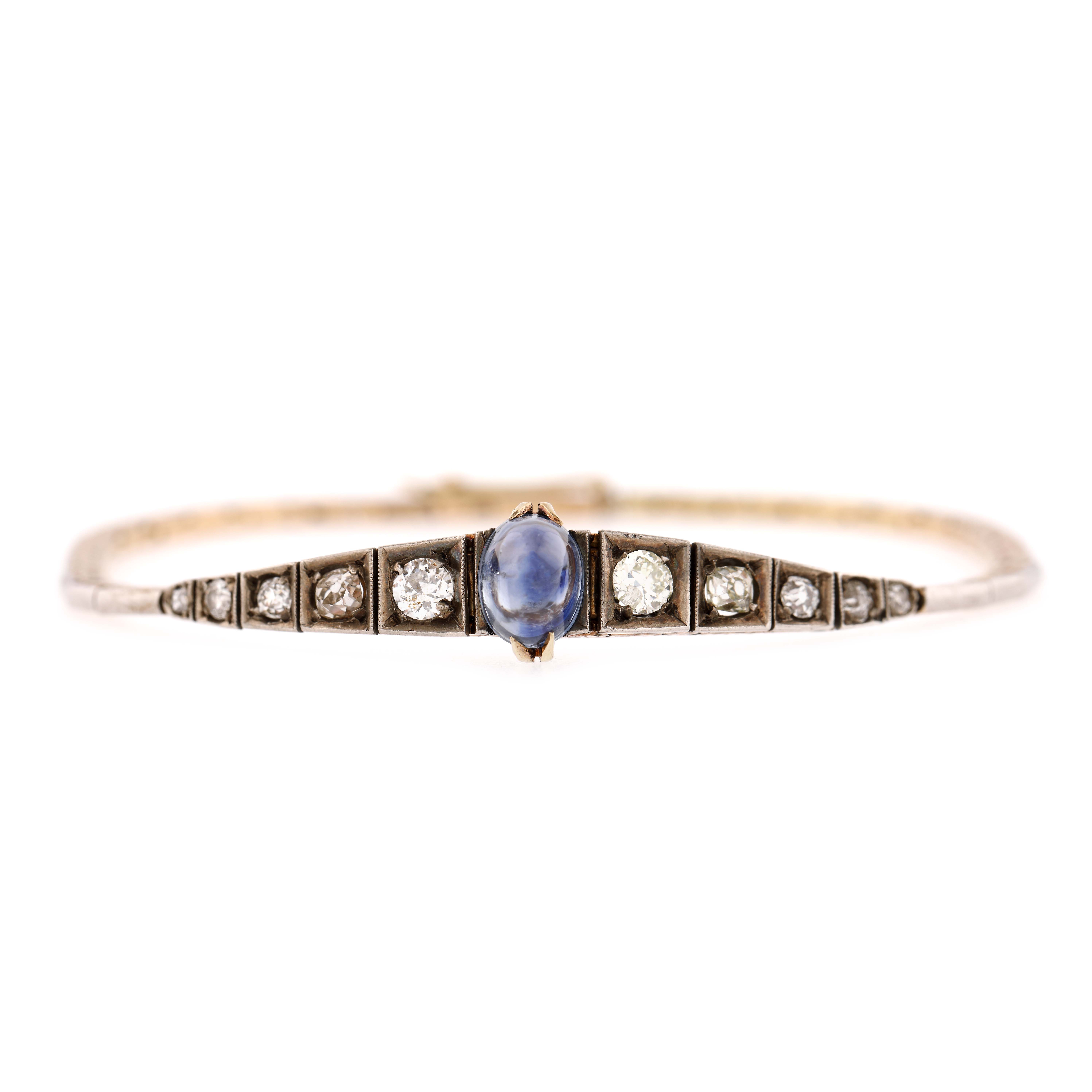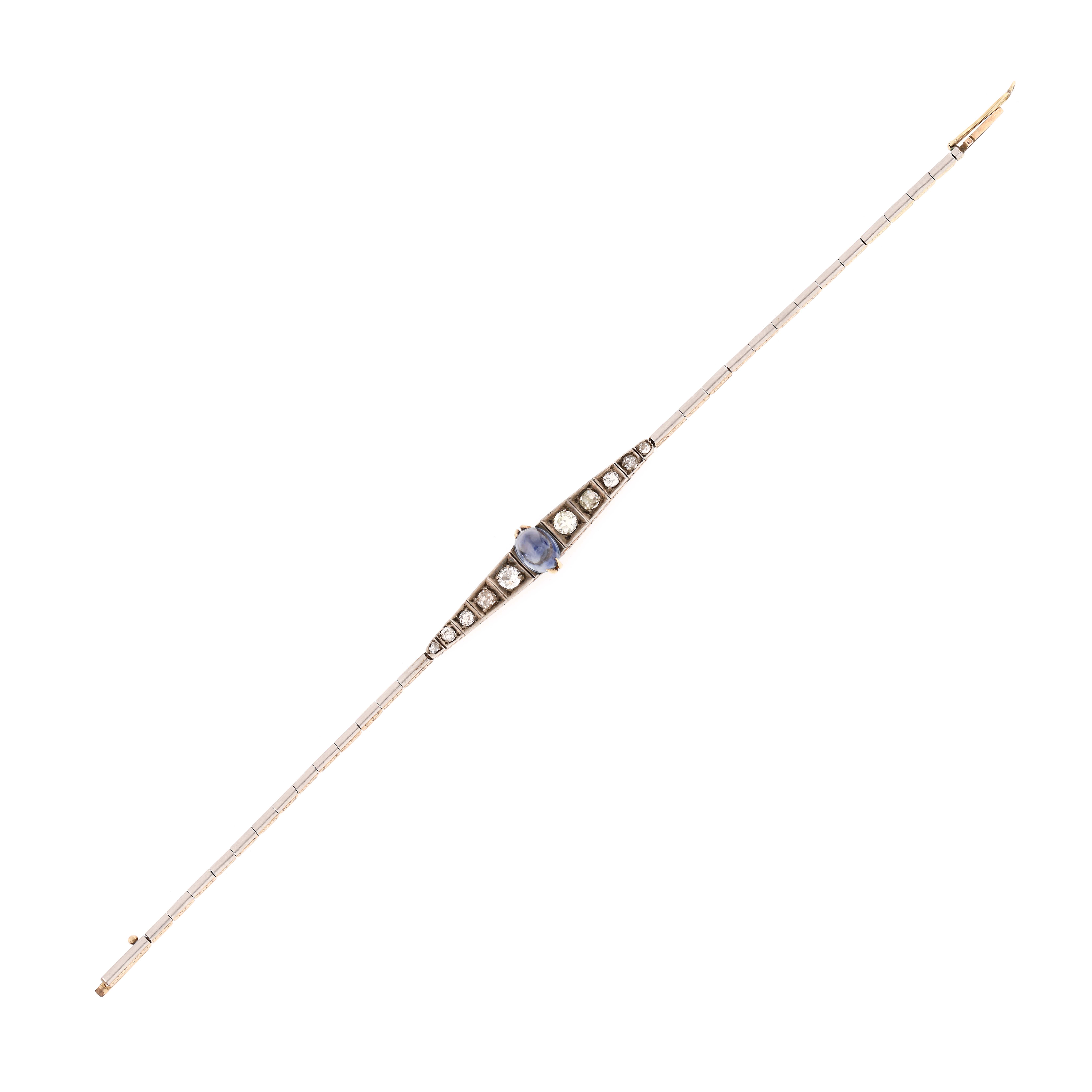 81. Brățară din aur, argint și platină, decorată cu safir caboșon și diamante, cca. 1910
