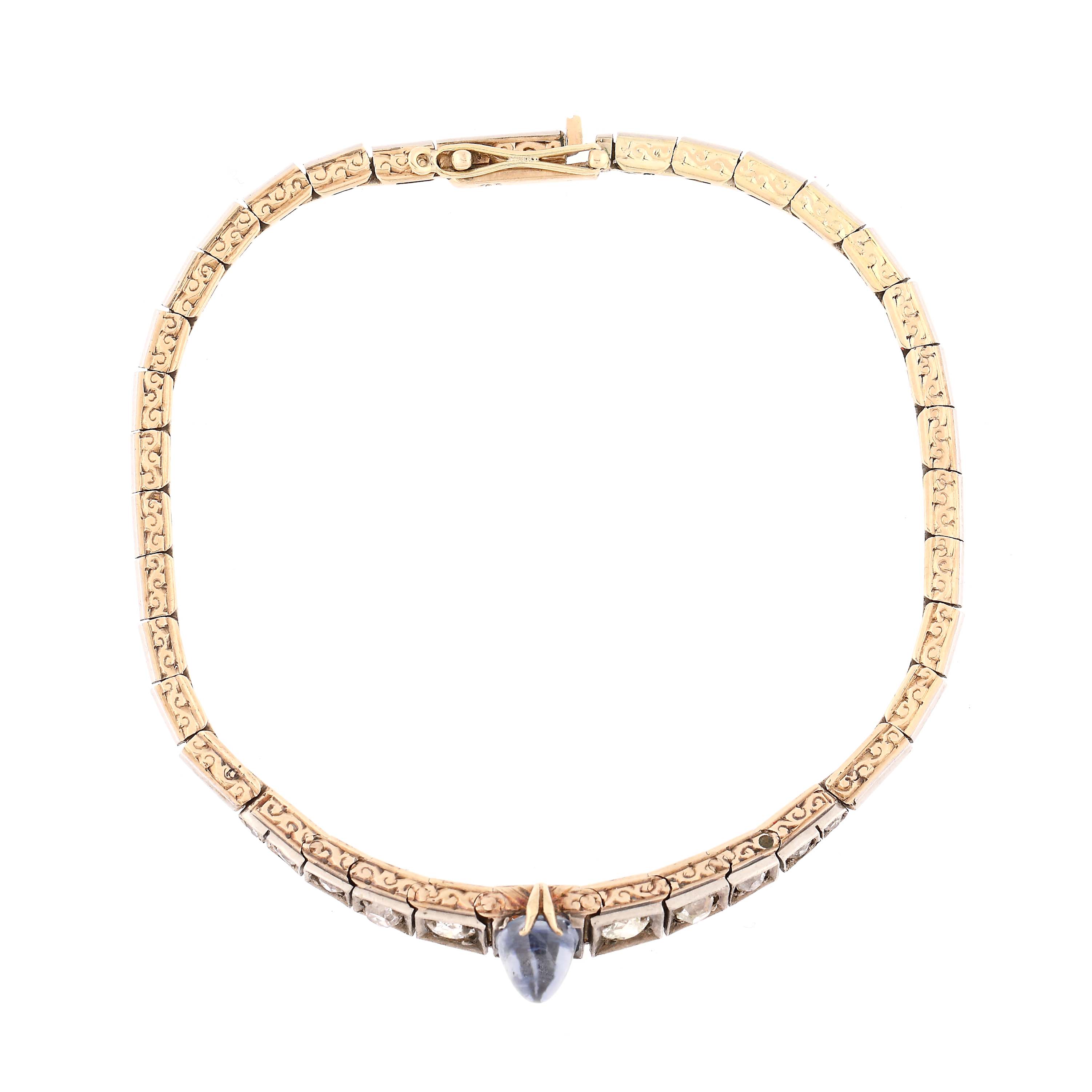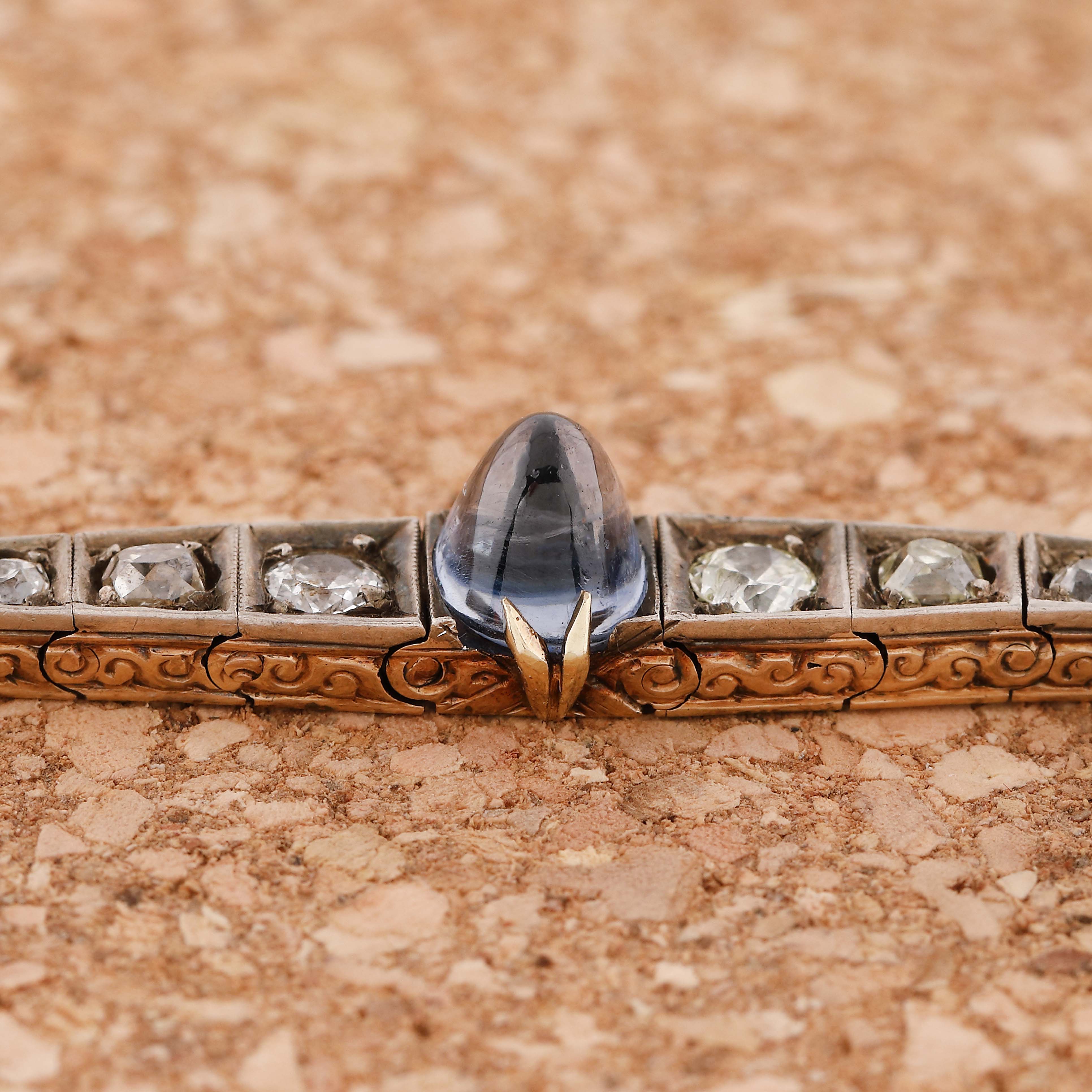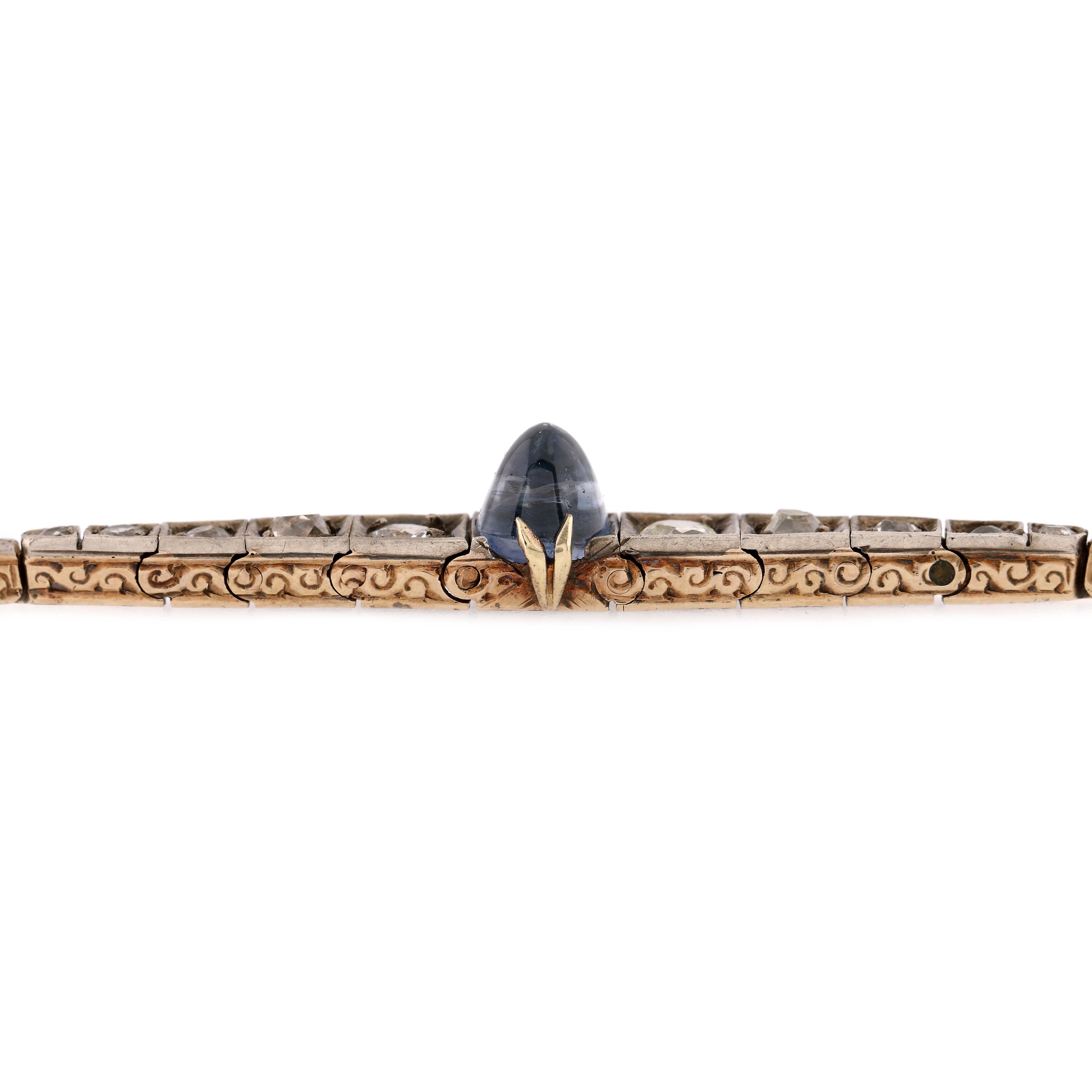 81. Brățară din aur, argint și platină, decorată cu safir caboșon și diamante, cca. 1910