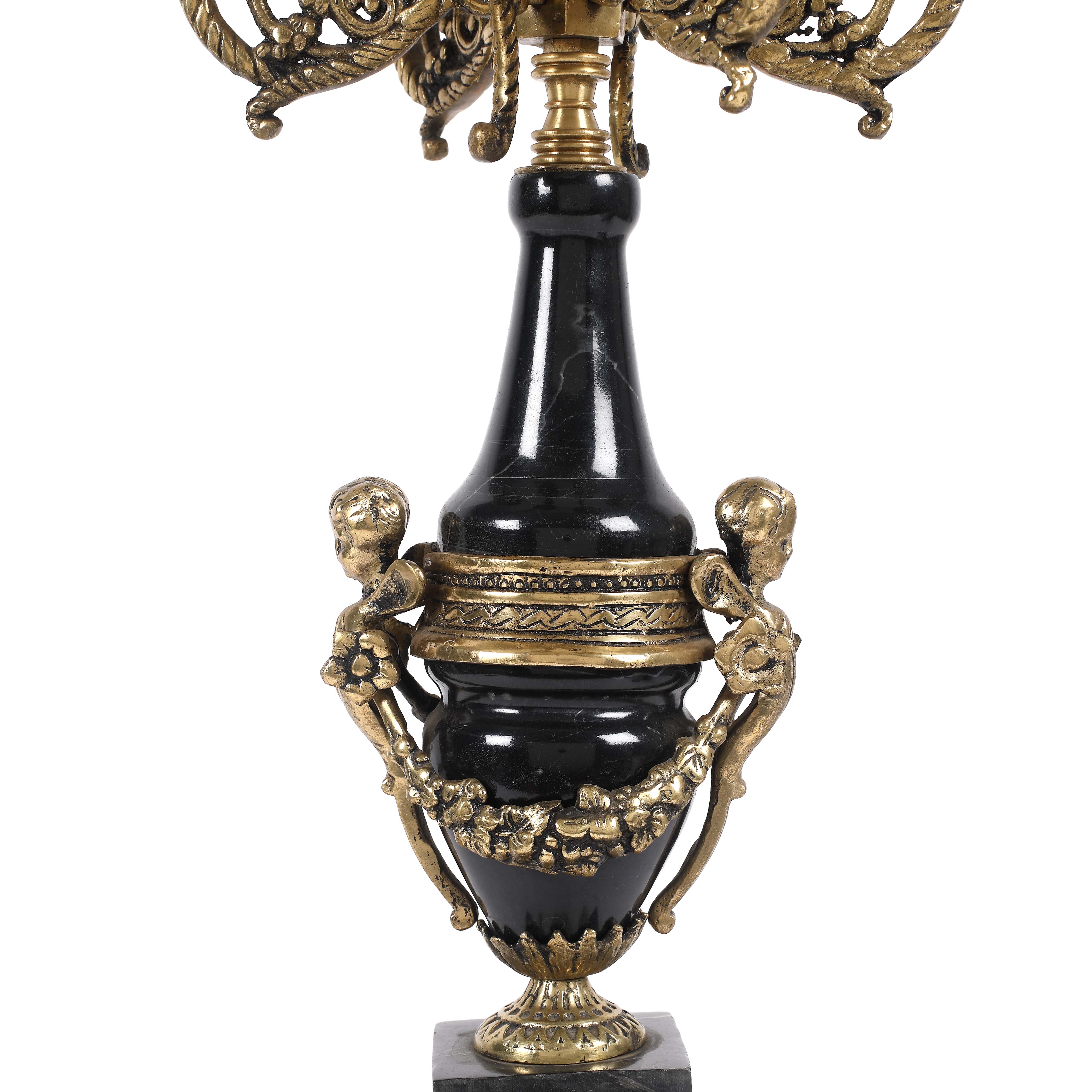 93. Candelabru Lancini, cu șapte lumini, din bronz și marmură, decorat cu putti și ghirlande [A doua jumătate a sec. XX]