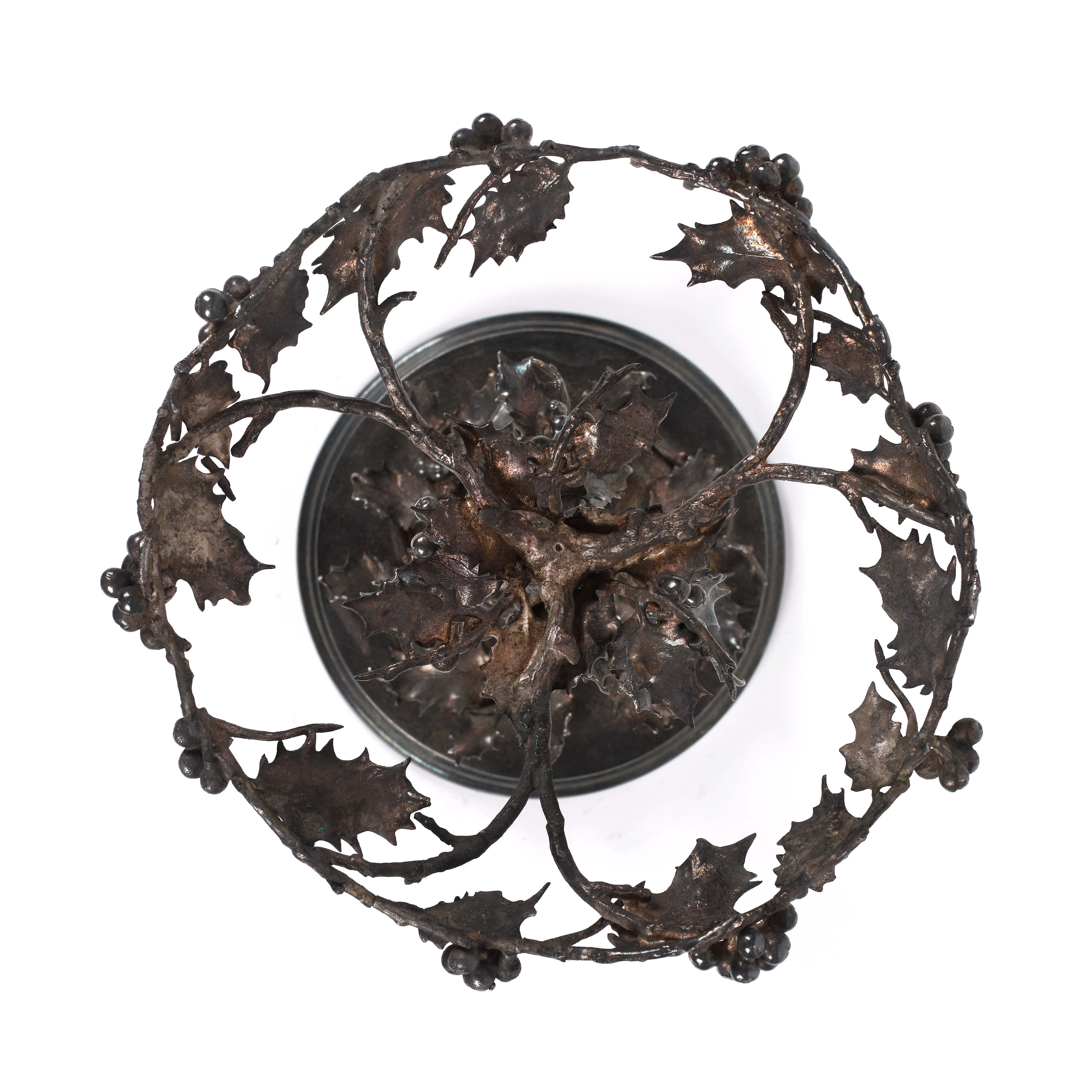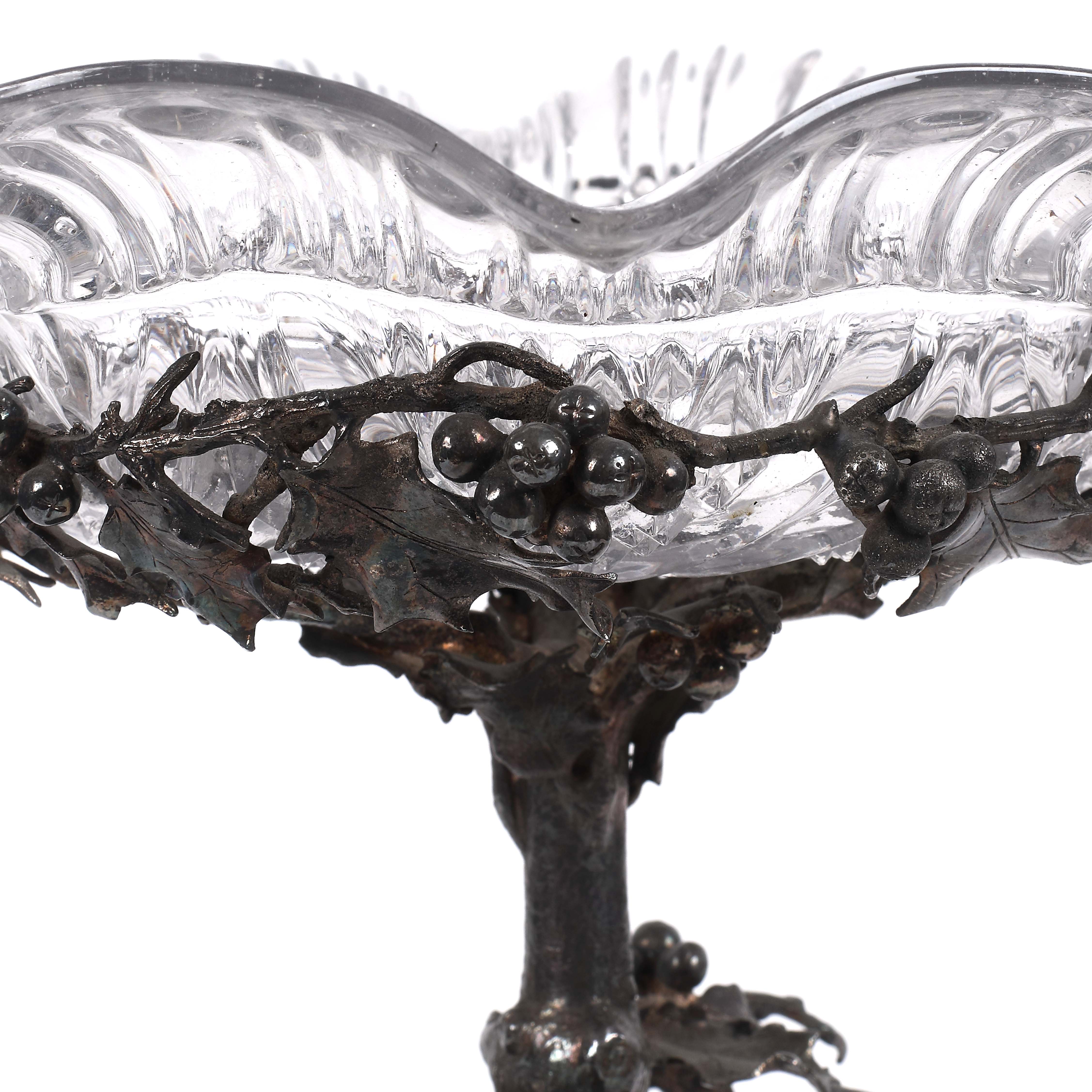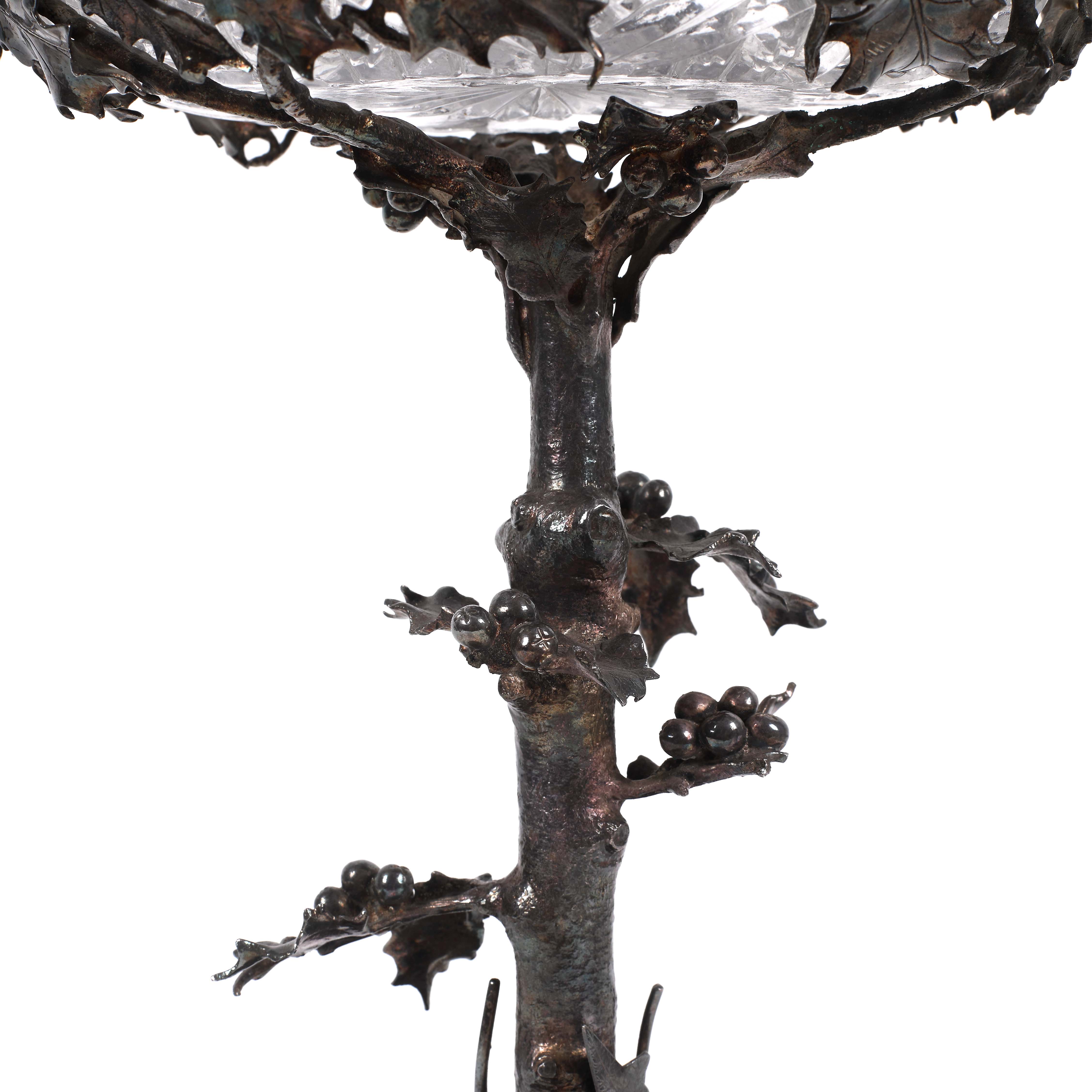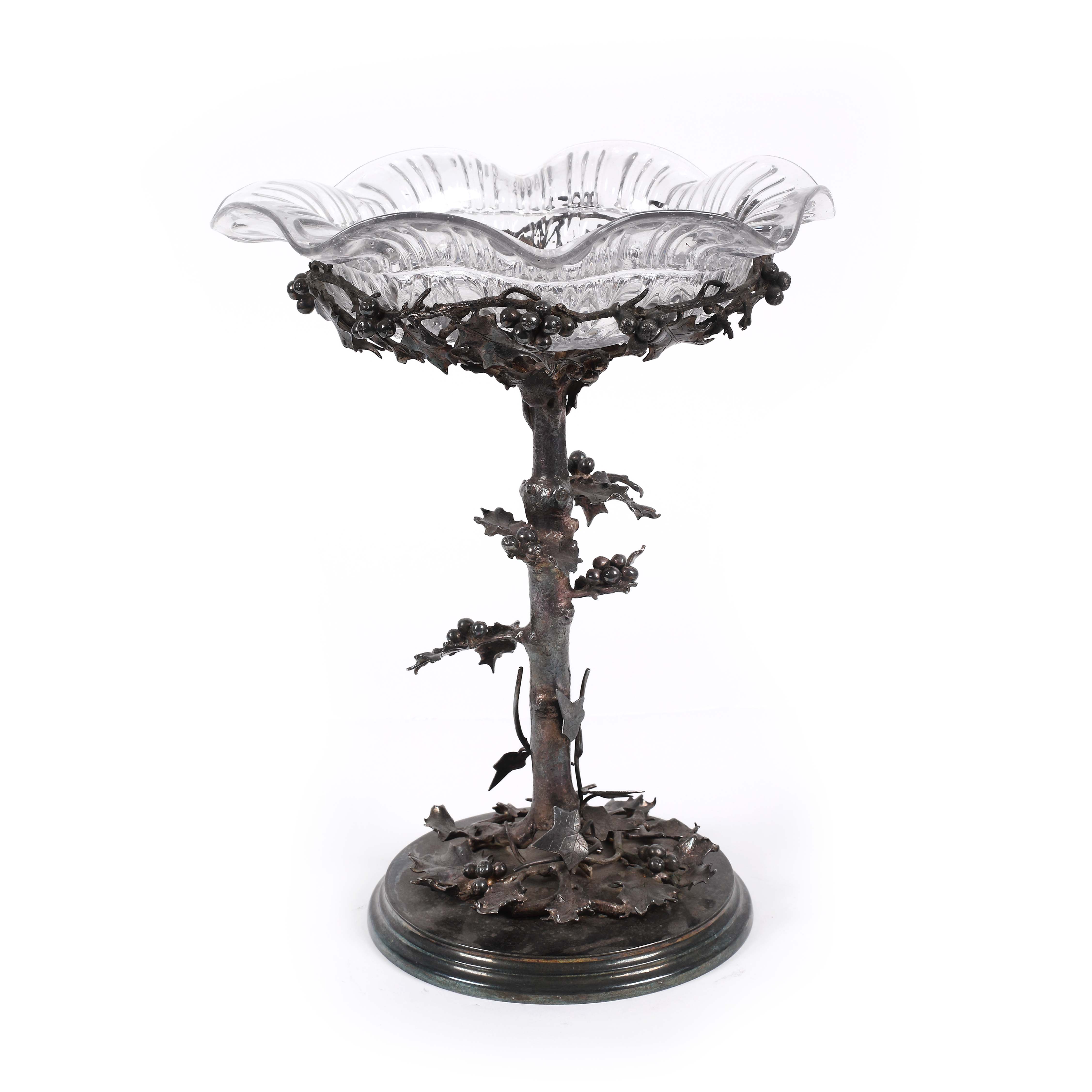 75. Fructieră/centru de masă Elkington & Co, pe suport decorat cu frunze și fructe de laur, cca. 1880-1910