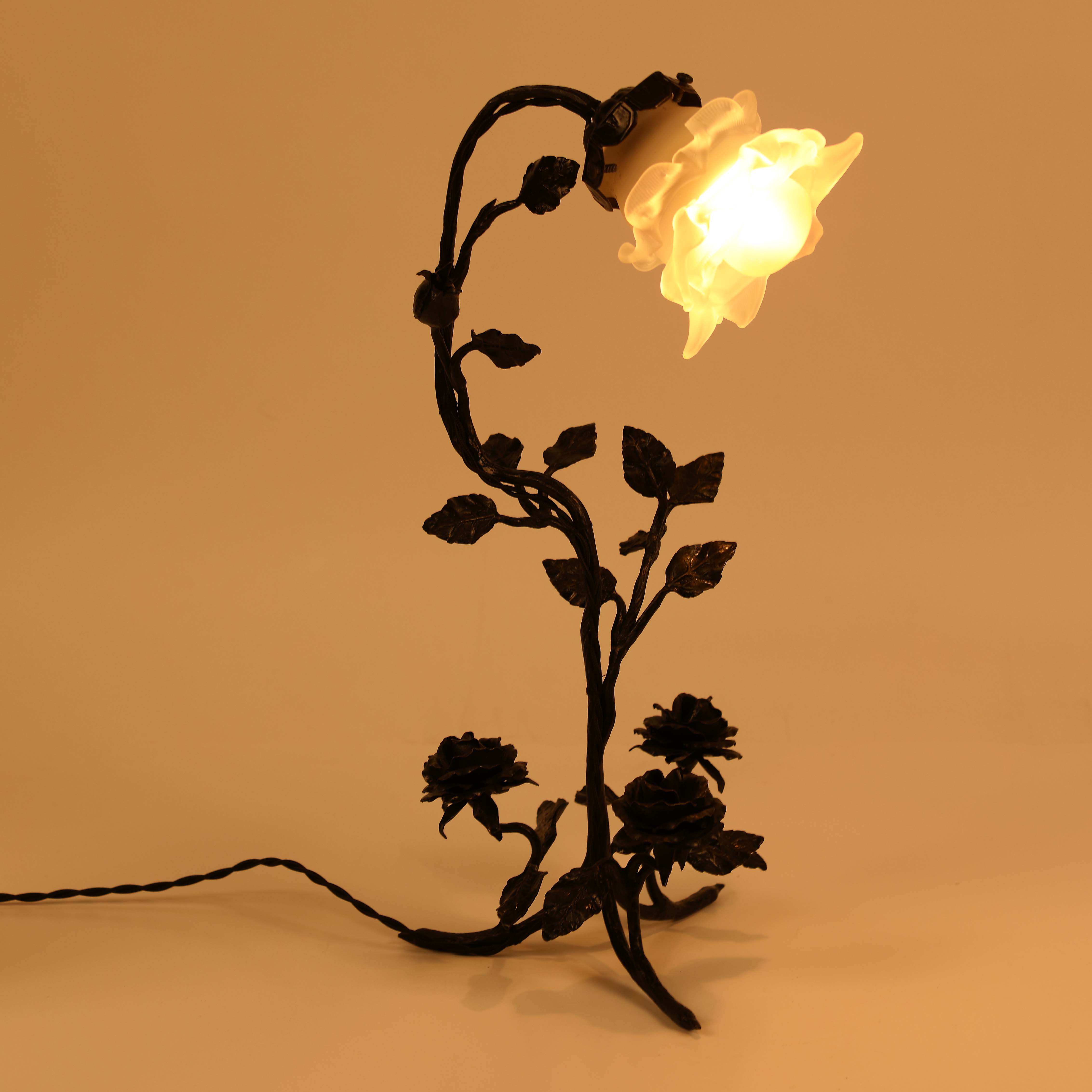 99. Lampă Henri Fournet, din sticlă satinată și fier forjat, cca. 1915