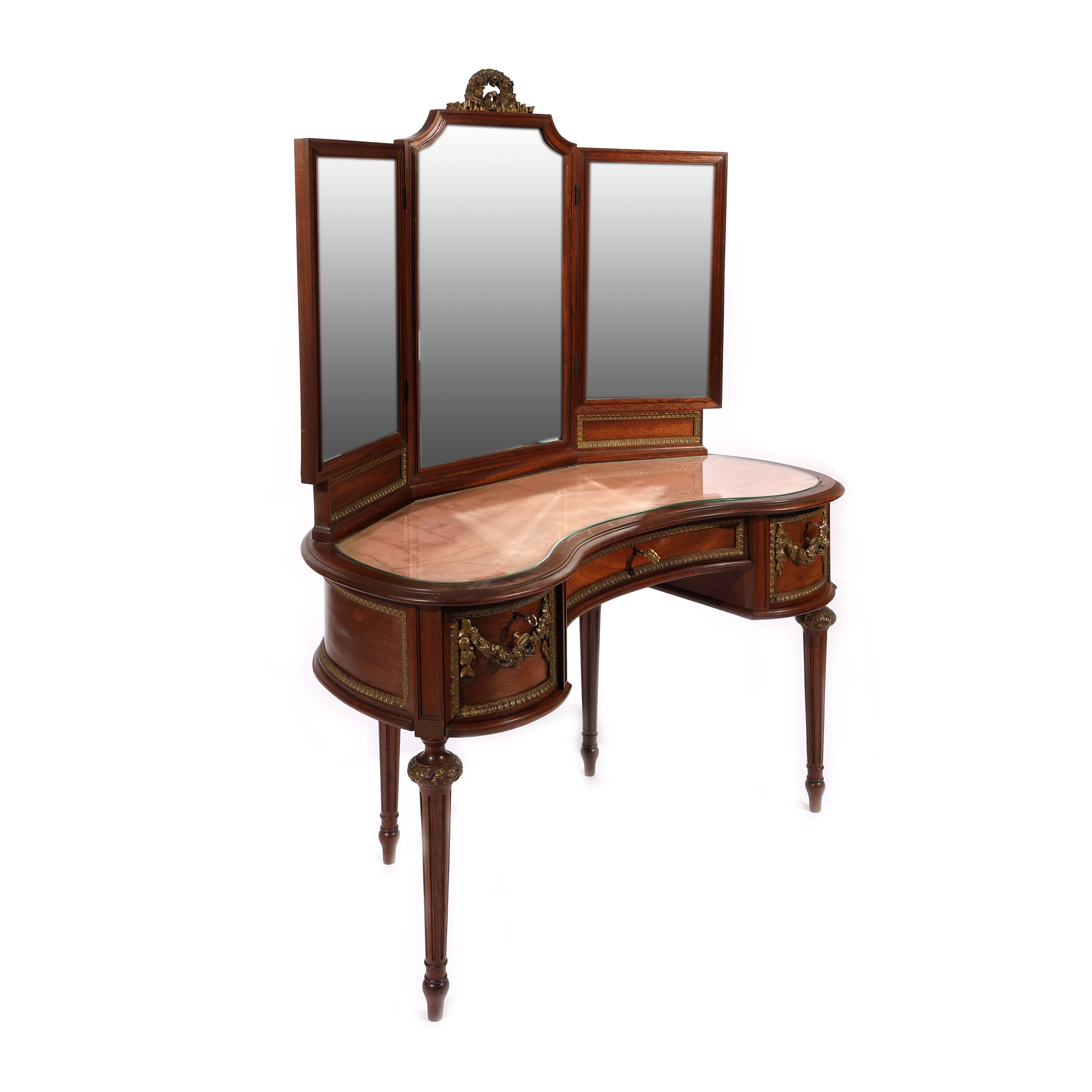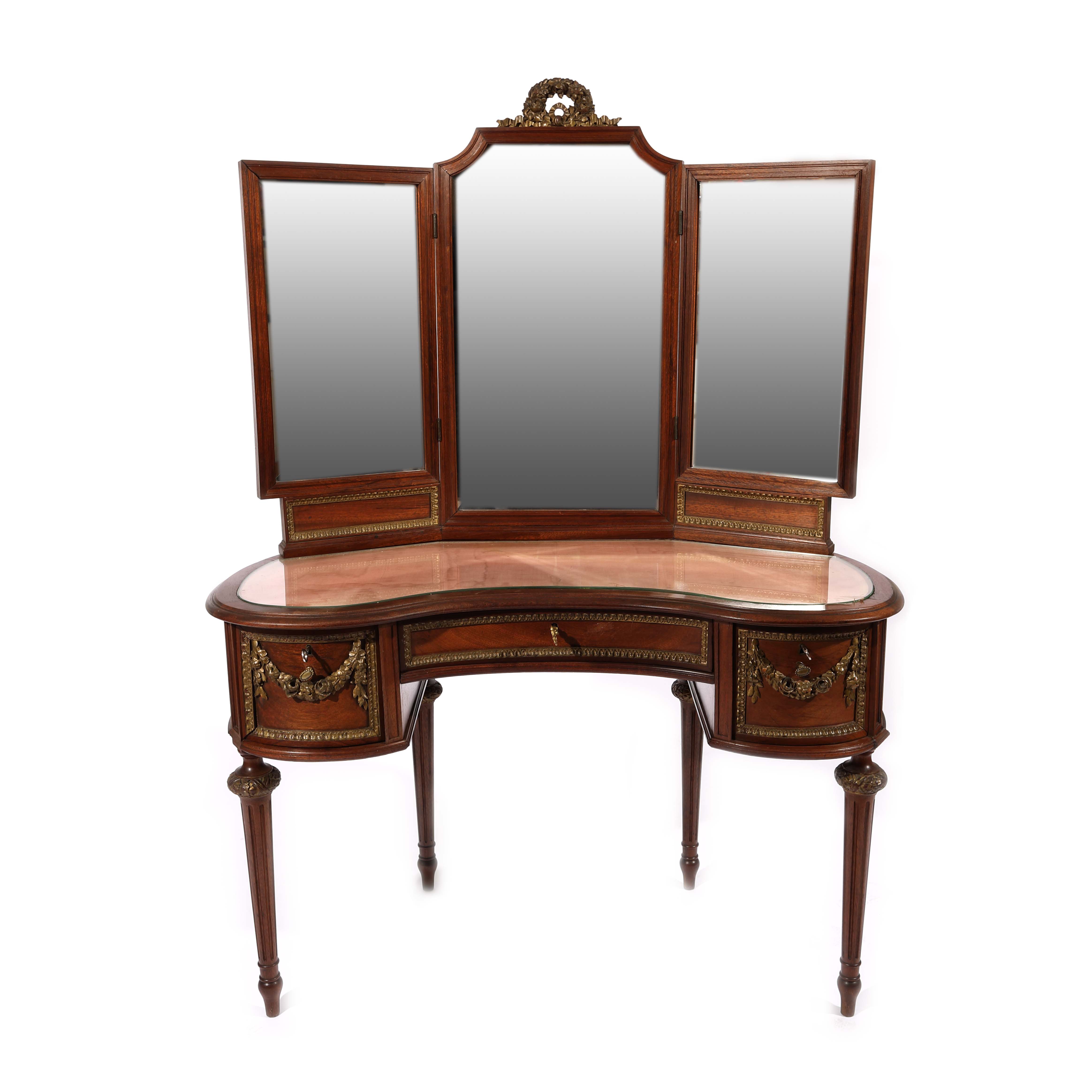 86. Masă de toaletă, în manieră Louis XVI, cu oglindă triptic [Sec. XX]