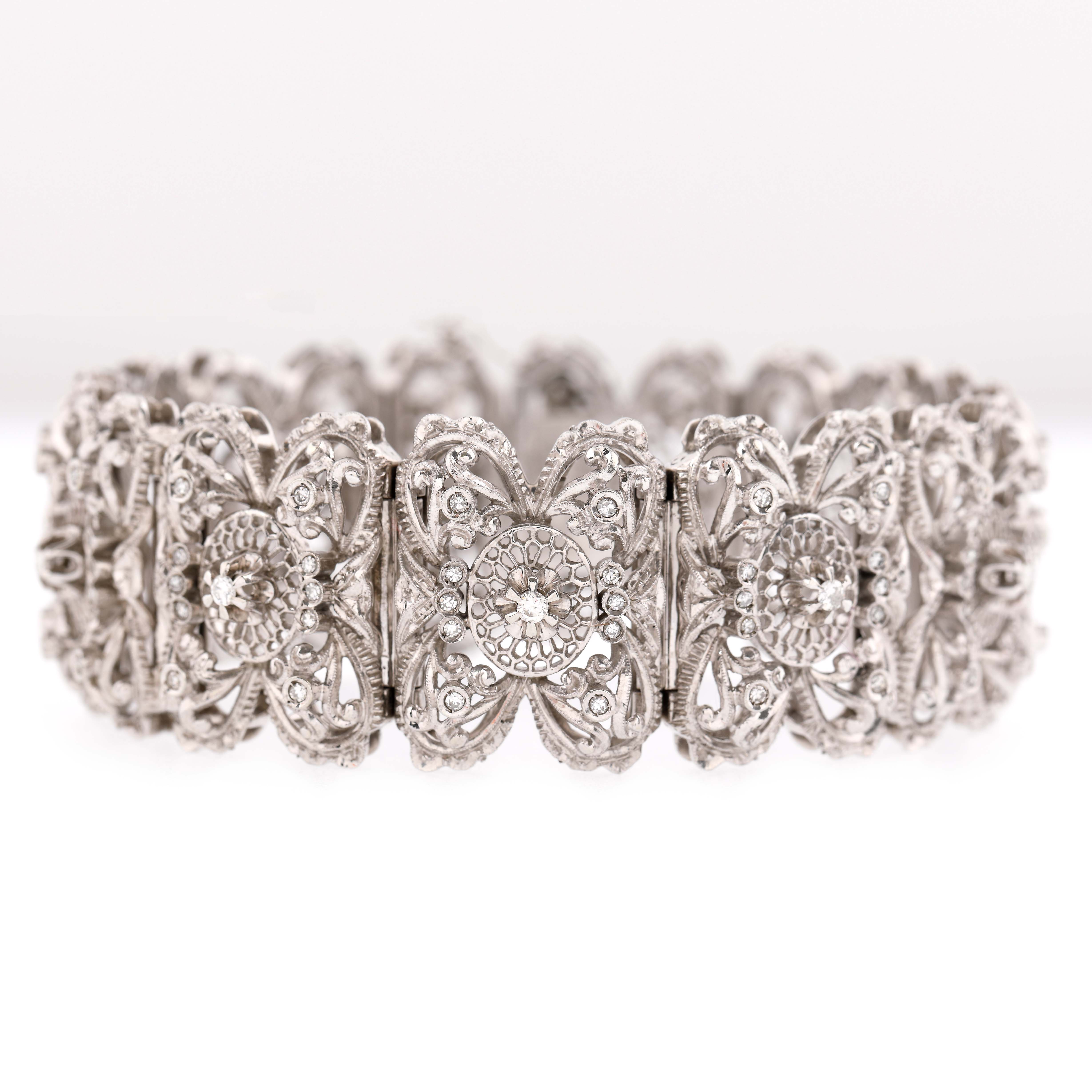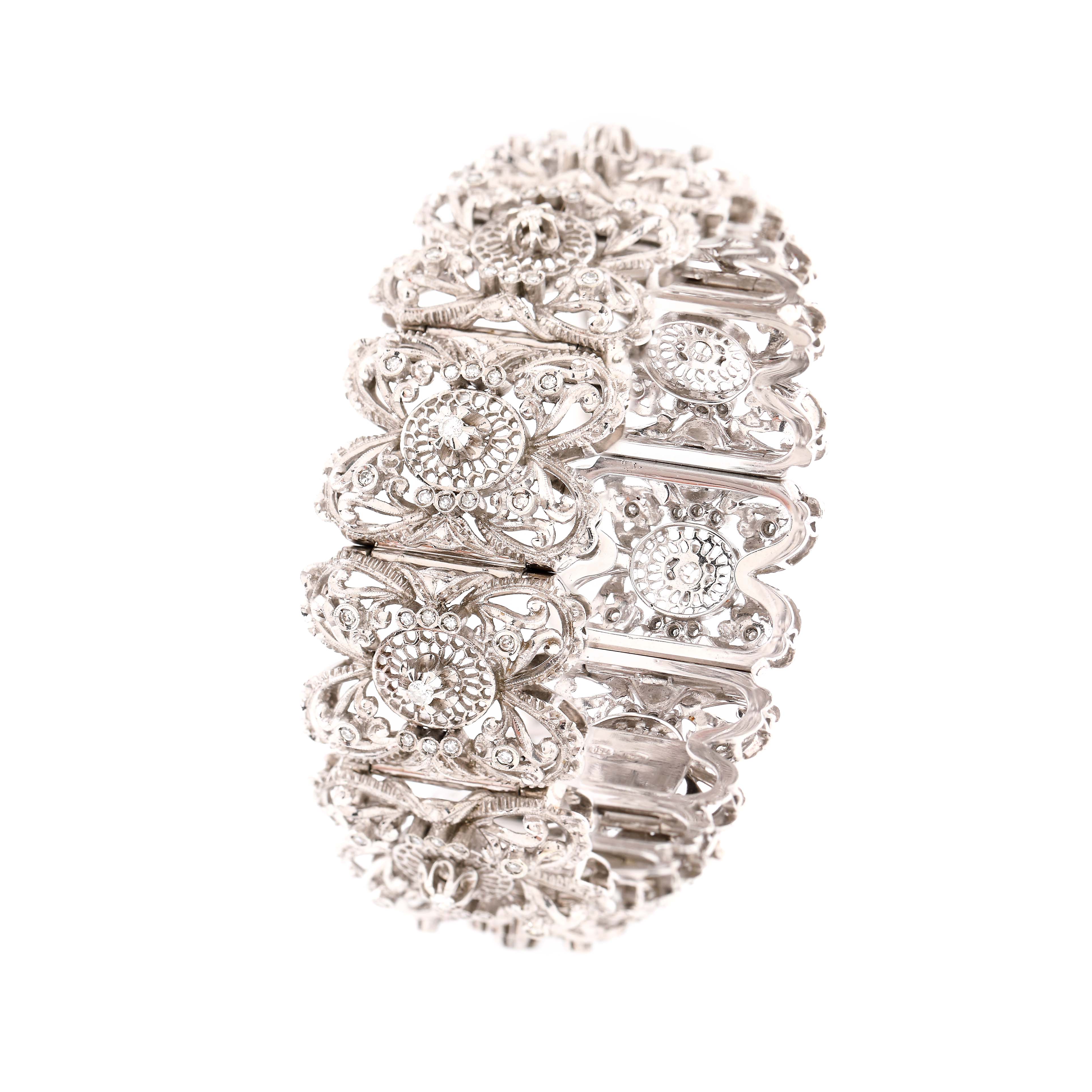 78. Opulentă brățară din aur alb, decorată cu diamante