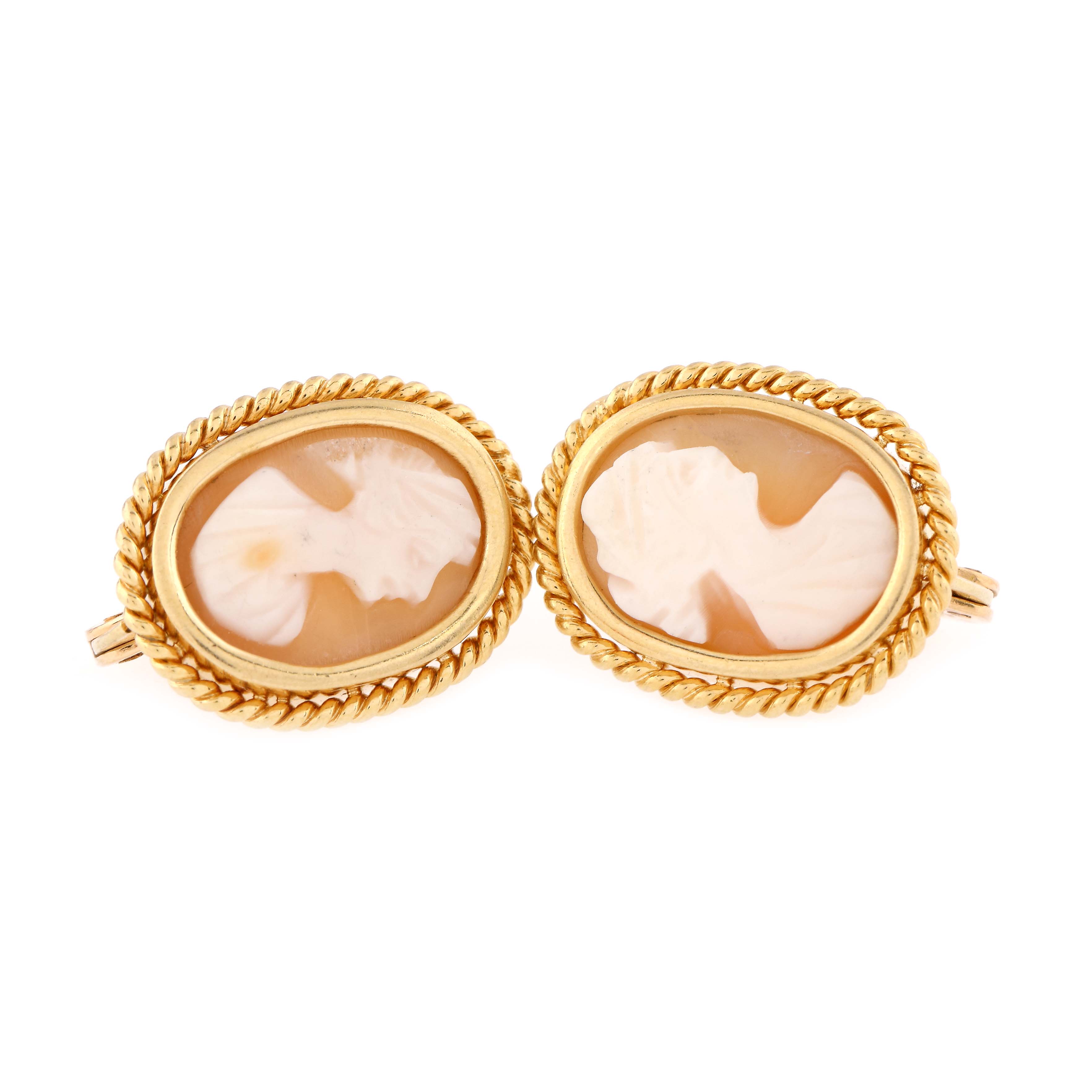 76. Pereche de cercei din aur, ornată cu camee