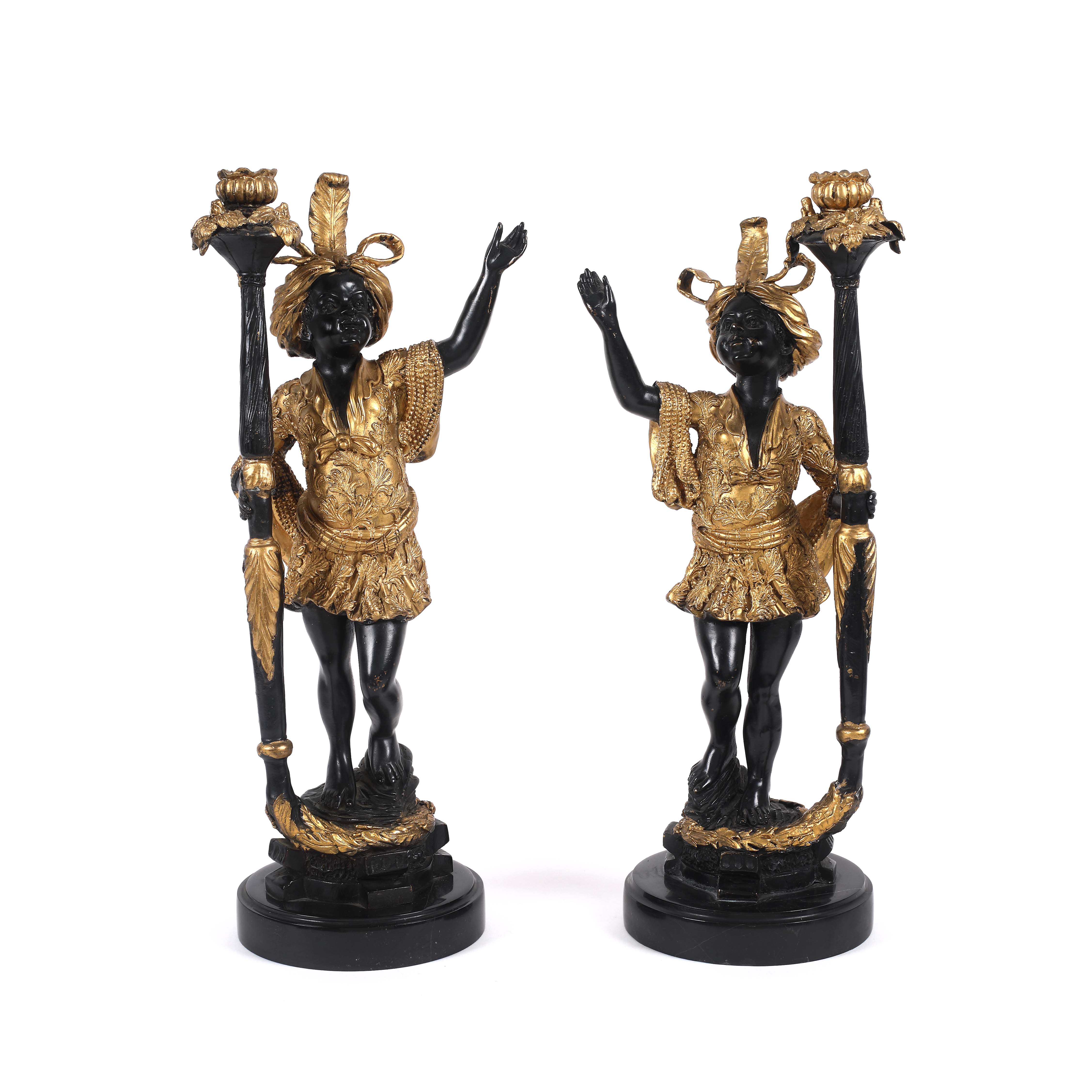 82. Pereche de sfeșnice decorative Blackamoor, probabil sec. XVIII-XIX