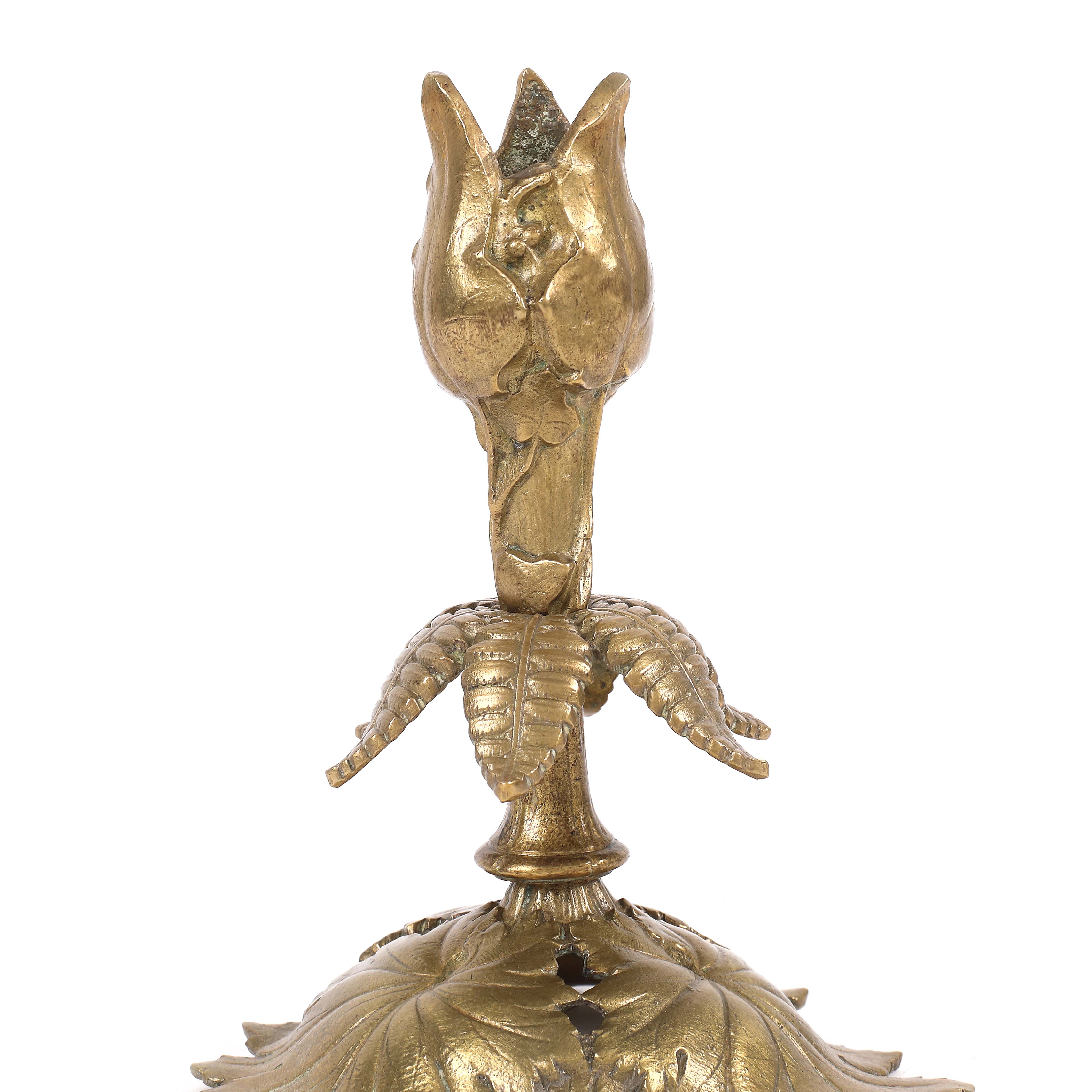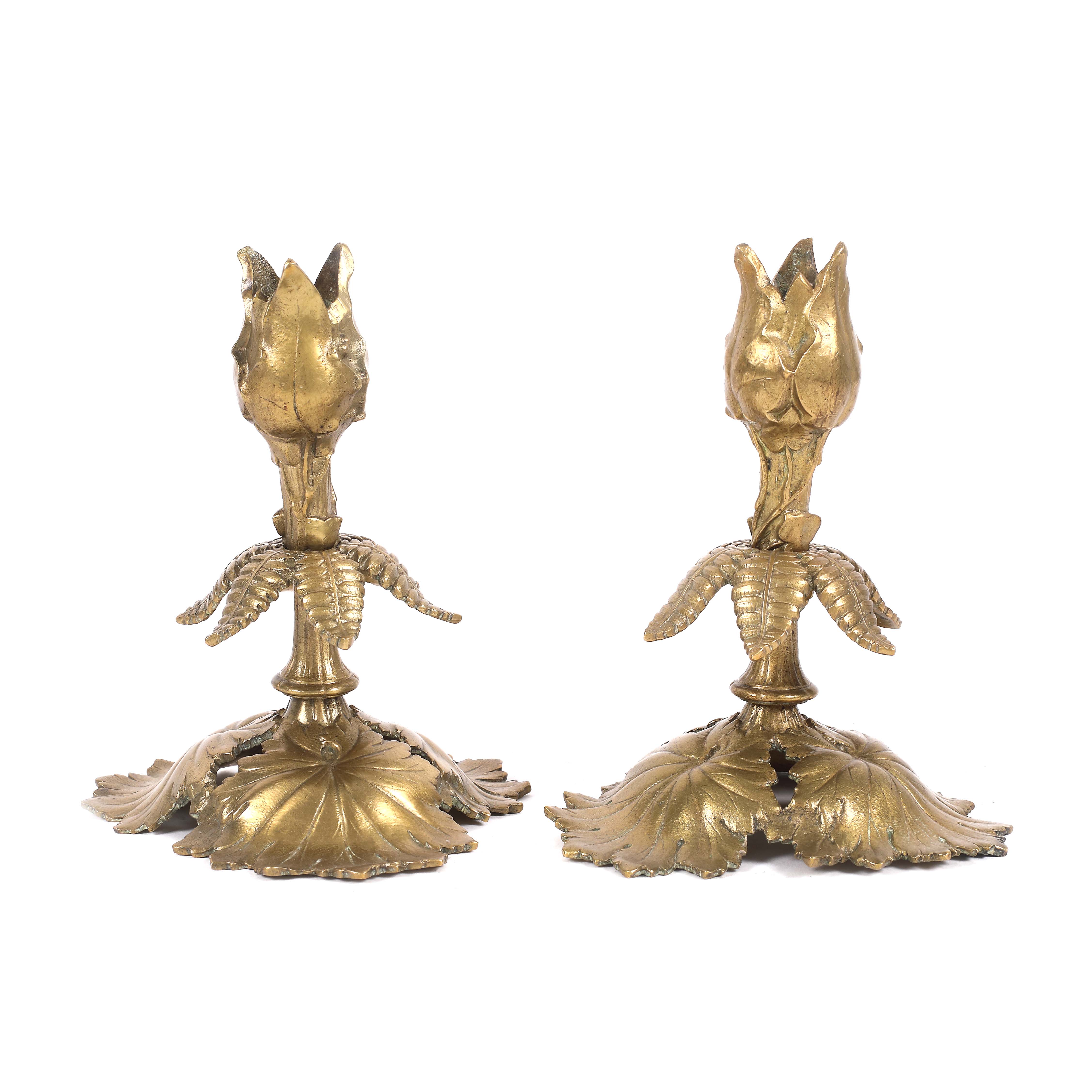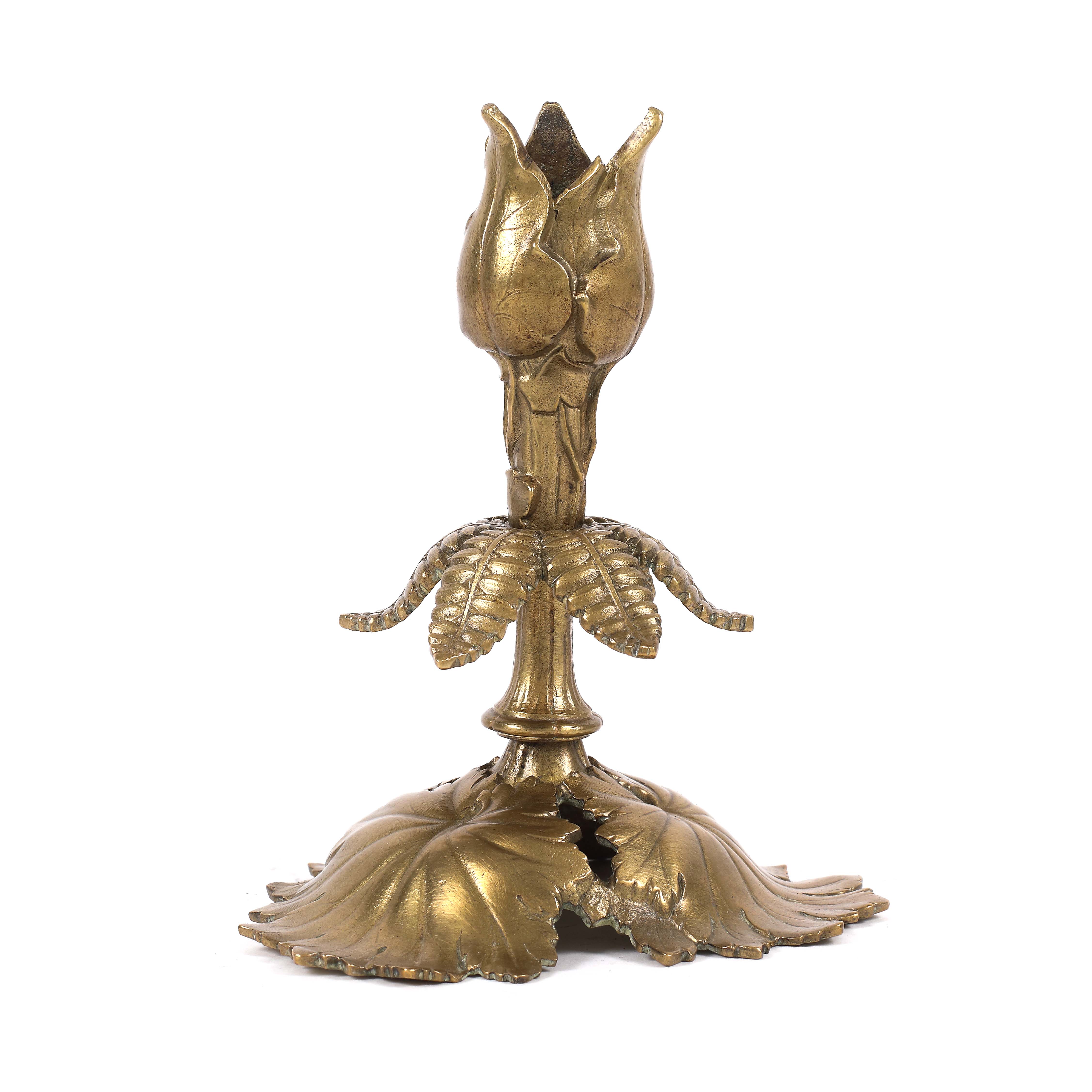 91. Pereche de sfeșnice din bronz, în manieră École de Nancy, în forma unor boboci, cca. 1900
