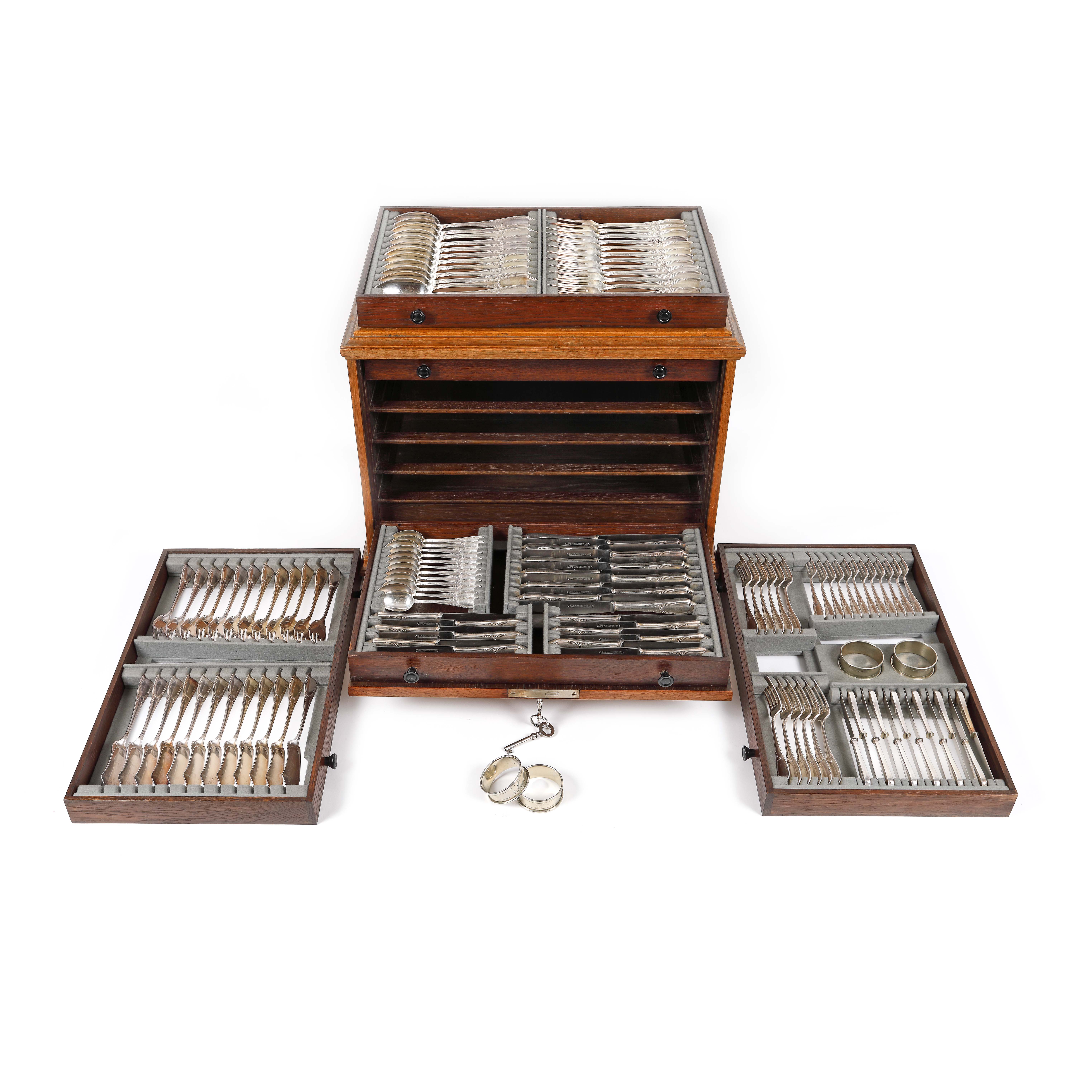 Tacâmuri fel principal: 12 linguri, 12 furculițe. 12 linguri. Tacâmuri pentru pește: 12 furculițe, 12 cuțite. Tacâmuri pentru desert: 12 linguri, 12 furculițe, 12 cuțite. Tacâmuri pentru fructe: 12 furculițe, 12 cuțite. 4 inele pentru șervețele.