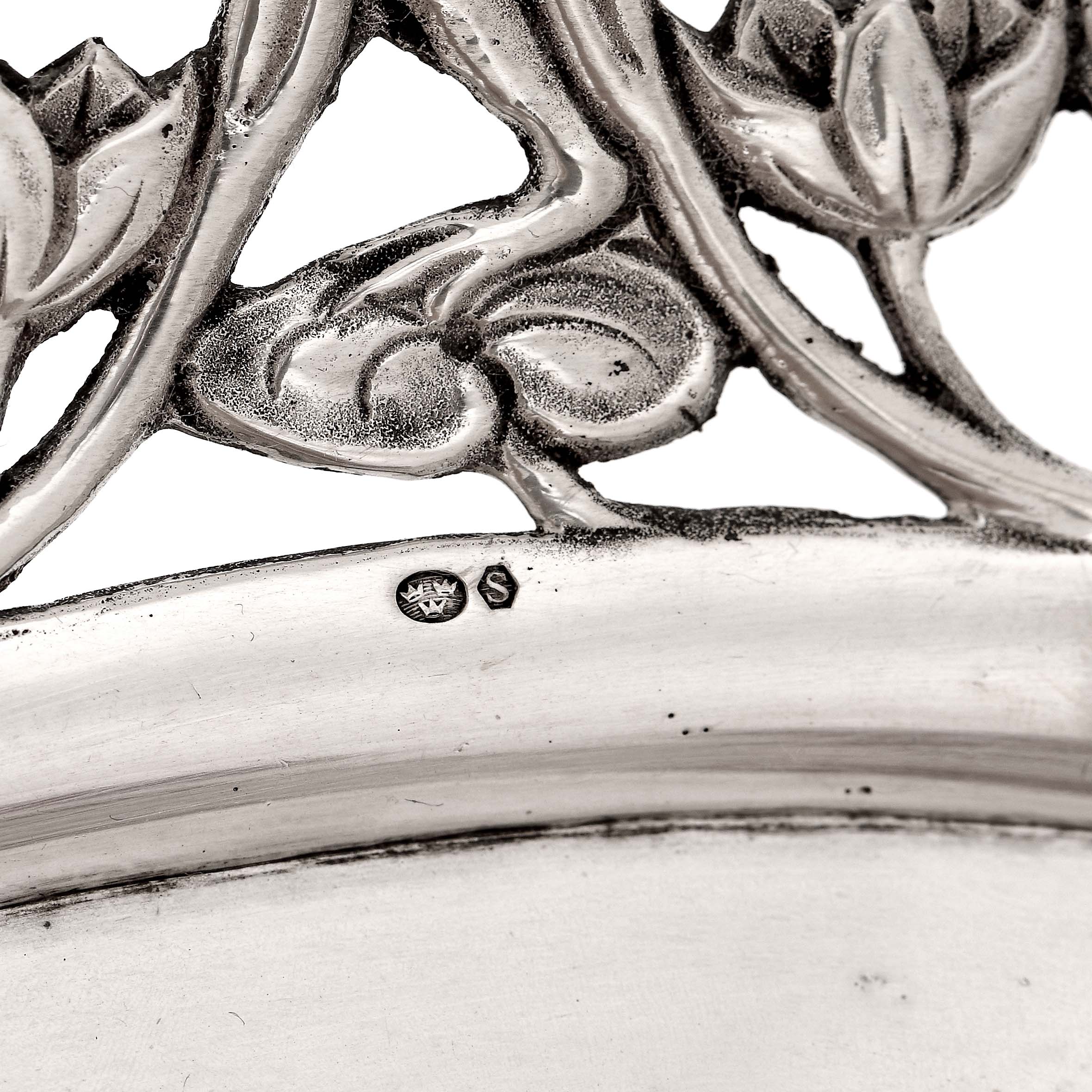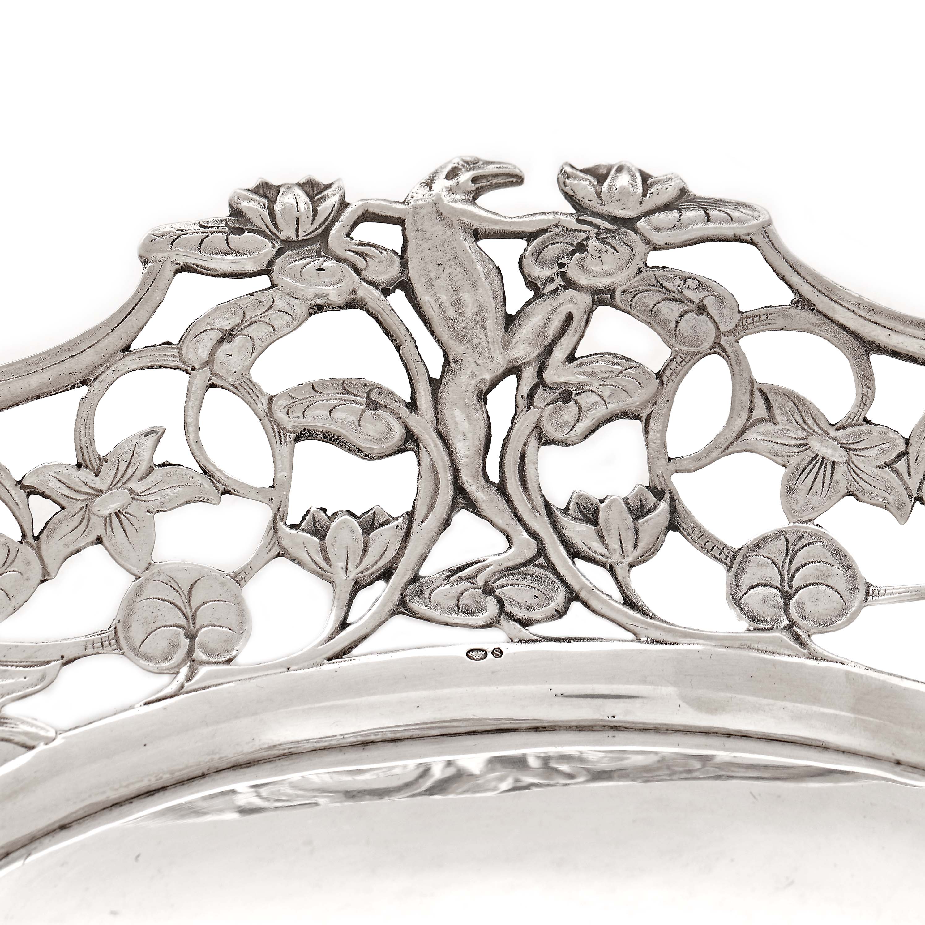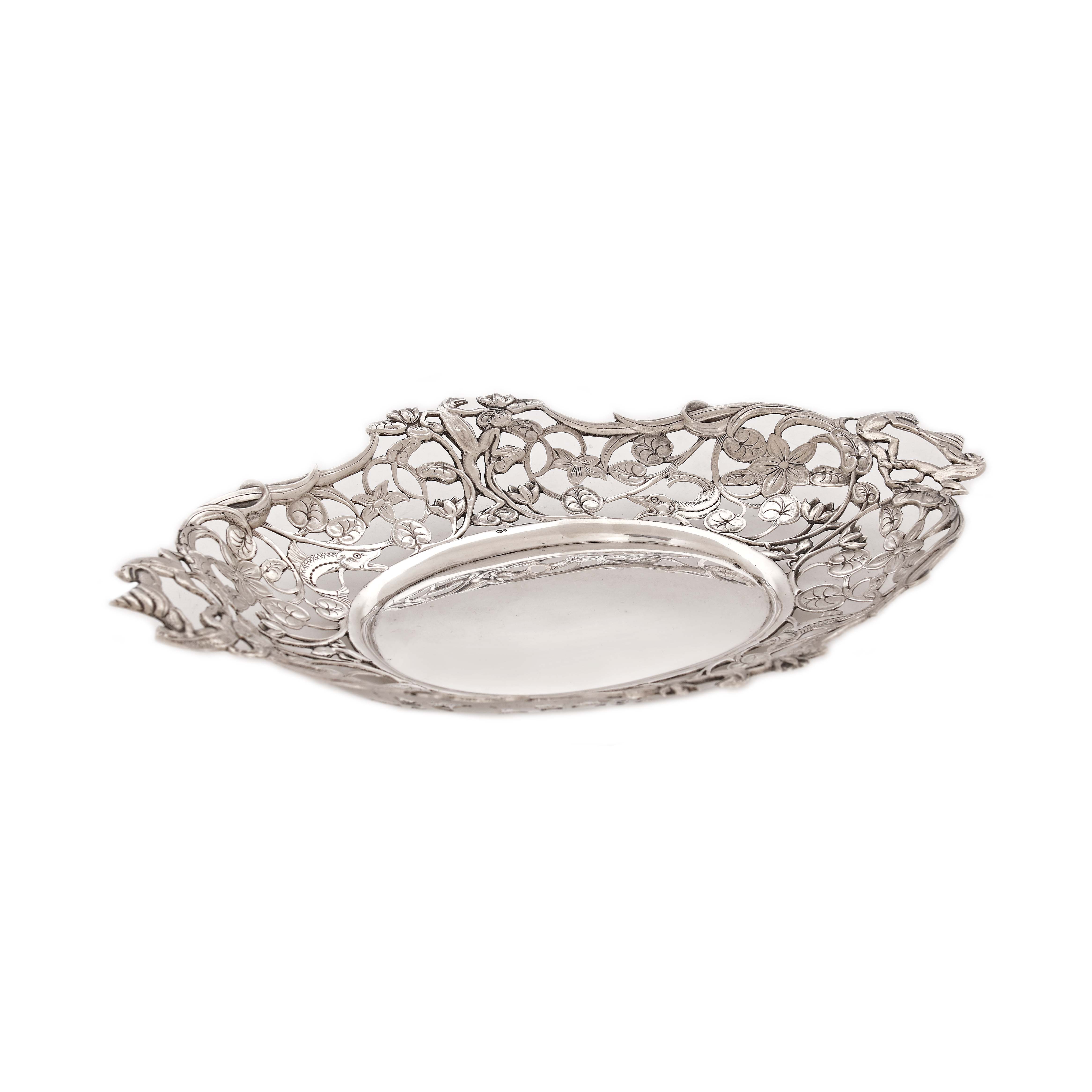 74. Vide-poche din argint, traforat și decorat cu simboluri ale vieții acvatice, pirma jumătate a sec. XX