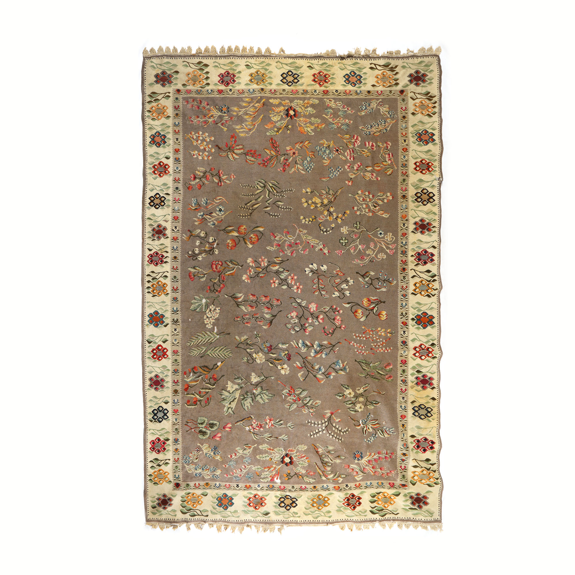 73. Covor oltenesc din lână, decorat cu motive florale stilizate (nalbă, mărgăritar, lalea), cca. 1930
