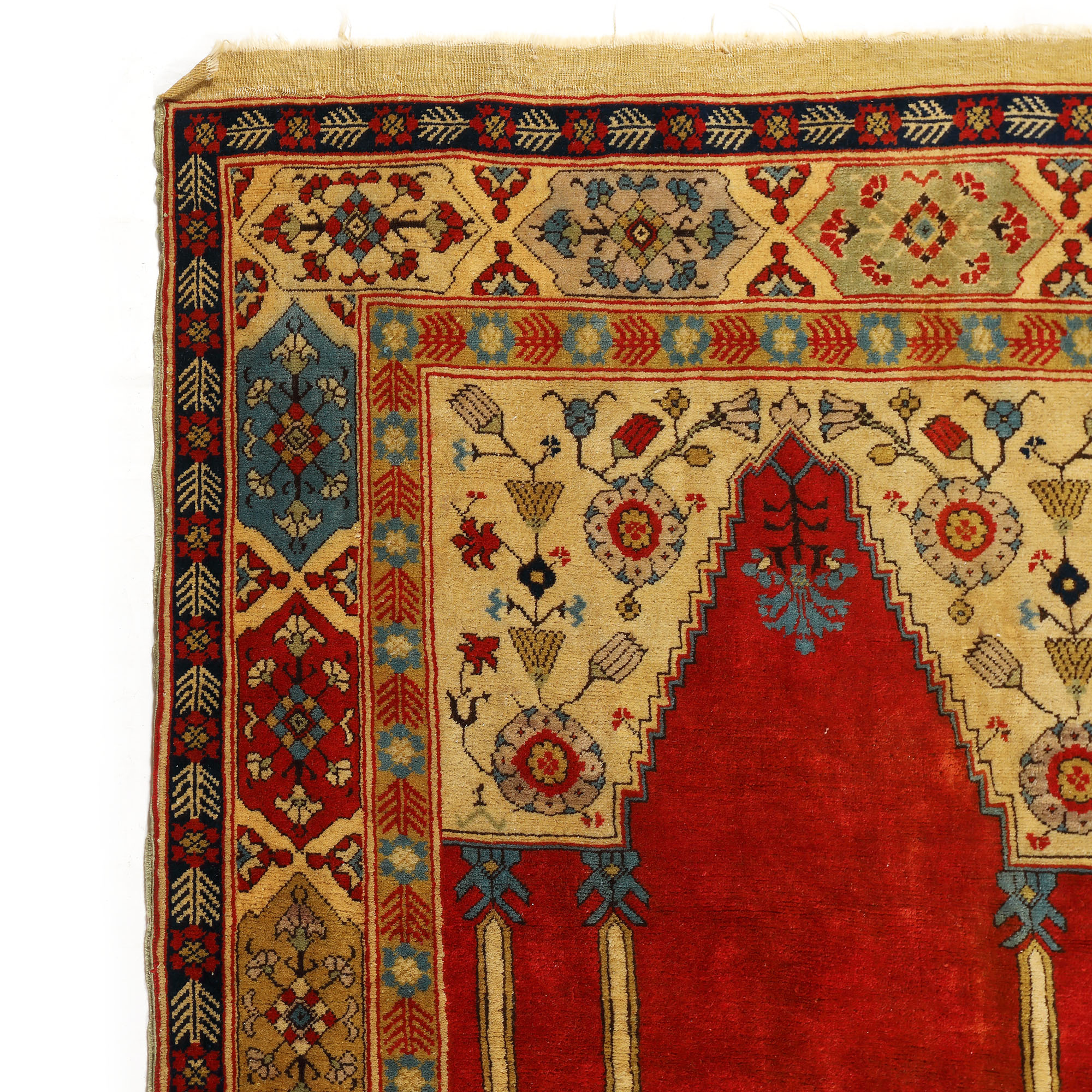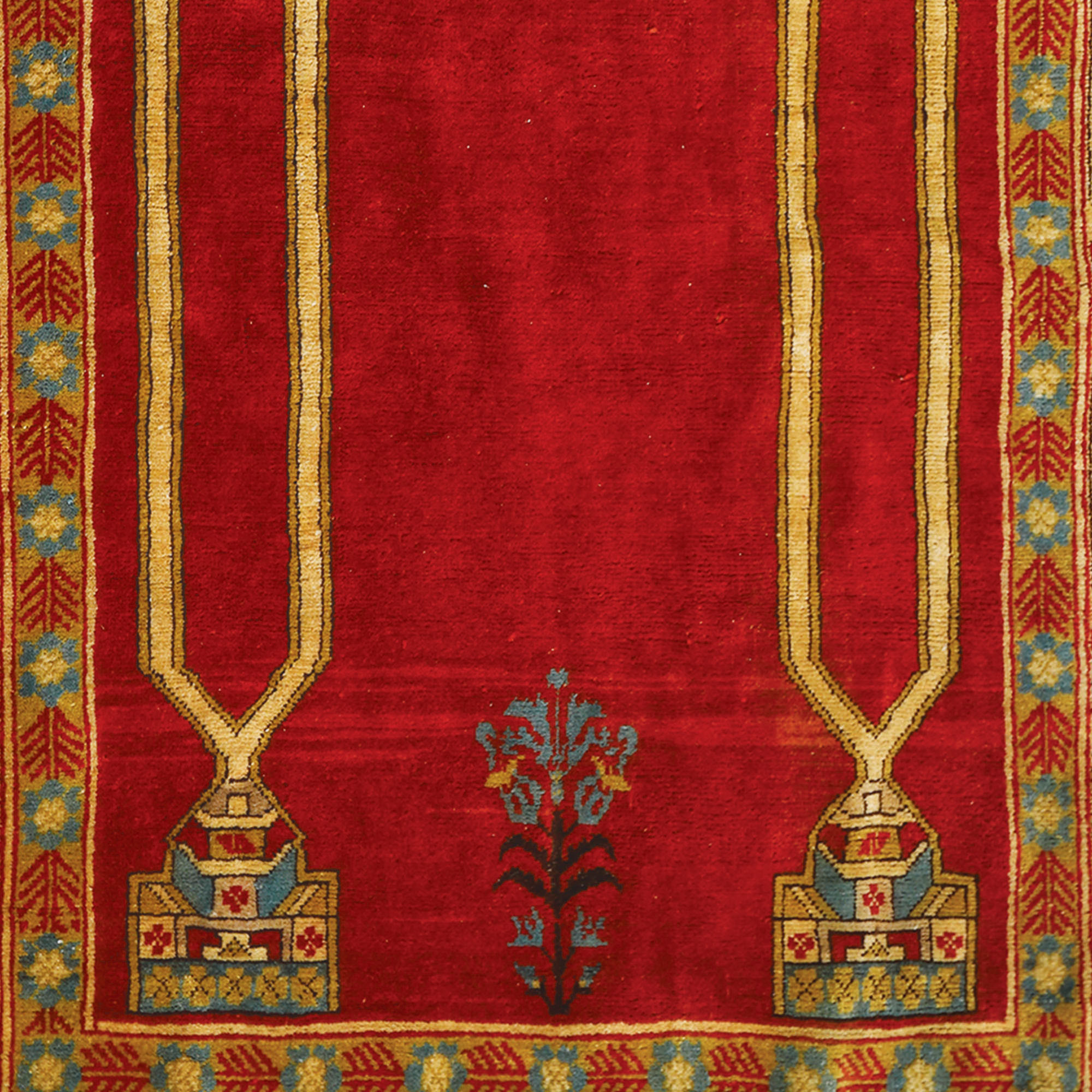 70. Covor otoman de Transilvania, de rugăciune, decorat cu coloane și mihrab, replică din prima jumătate a sec. XX, atribuită celebrului Teodor Tuduc