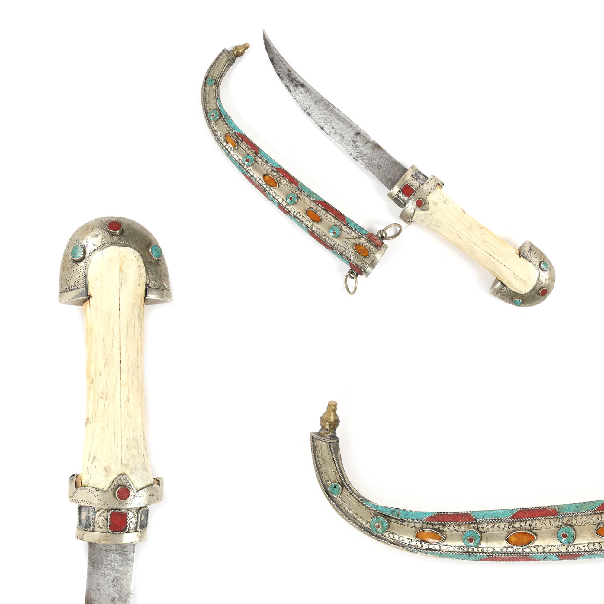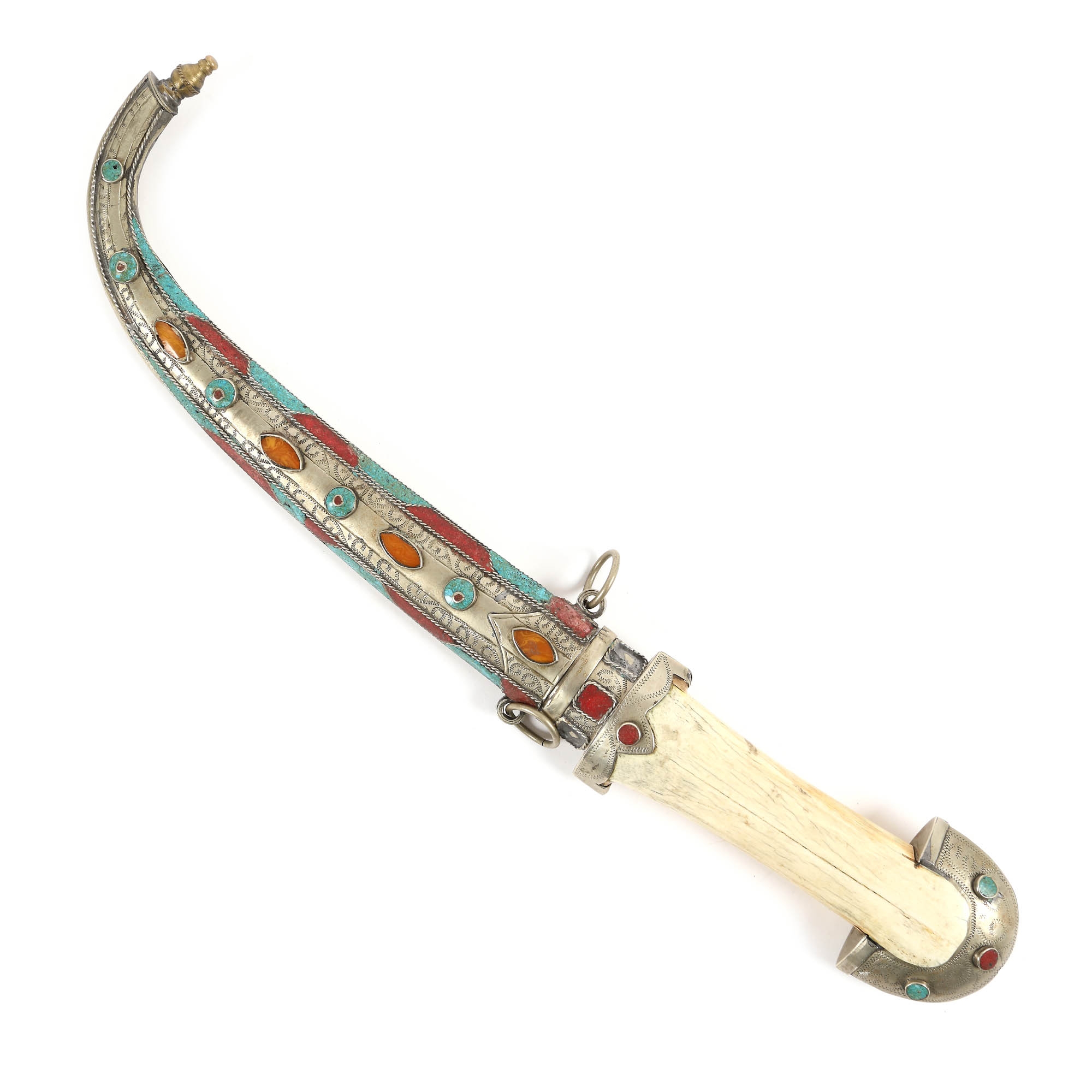 67. Pumnal Koummya, cu teacă decorată cu pietre semiprețioase, Maroc, începutul sec. XX