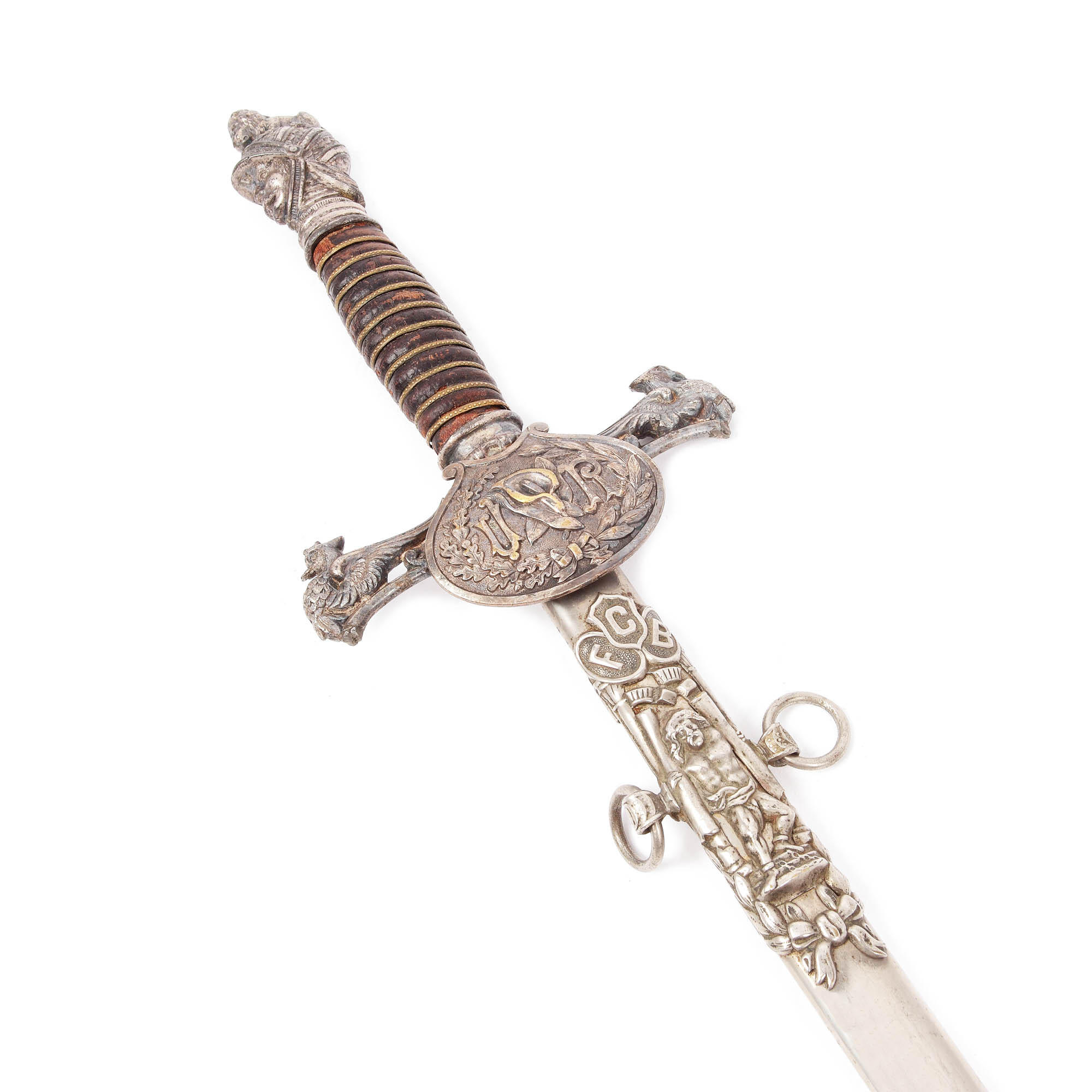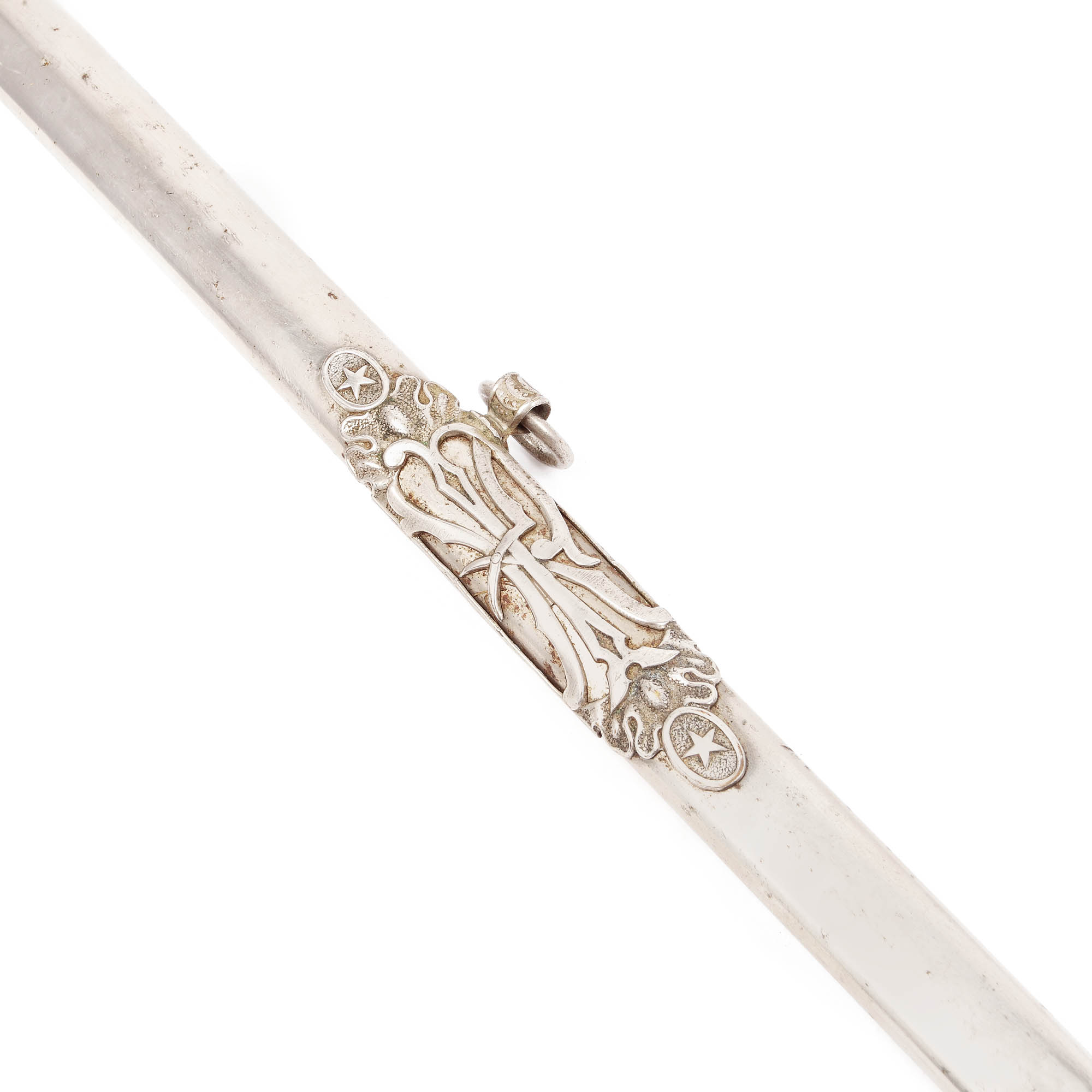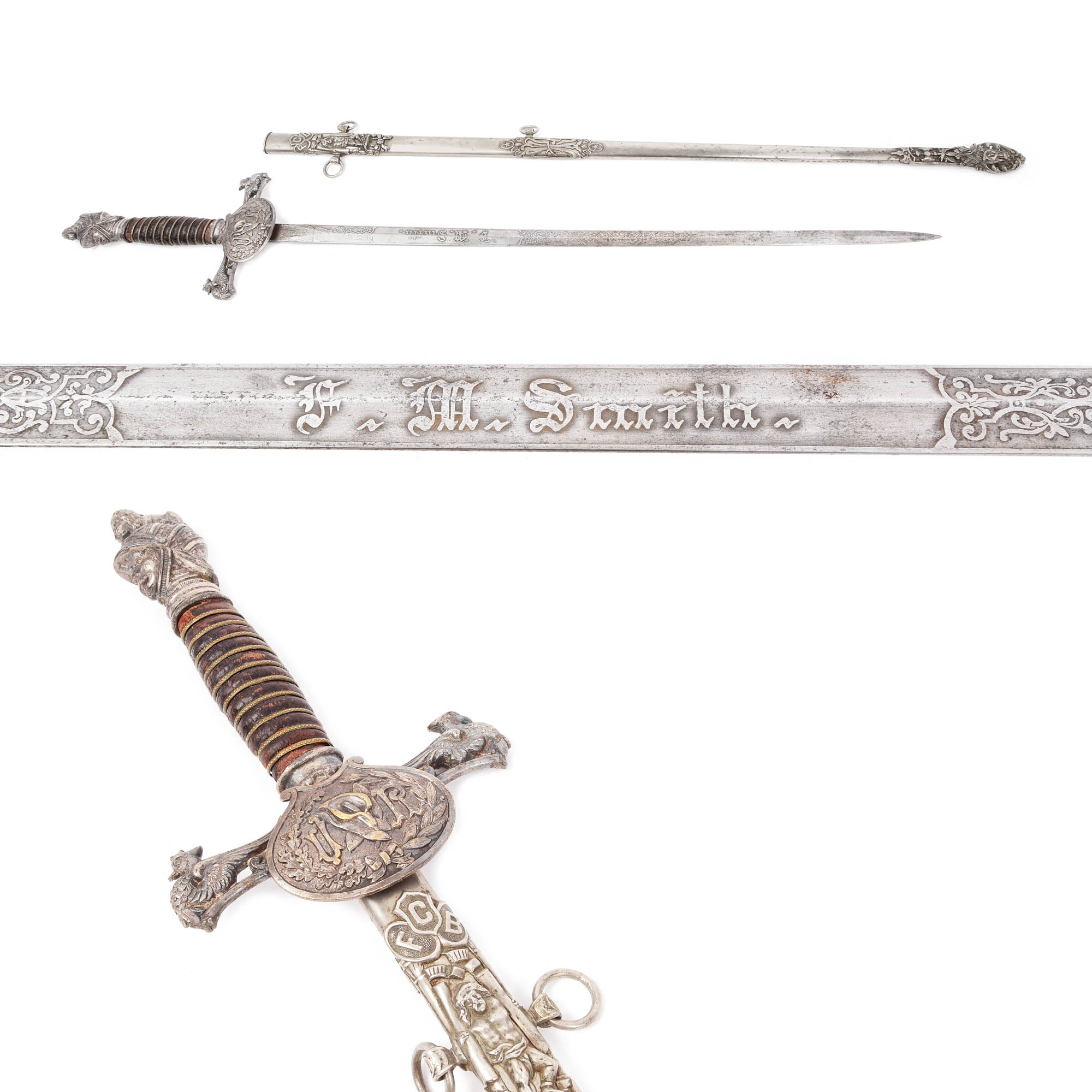 59. Sabie masonică pentru ceremonie a ordinului ”Knights of Pythias”, cu teacă, oferită lui F.M. Smith, începutul sec. XX