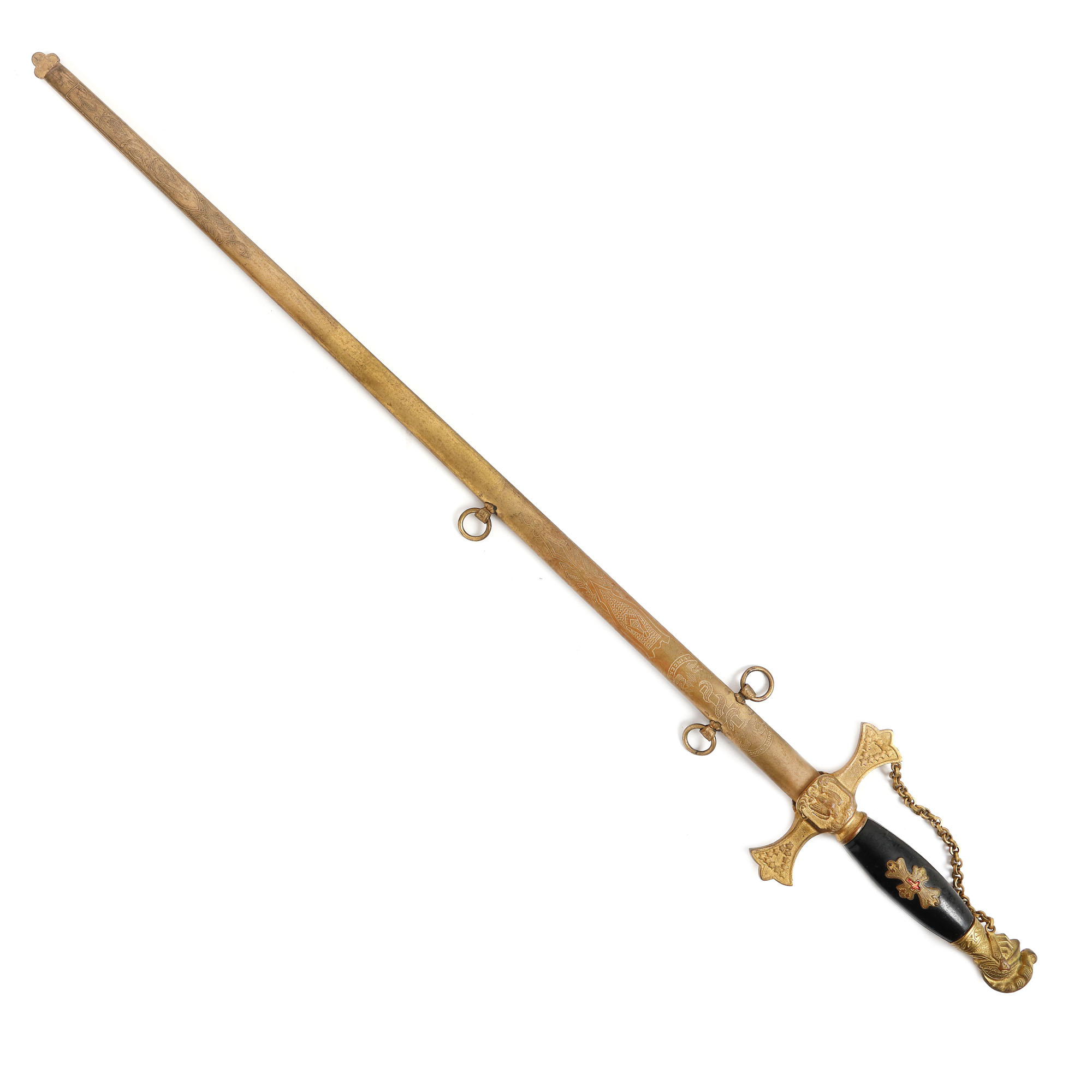 51. Sabie masonică pentru ceremonie a ordinului "Knights Templar", cu teacă, începutul sec. XX