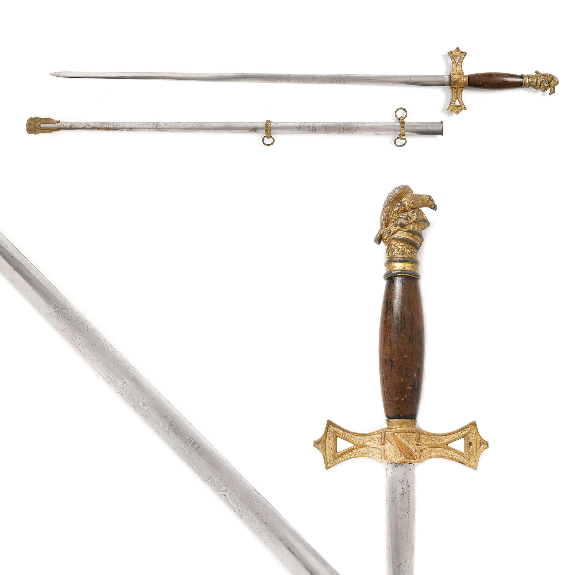 56. Sabie masonică pentru ceremonie a ordinului "Knights Templar", cu teacă, începutul sec. XX