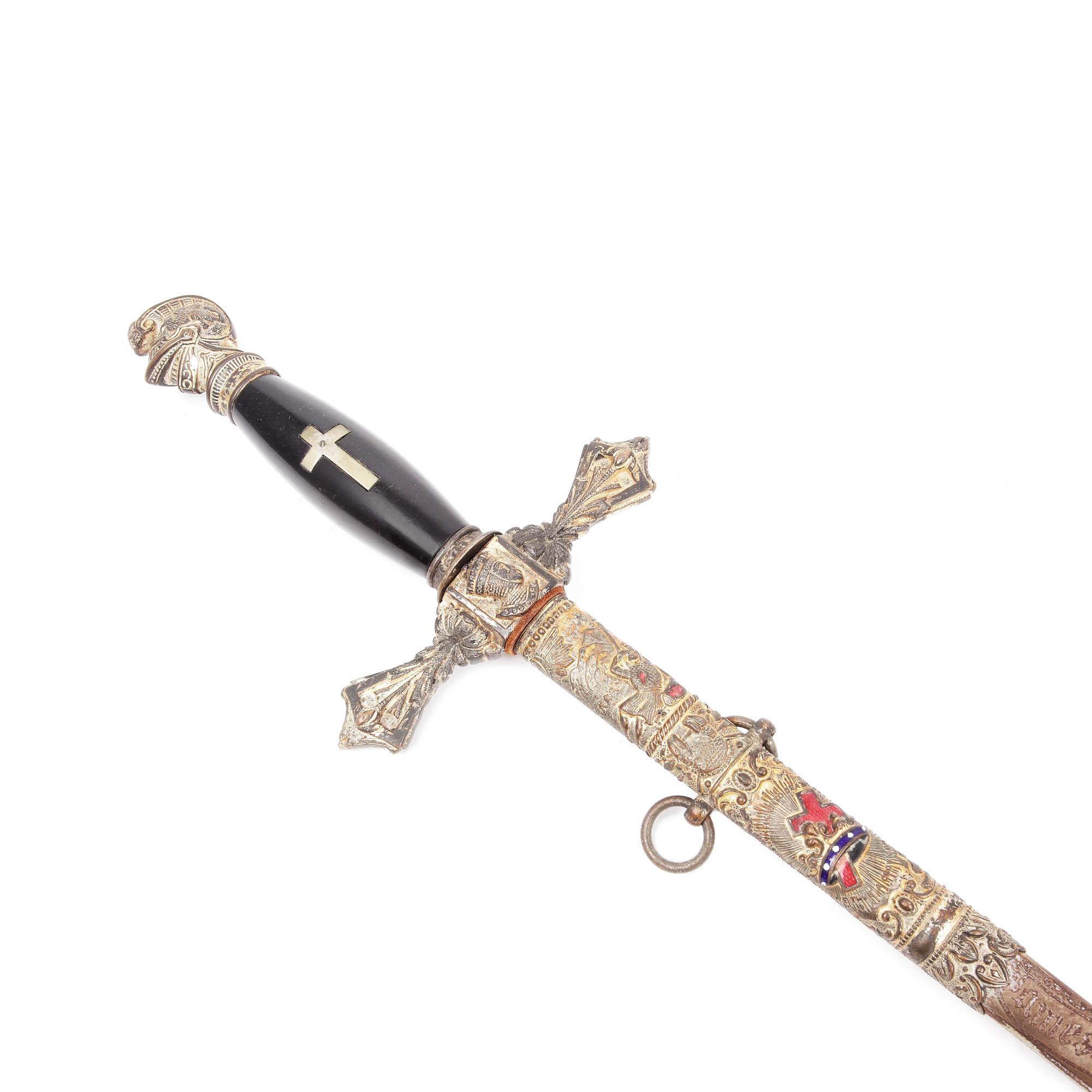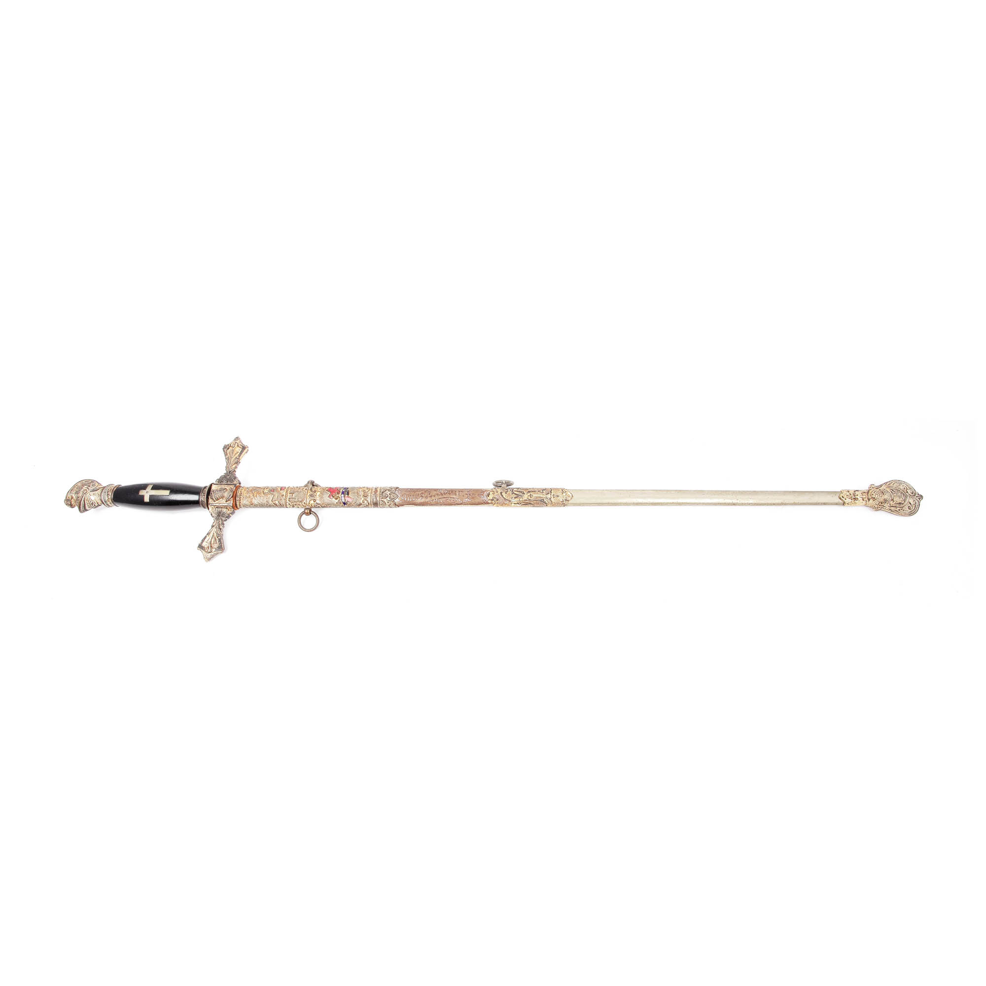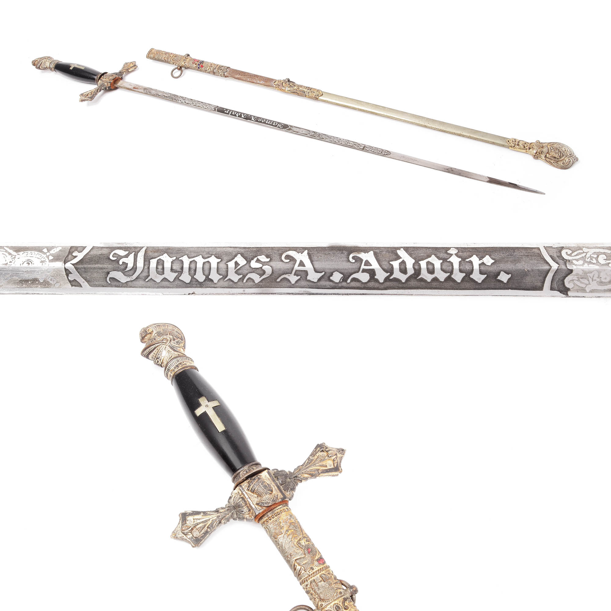 53. Sabie masonică pentru ceremonie a ordinului "Knights Templar", cu teacă, oferită lui James A. Adair, începutul sec. XX