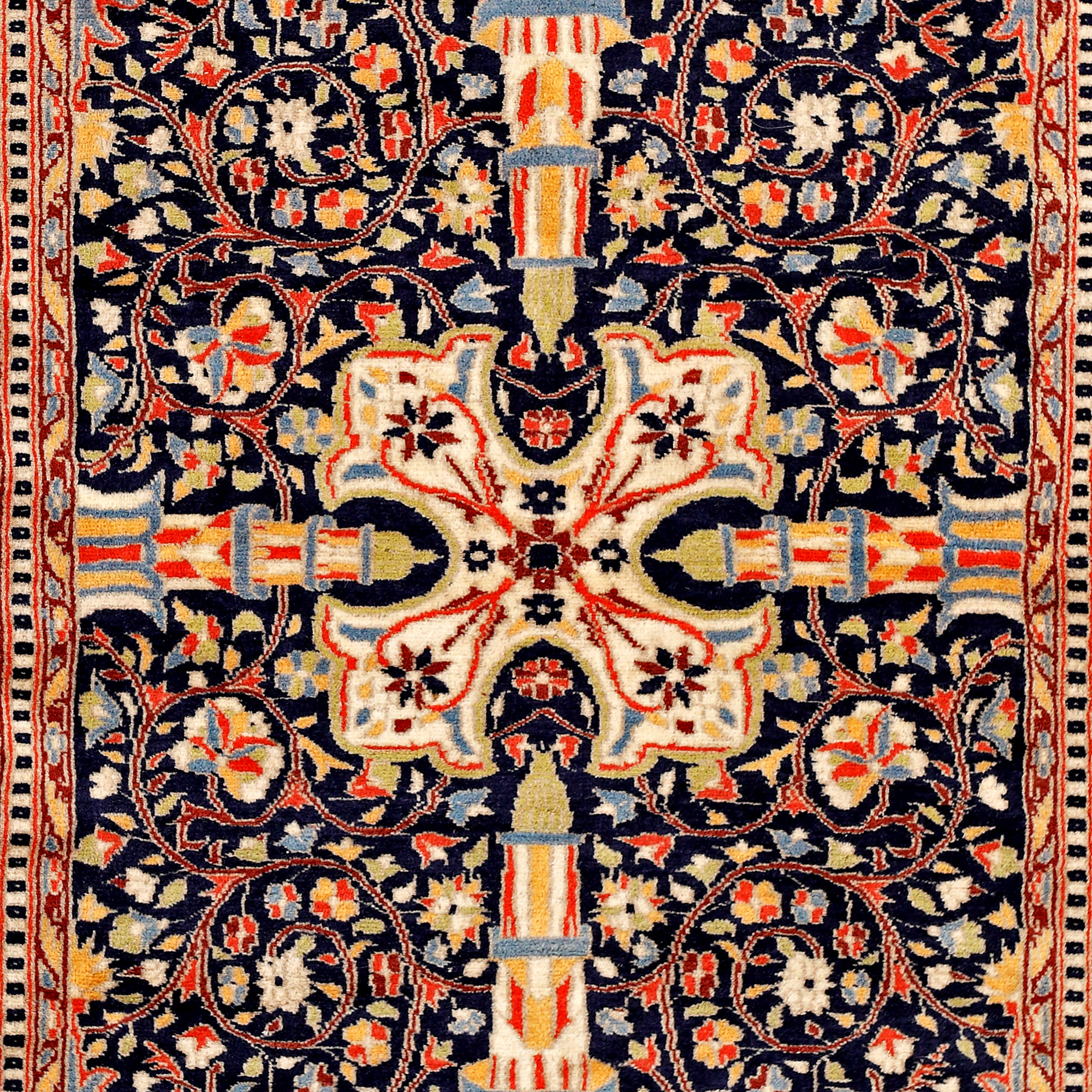 74. Covor Kerman din lână, cu decor specific tradițional, Iran [a doua jumătate a sec. XX]