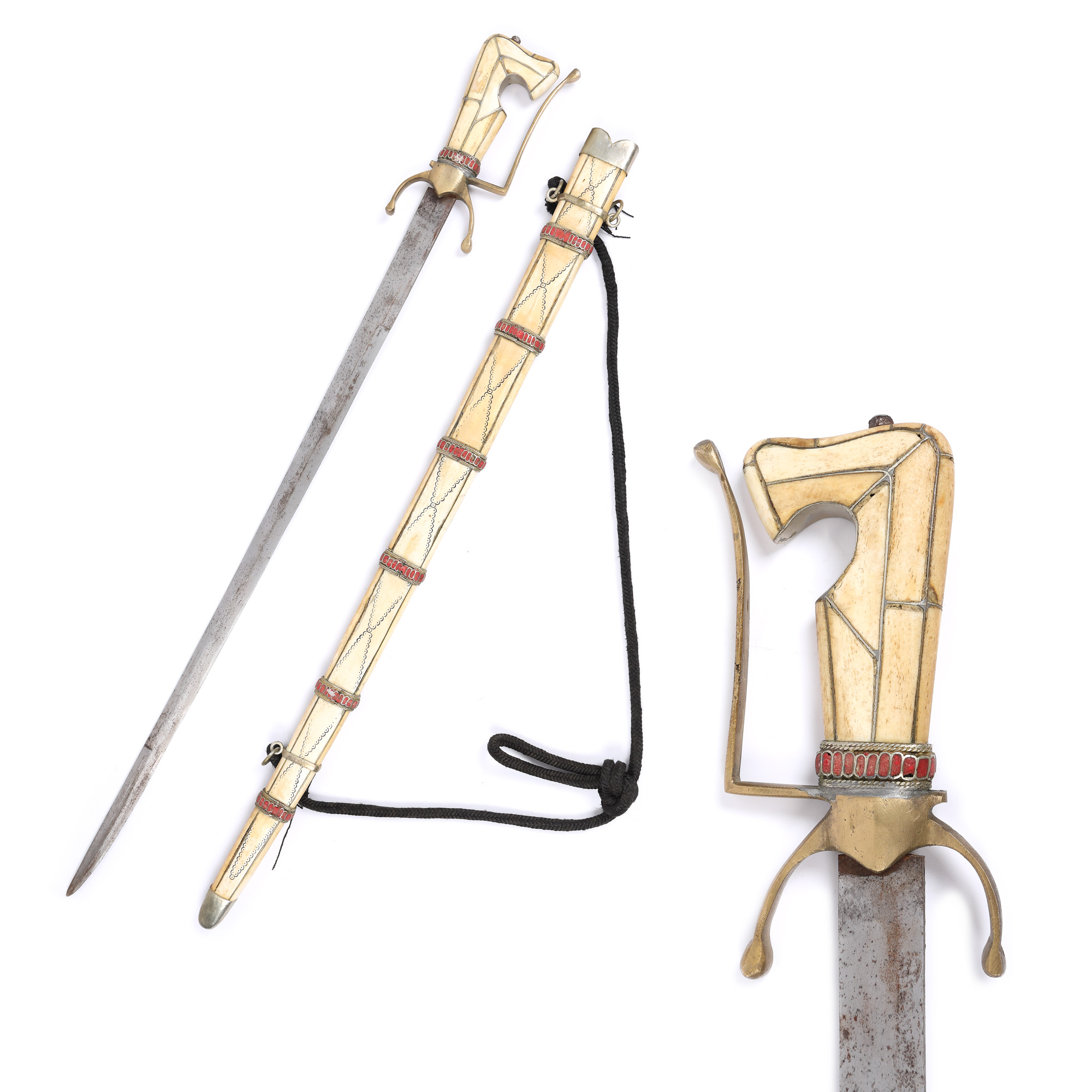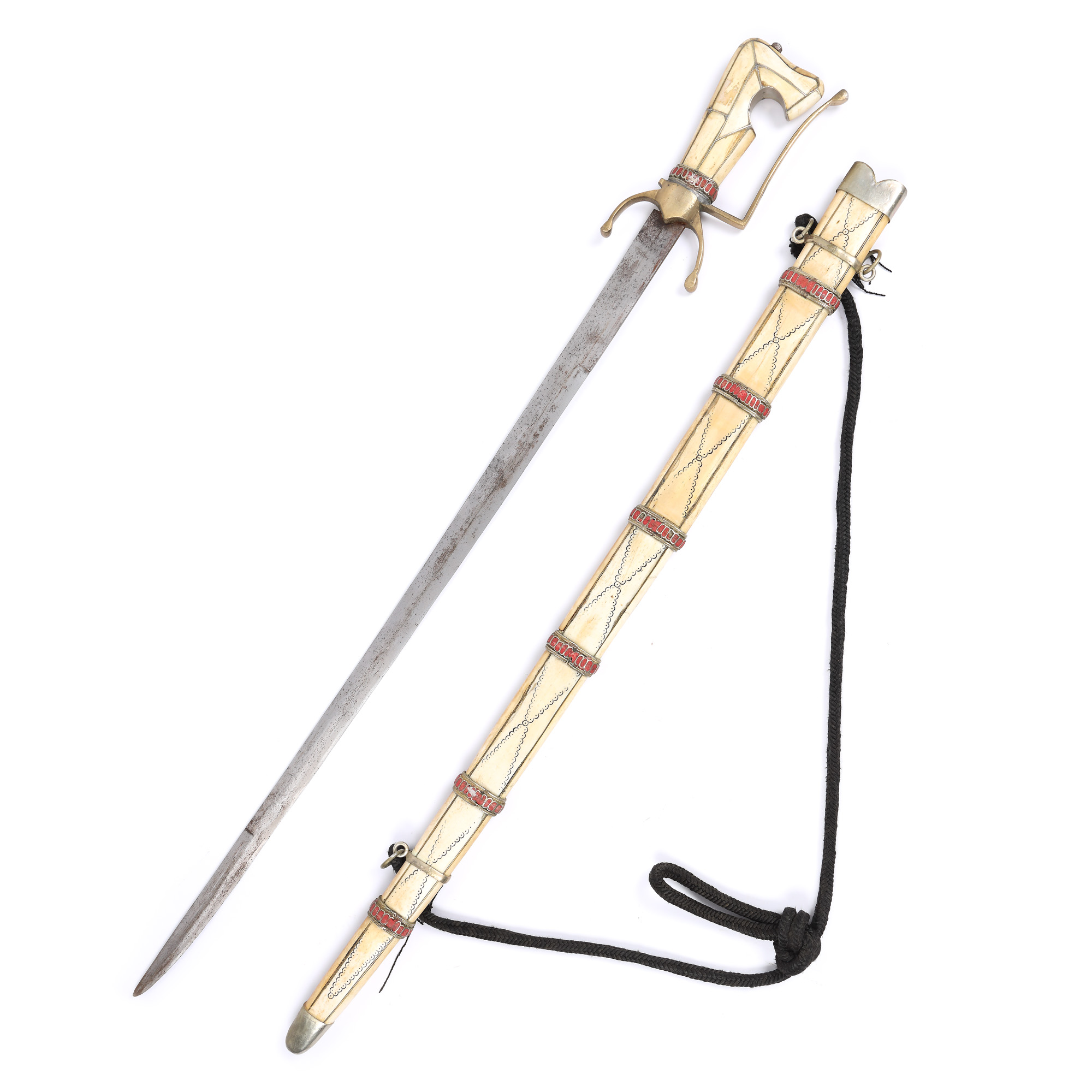 79. Sabie Nimcha, cu teacă și mâner decorate cu os și coral, Maroc, jumătatea sec. XIX