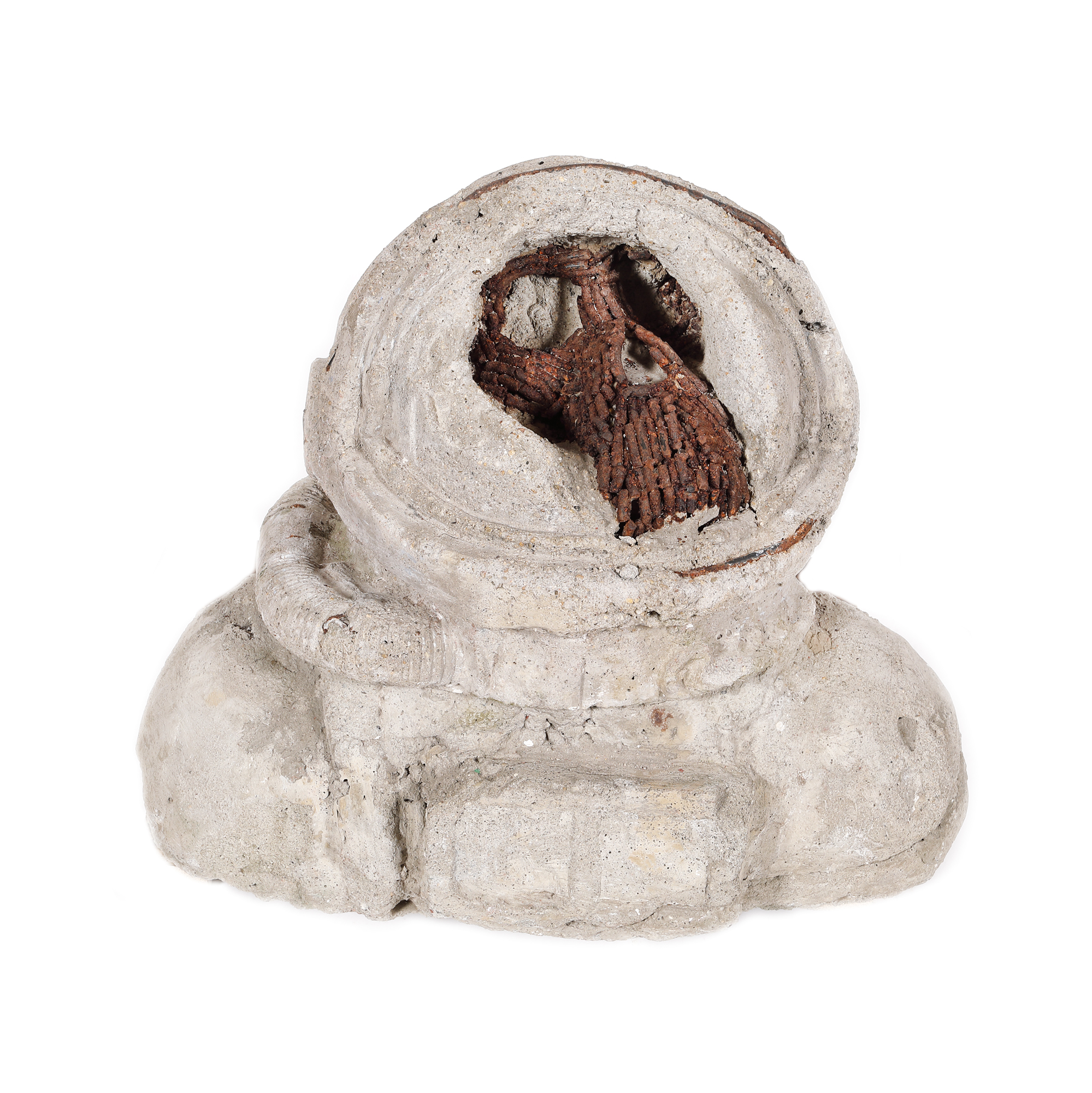 Lucrarea “Adapting to us” se concentrează asupra relației problematice dintre om și natură, ființa umană fiind mai puternică ca oricând înainte. Însă omenirea nu știe să se folosească de puterea pe care o deține, în consecință ducând la extincție specii de animale și ecosisteme, fără să caute altceva decât propriul confort și divertisment. Conflictul este exprimat prin această sculptură cu aparența unei structuri din beton care închide în ea ca într-un strat geologic al antropocentrului, un craniu de animal fosilizat, prins ca într-o capcană a procesului de extindere. (Adrian Piorescu)