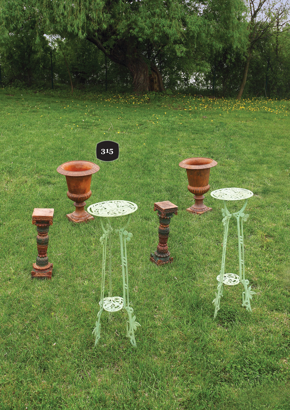 315. Pereche de amfore monumentale din fontă, decorate în manieră romană