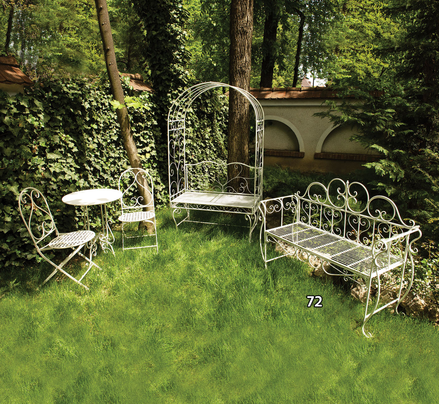 72. Băncuță pentru grădină, pentru trei persoane, decorată cu inimi stilizate