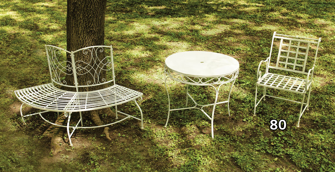 80. Fotoliu pentru grădină, cu spătar și brațe spiralate