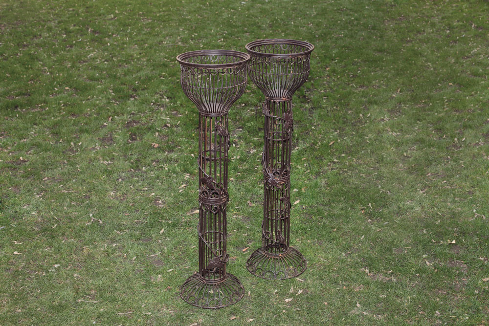 Suport pentru vască, din fier forjat, având baza semi-rotundă, piciorul cilindric elansat, iar suportul format în întregime din baghete verticale. Piciorul este decorat cu aplicații de vrejuri de viță-de-vie.