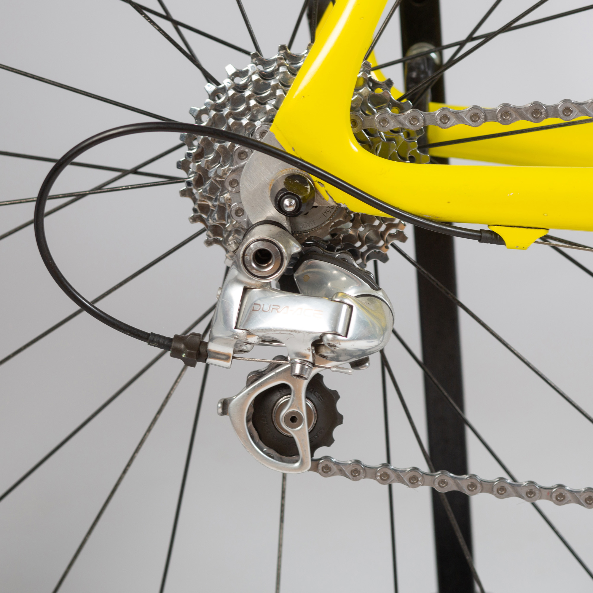 oțel; butuci Campagnolo Gran Sport din oţel cu flanşe aluminiu și jante din aluminiu Nisi; schimbător spate Campagnolo Gran Sport din bronz; șa clasică Ideale Diagonale gravată pe partea superioară; tija și ghidonul 3T Grand Prix sunt din aluminiu; lanț Everest „Oro” cu zale ușurate.