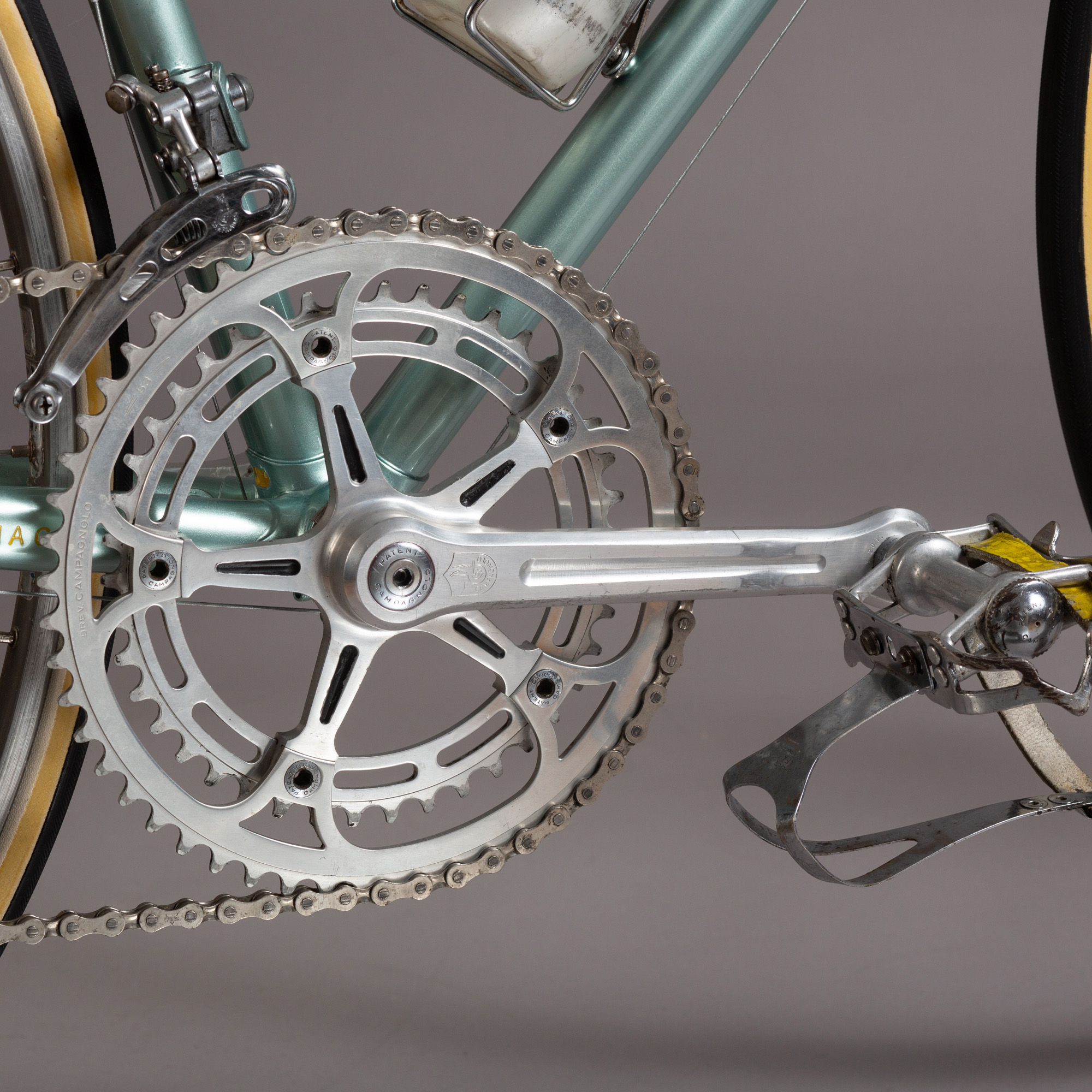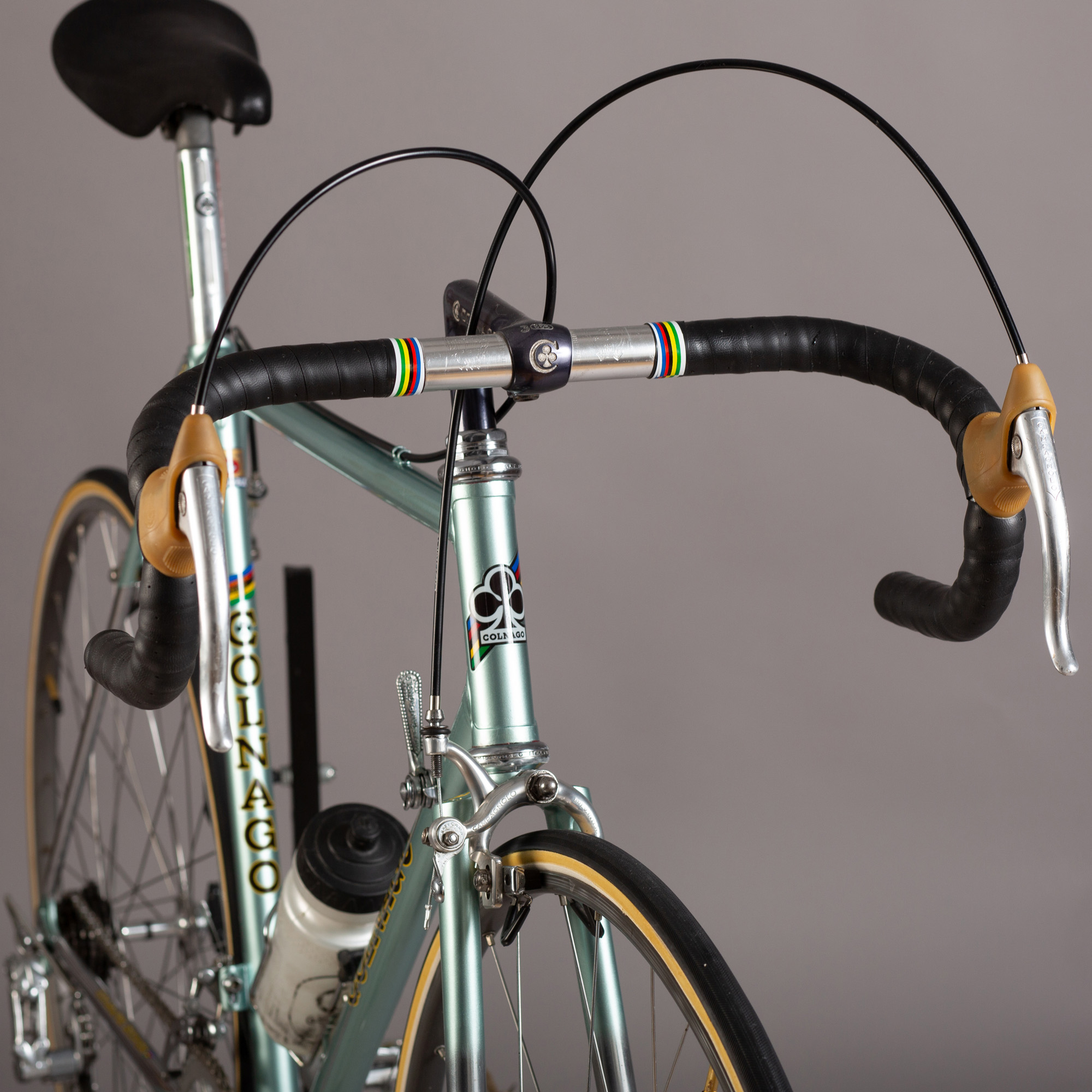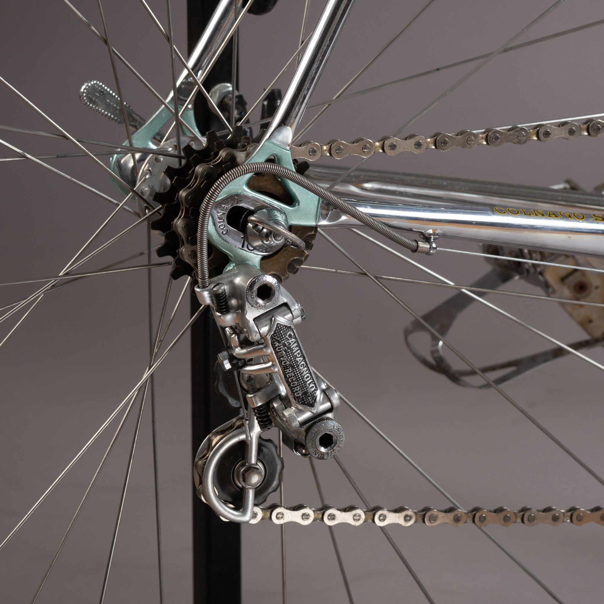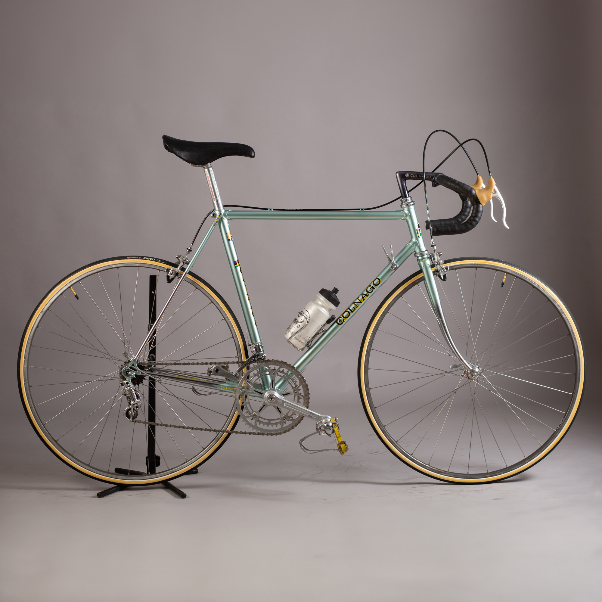 oțel Columbus SL; Campagnolo Record, cu unele componente Nuovo Record și Super Record; tijă şa şi pipă pantografiată Colnago; roți formate din jante pentru baieu FIR Quasar cu butuci Campagnolo Record; șa San Marco Concor, restaurată cu piele neagră. Pedale Campagnolo Record cu ratrape si curele din piele